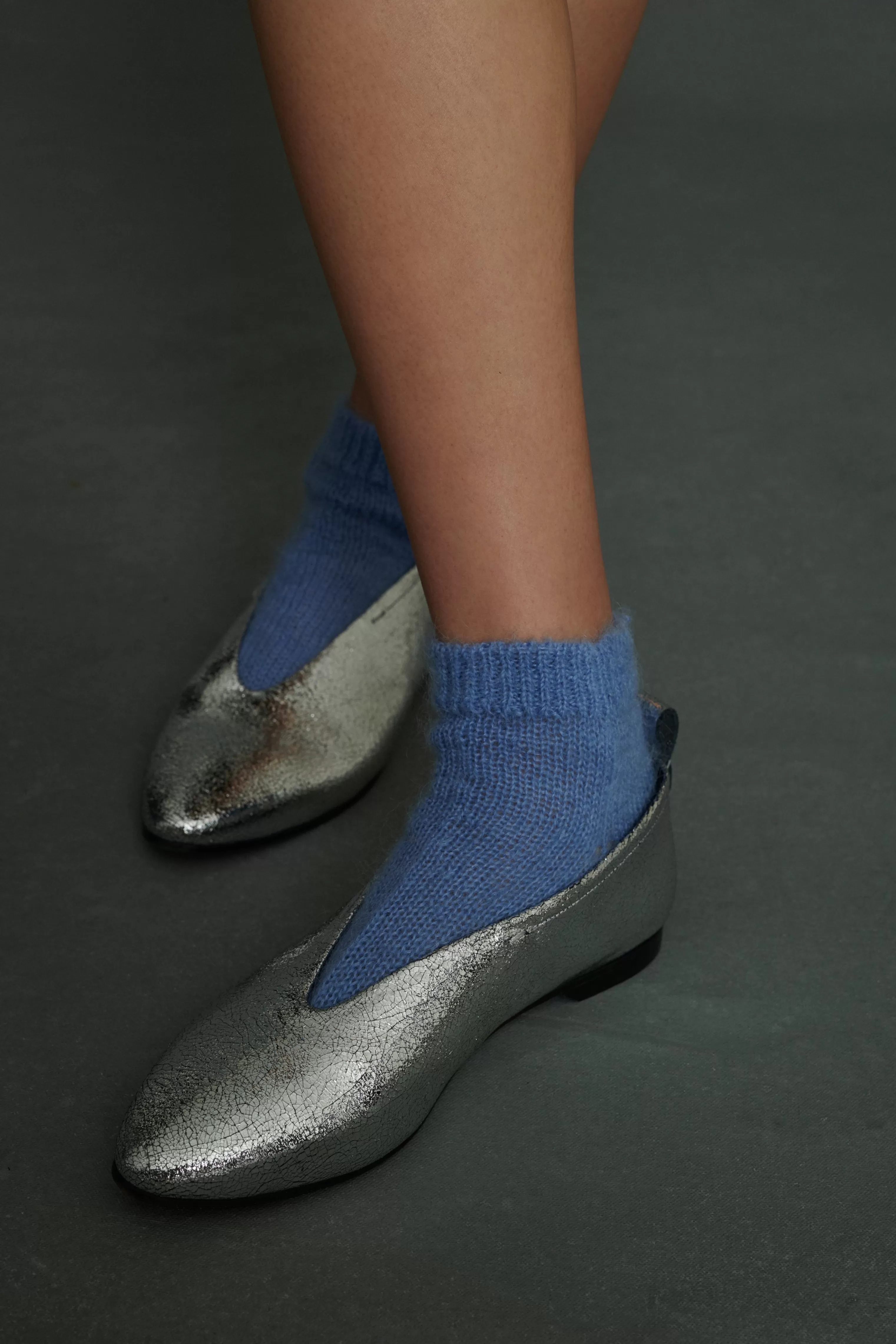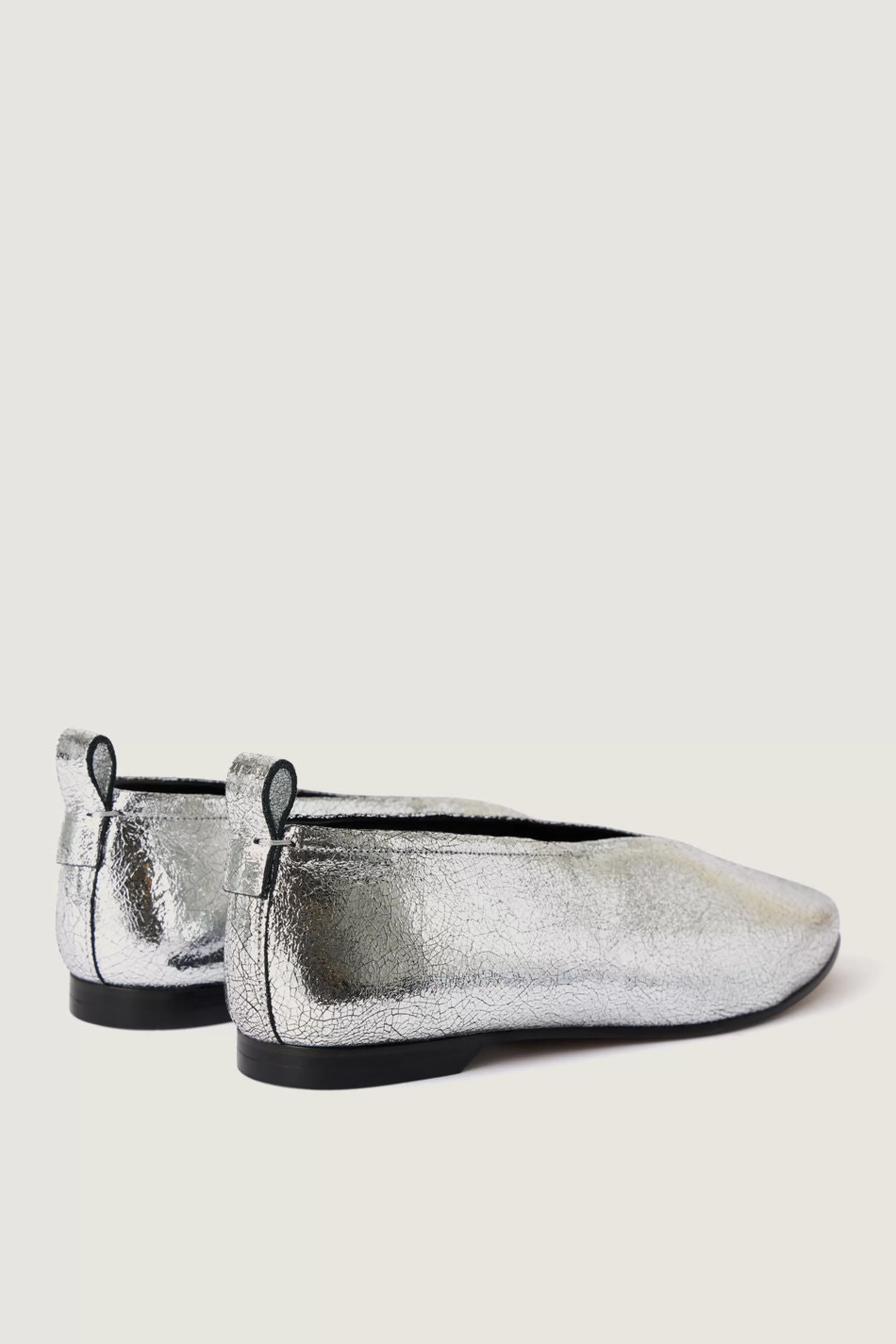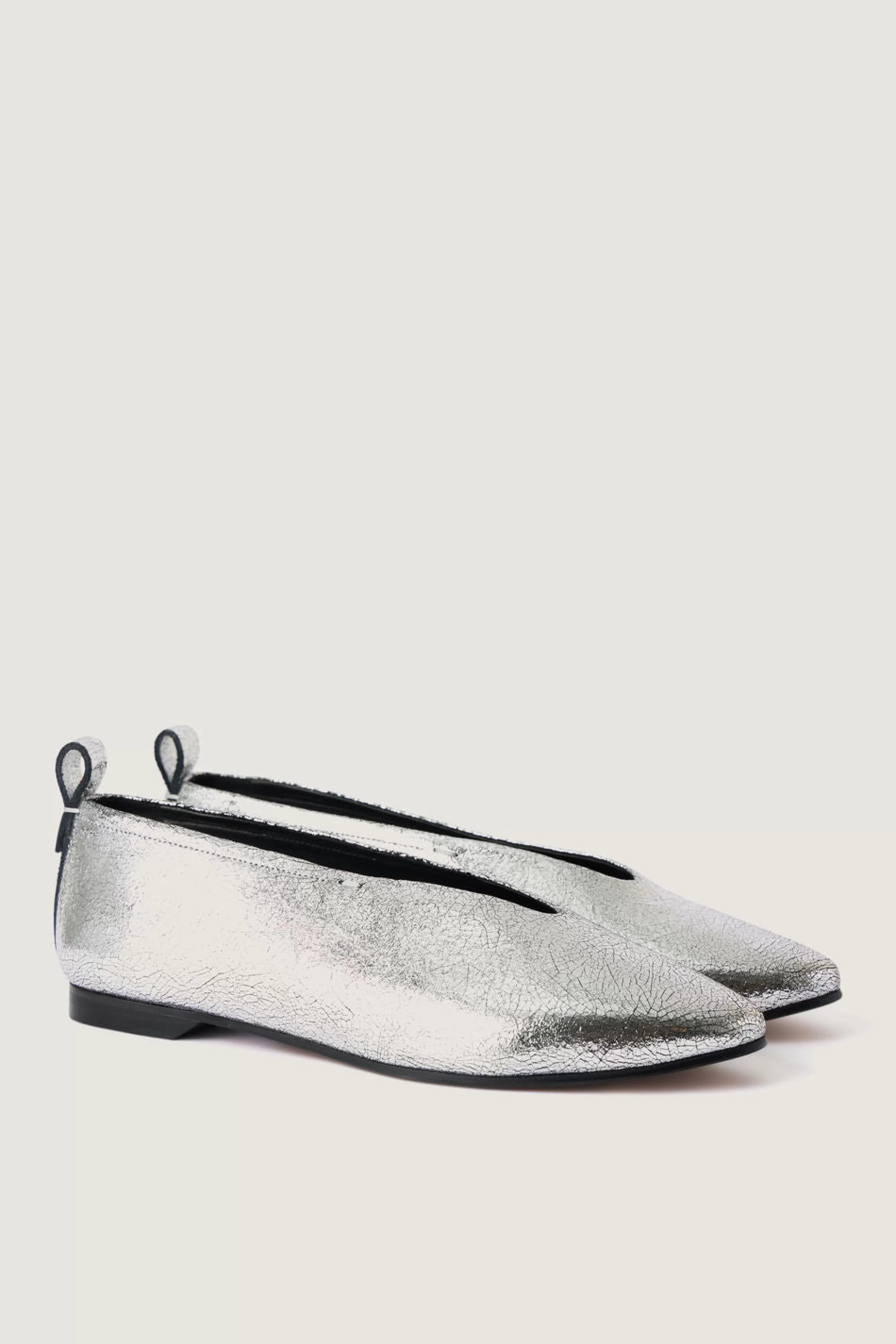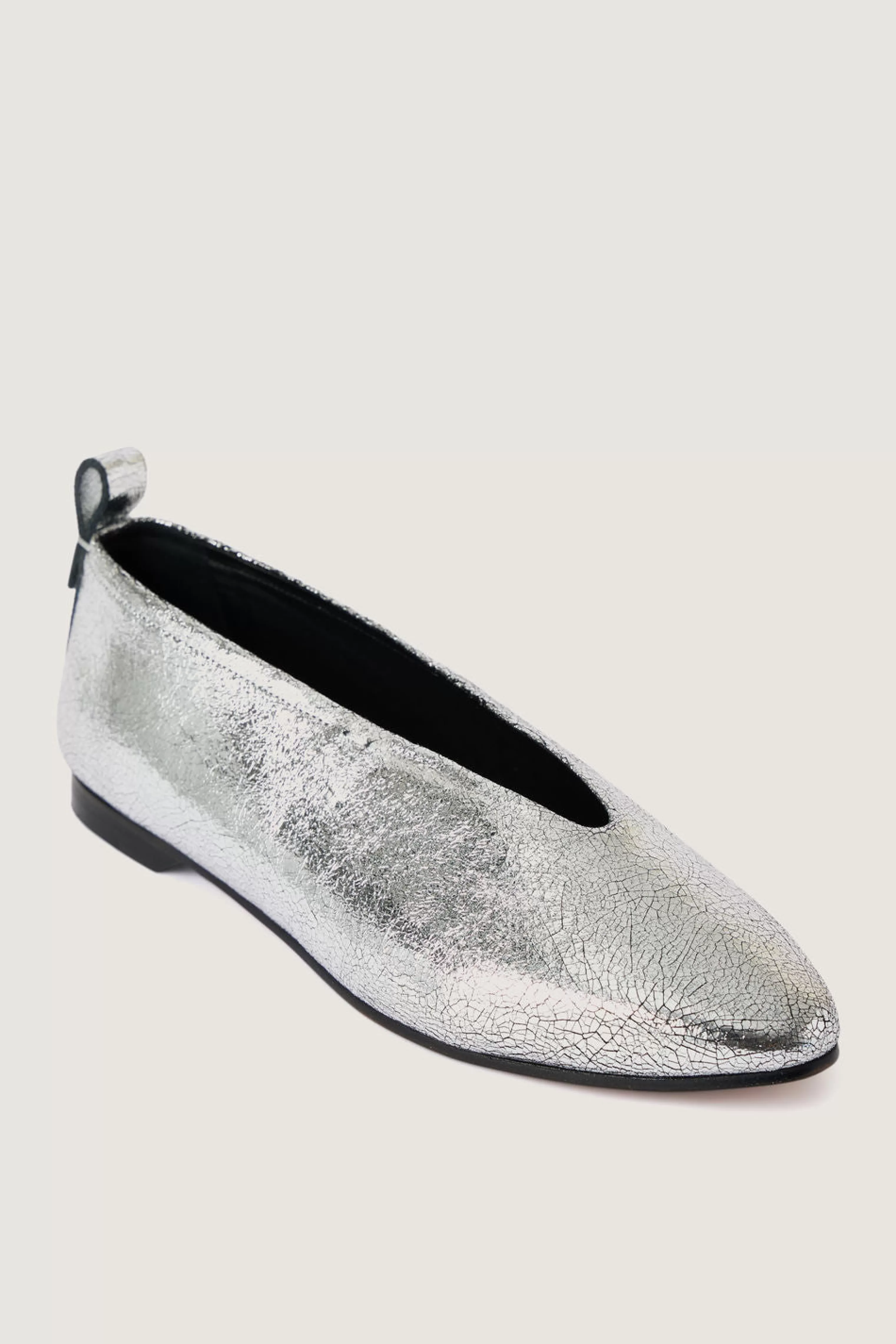 Ballerine à bout pointu en cuir métallisé effet craquelé