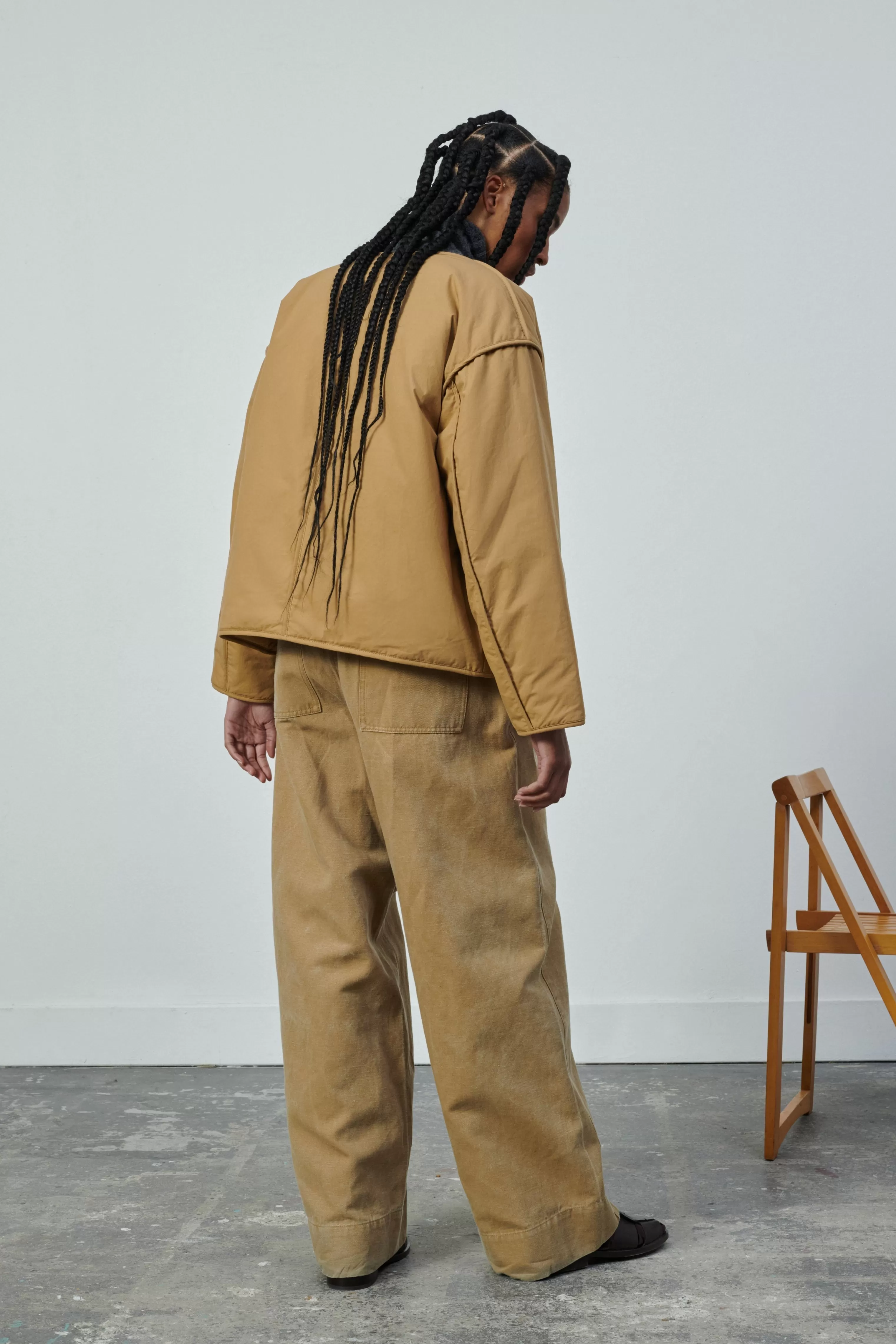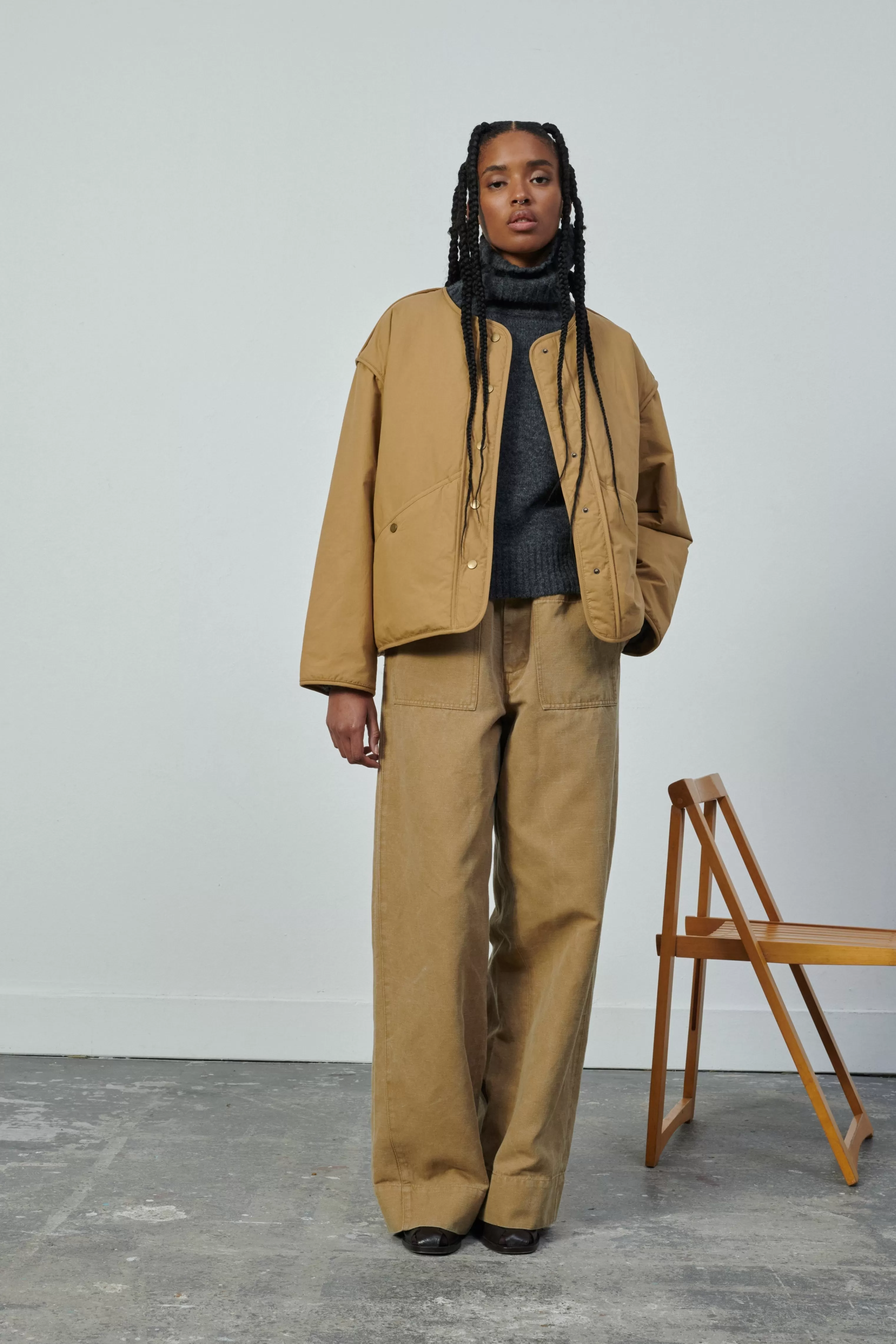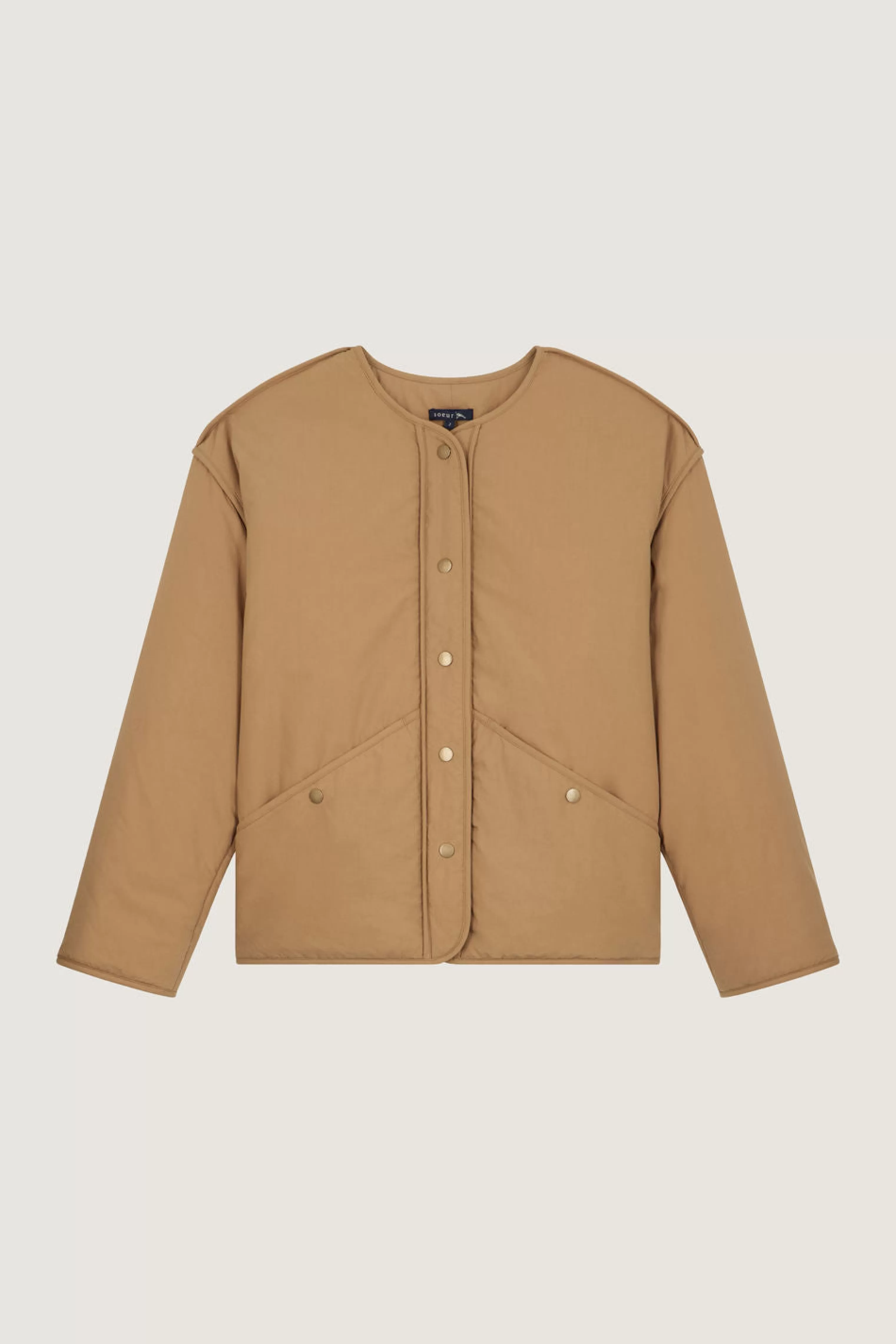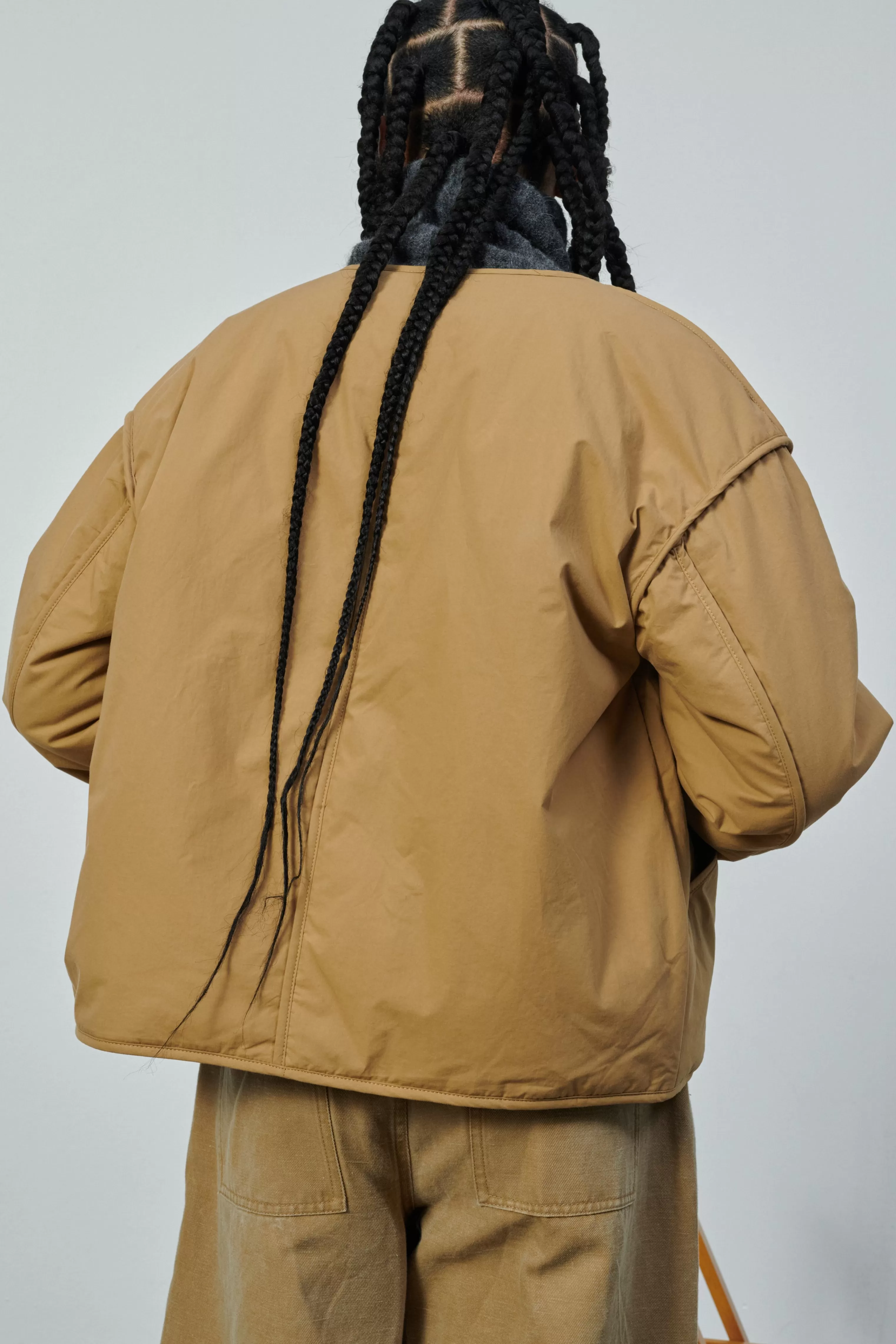 Doudoune en coton emerisé – Coupe ample et ronde, rembourrage léger– Fermeture à boutons pressions– Encolure ronde– Poches passepoilées