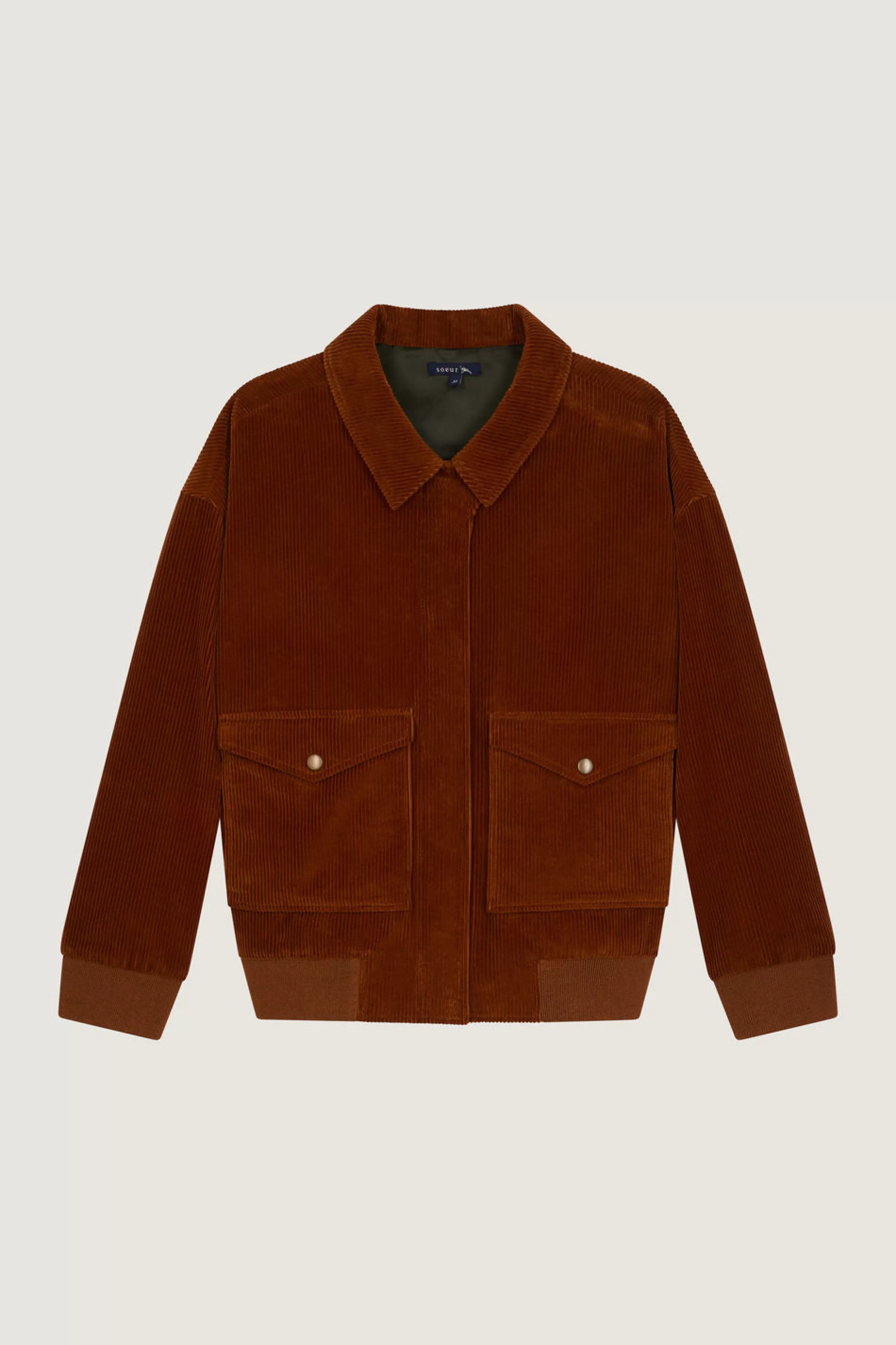 Blouson en velours côtelé – Coupe ample, bord côte à la taille et aux poignets– Fermeture zippée sous patte cachée– Fermeture avec boutons pression au col– Poches plaquées à rabat avec boutons pression– Empiècement au dos