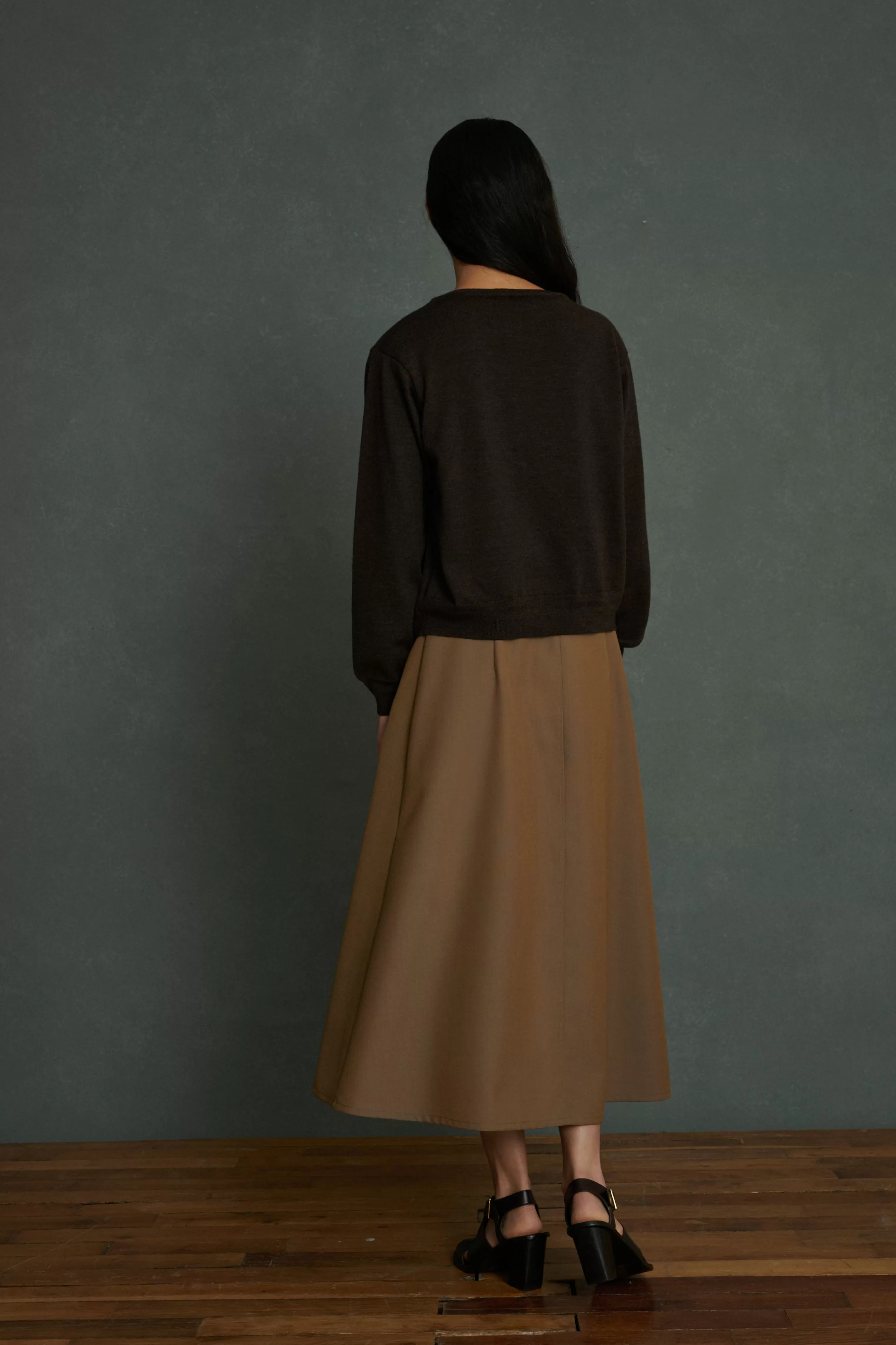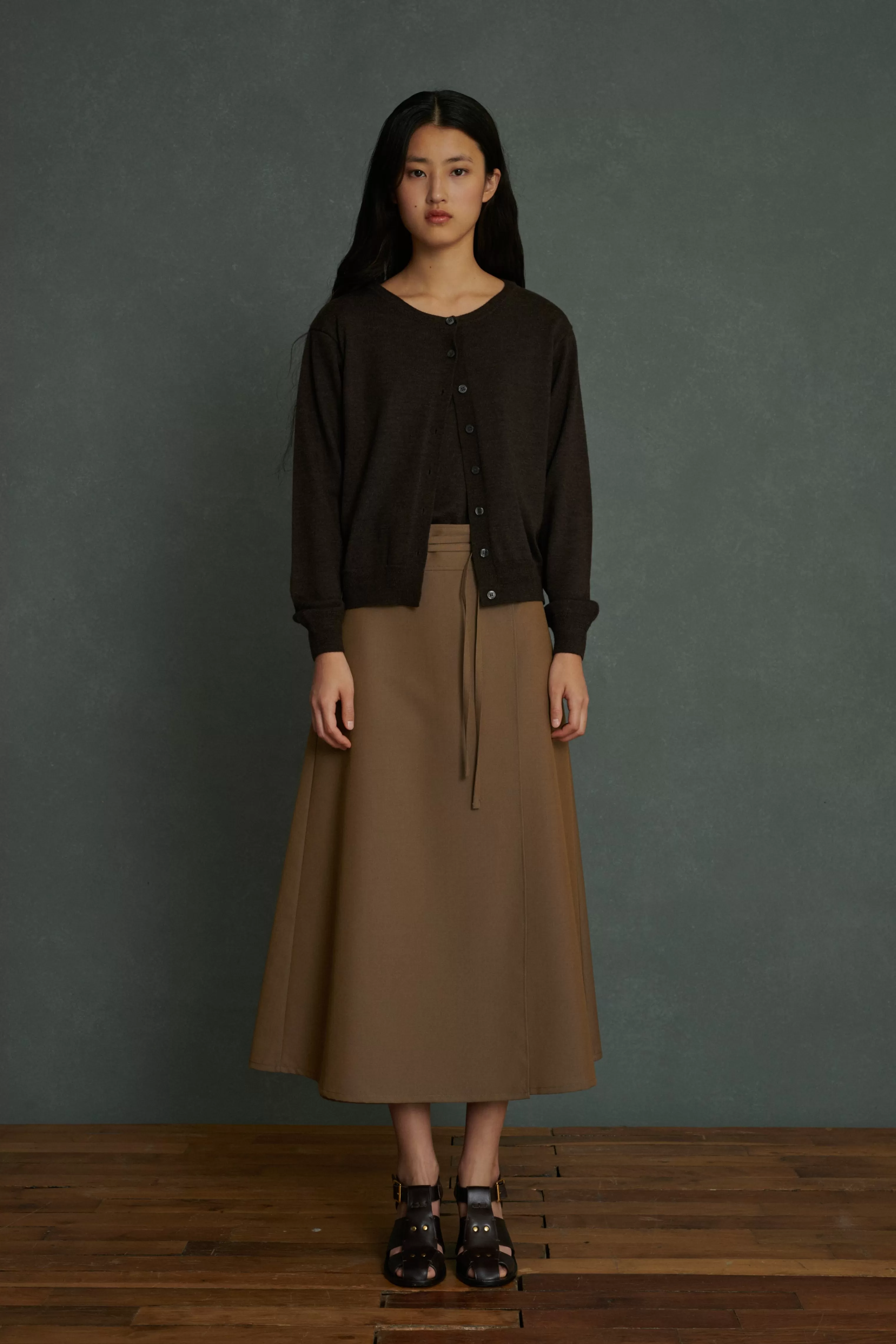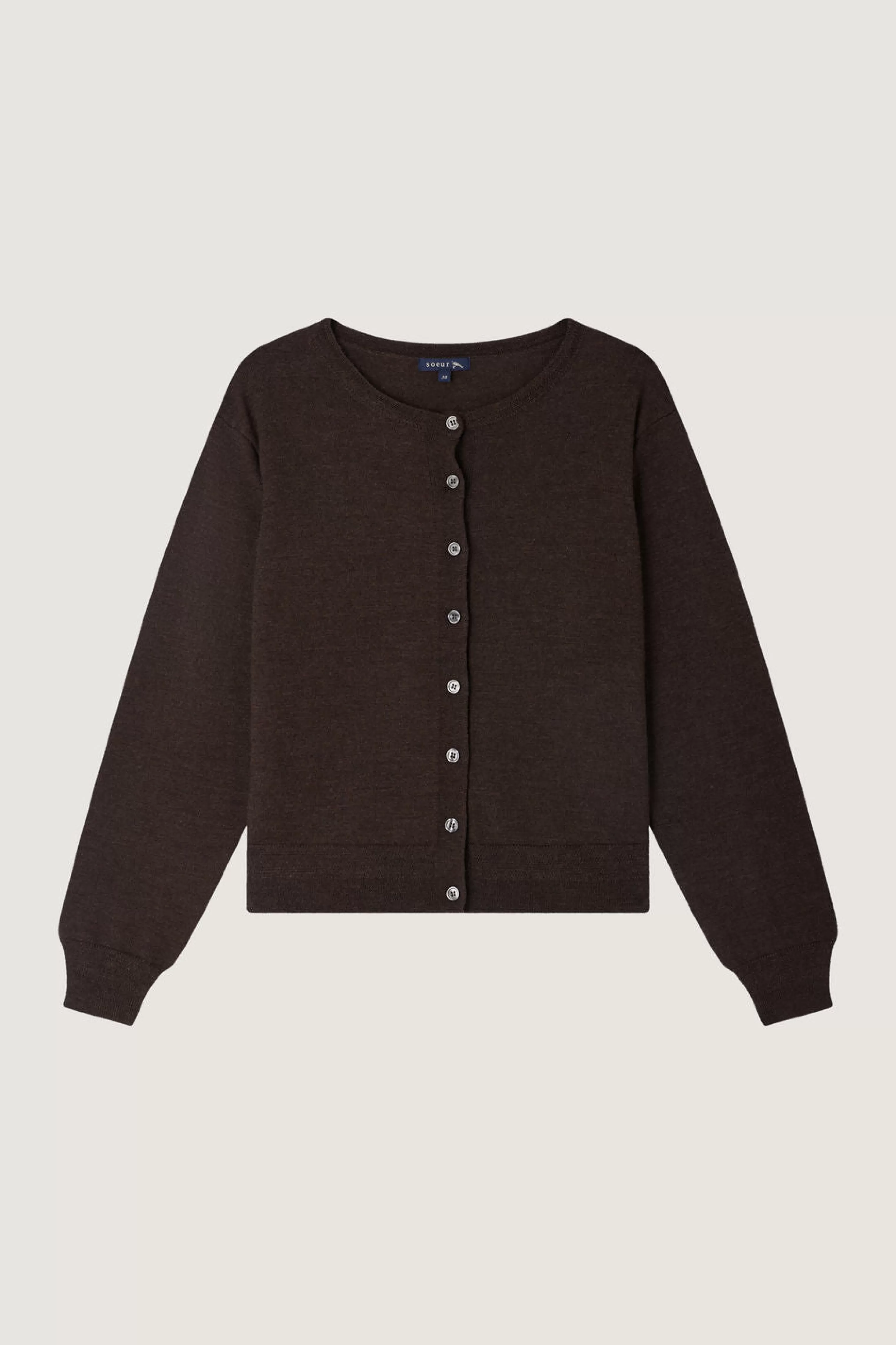 Cardigan boutonné à col rond en laine mérinos marron