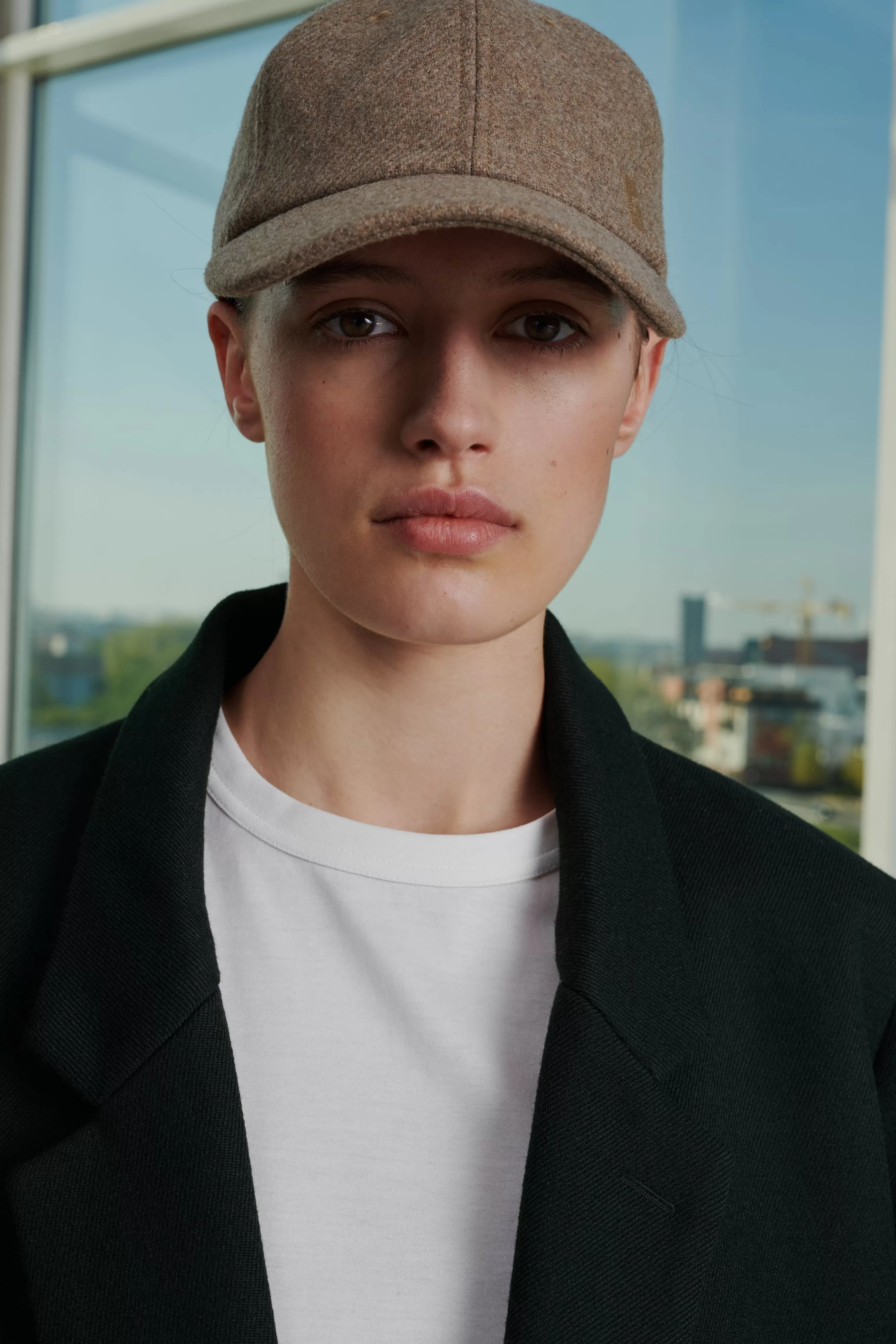 Casquette en tweed de laine – Logo brodé– Ajustable grâce à une boucle métallique– Détails de surpiqûres