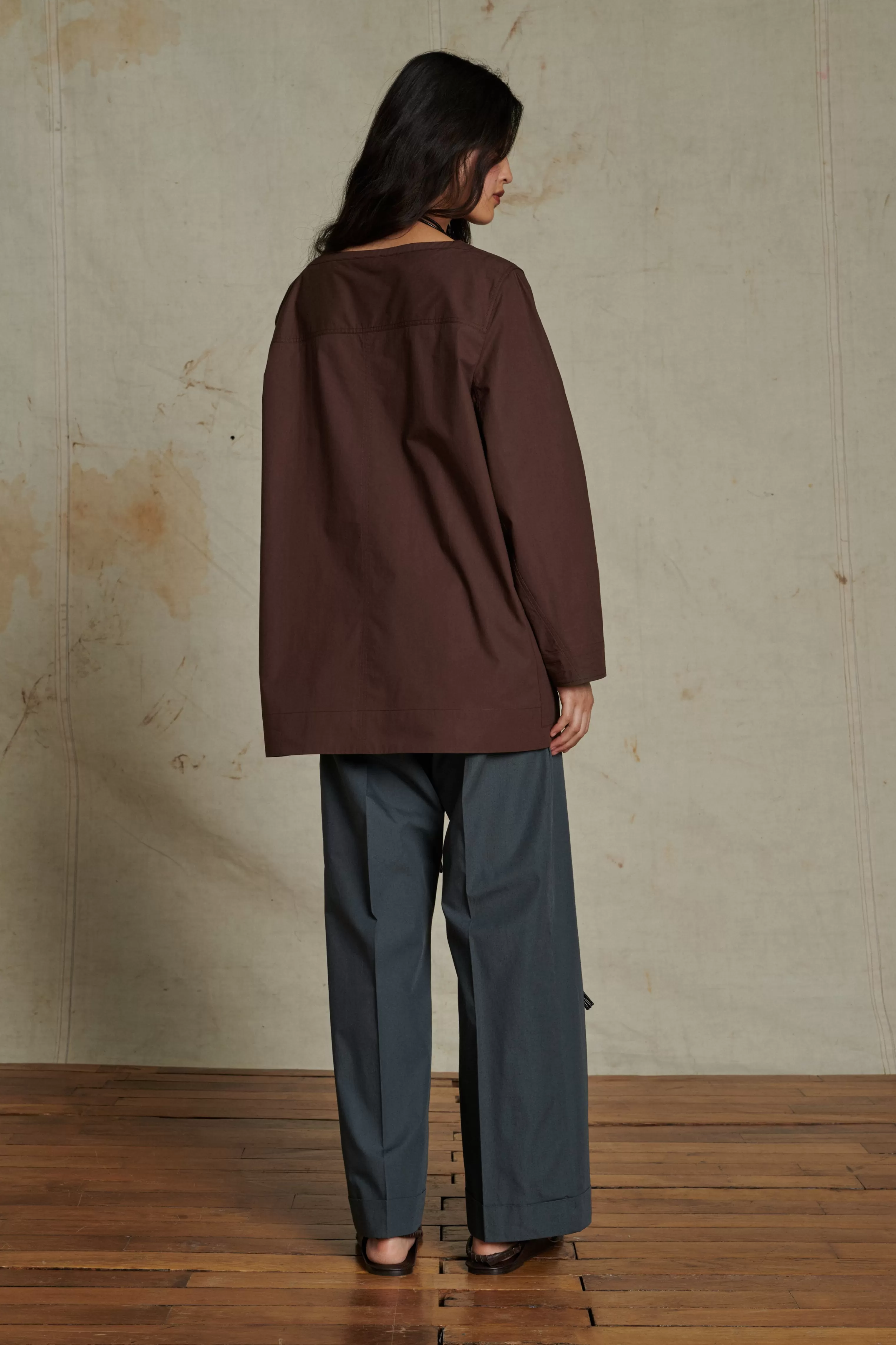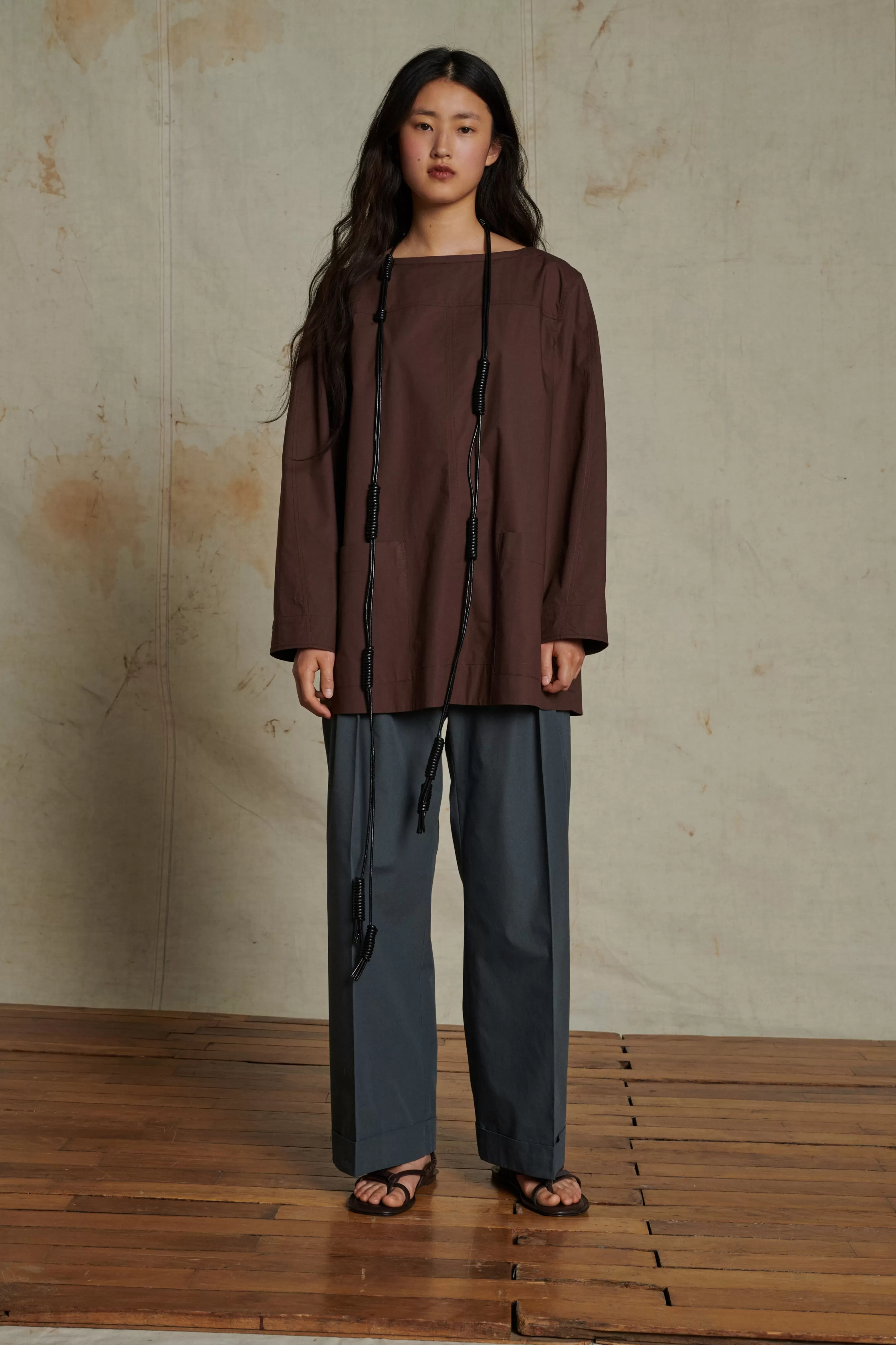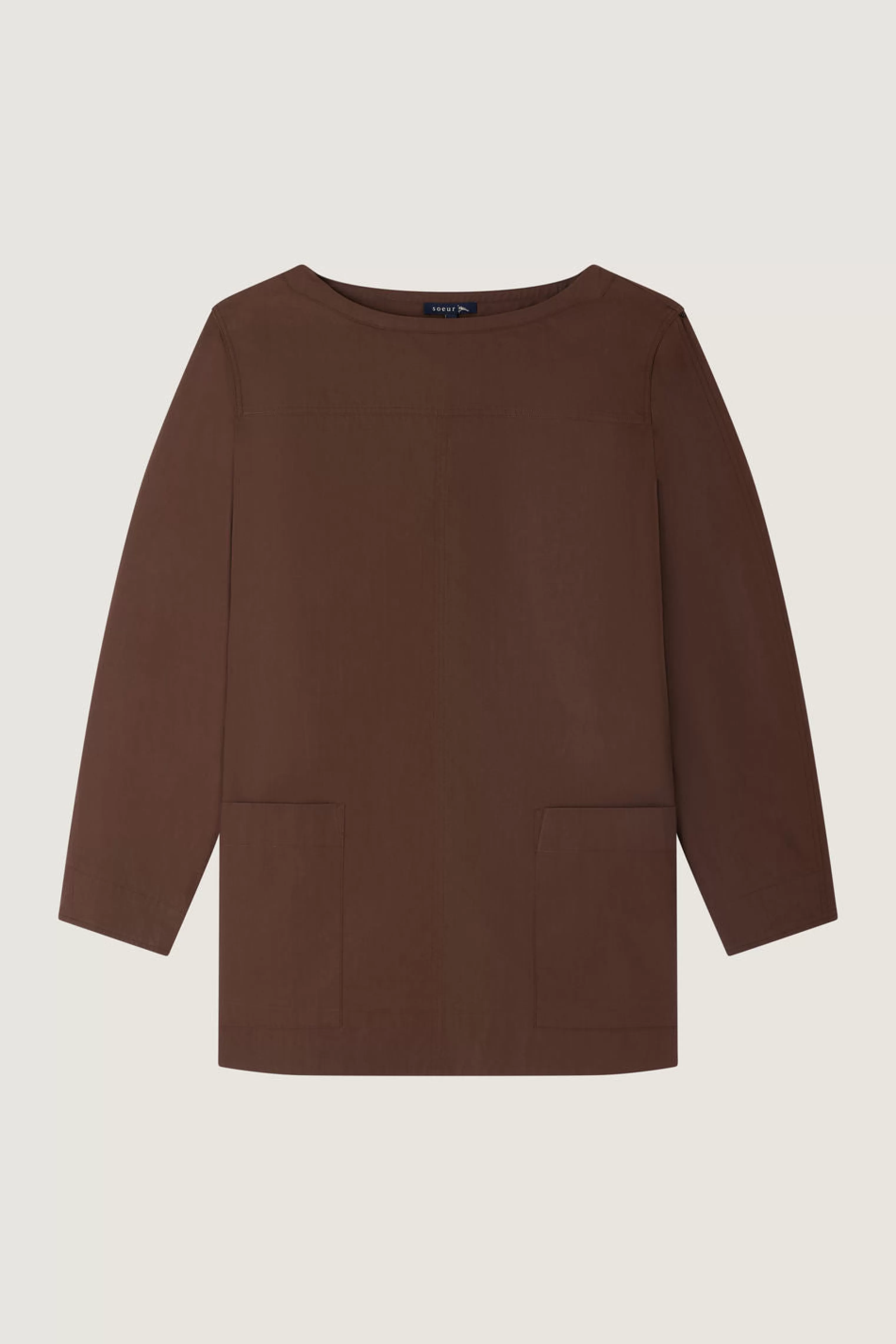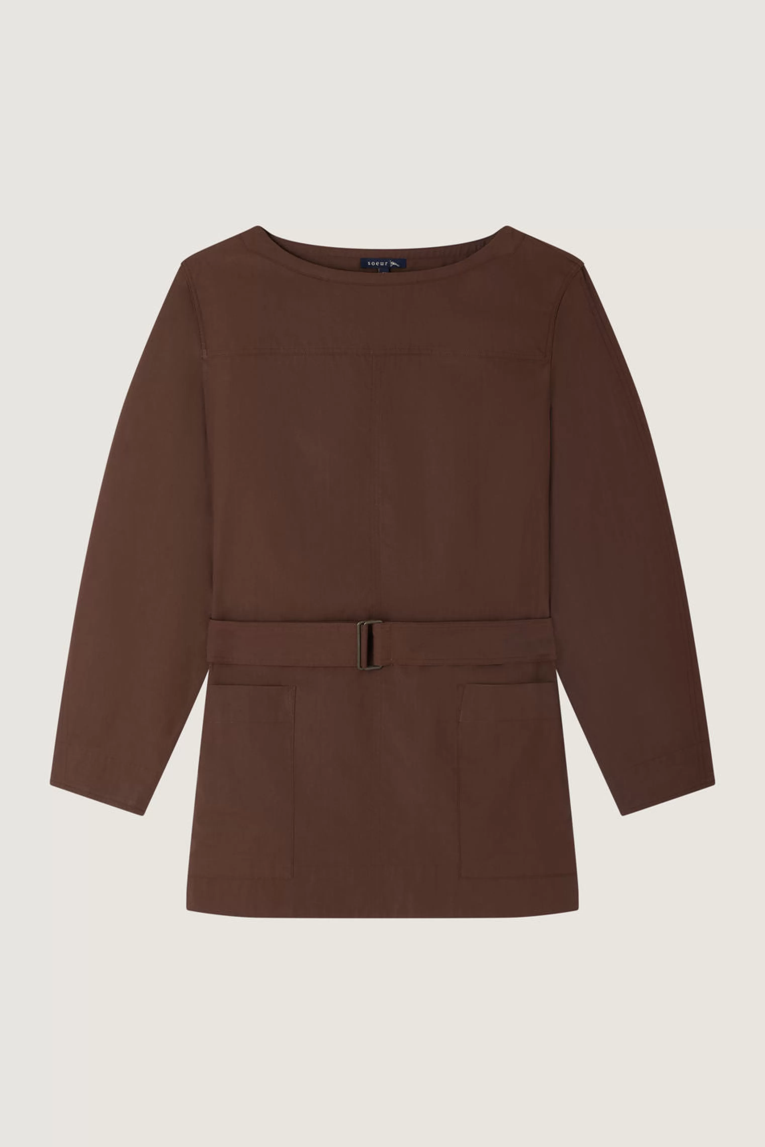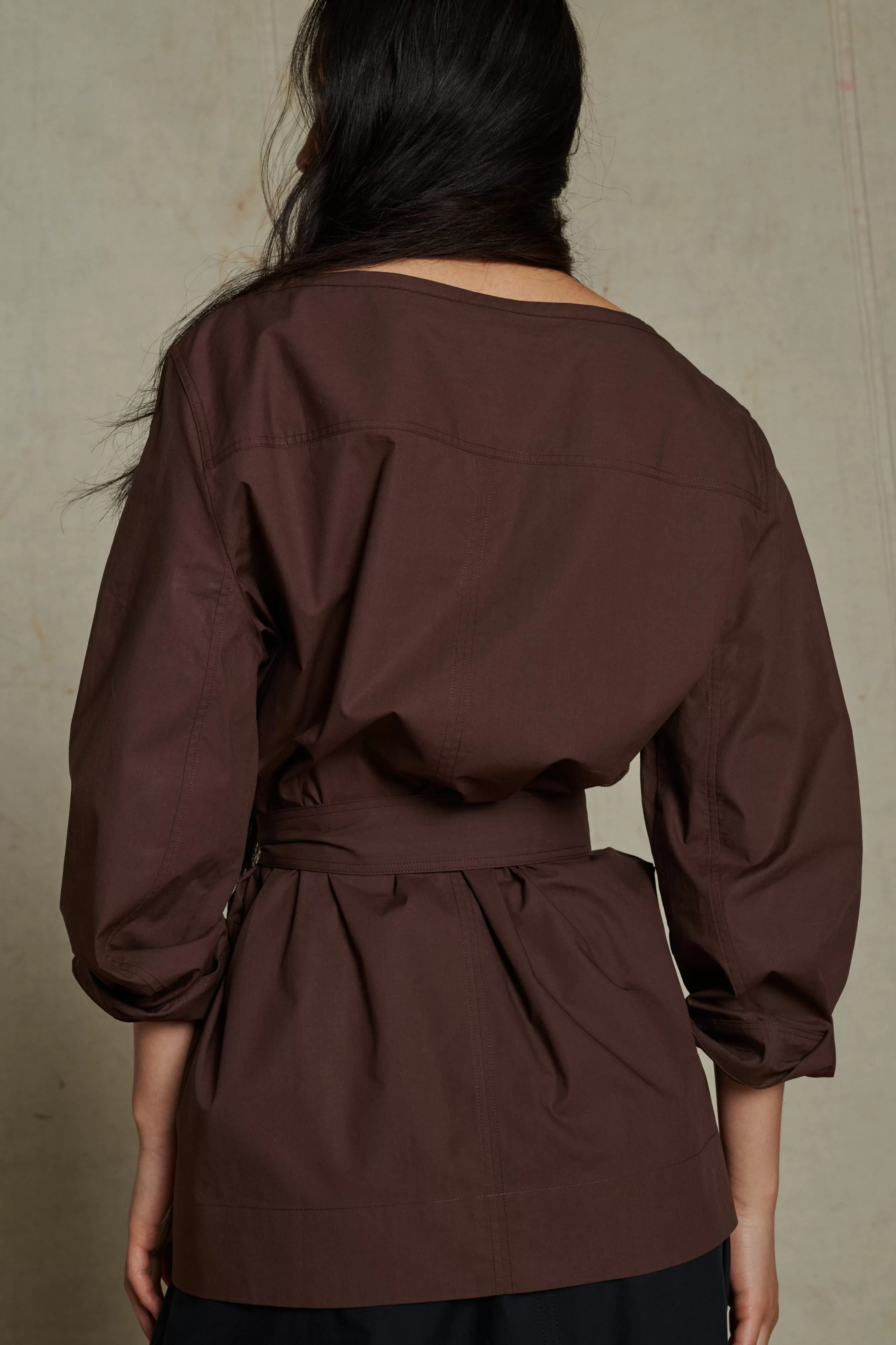 Blouse à ceinture amovible en popeline de coton chocolat