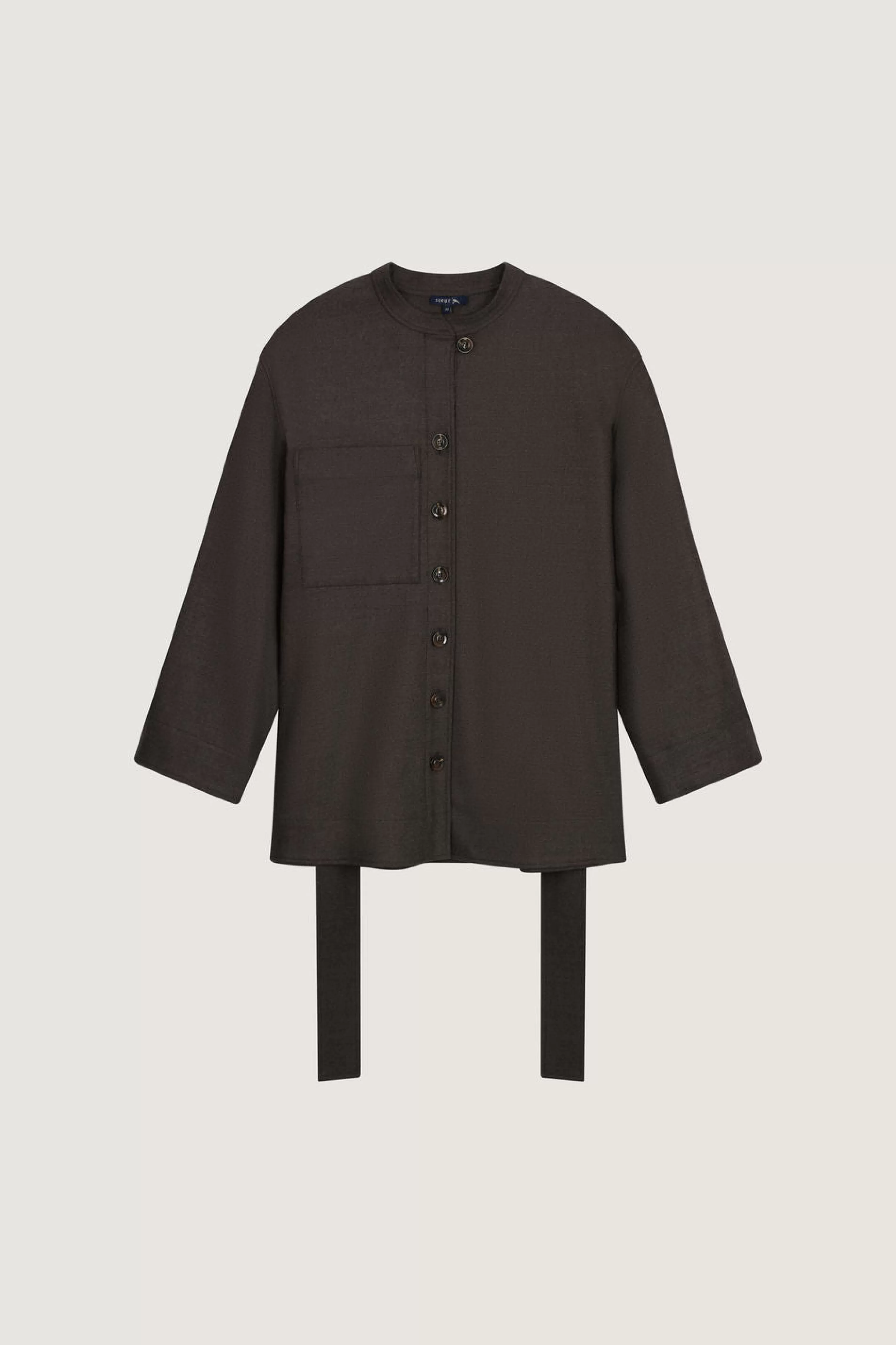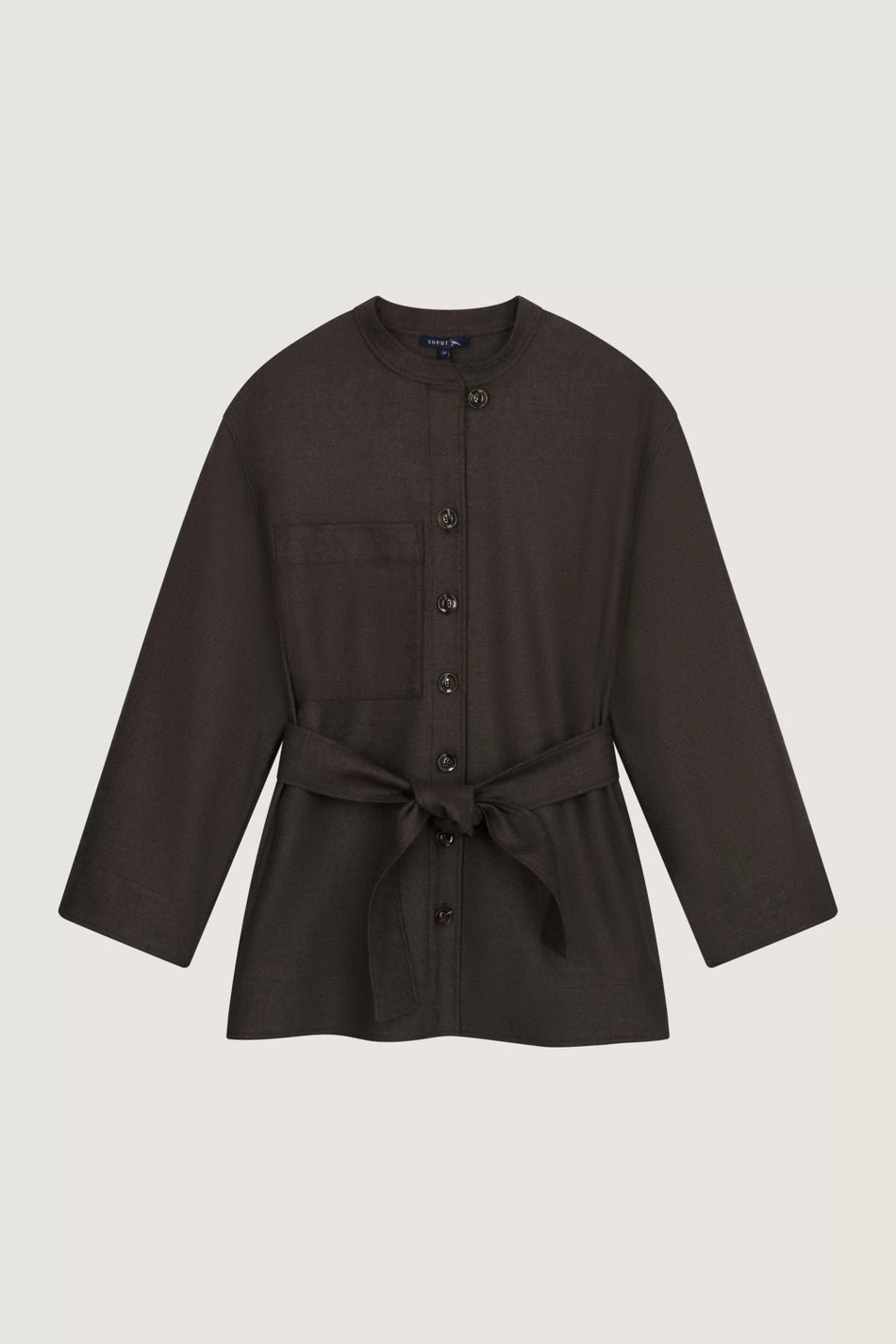 Chemise en flanelle chinée – Coupe droite et ample, ceinturée– Ouverture boutonnée devant– Manches longues, larges et courbées– Poignets amples ajustables par un système de boutonnage– Grande poche poitrine– Fentes aux côtés