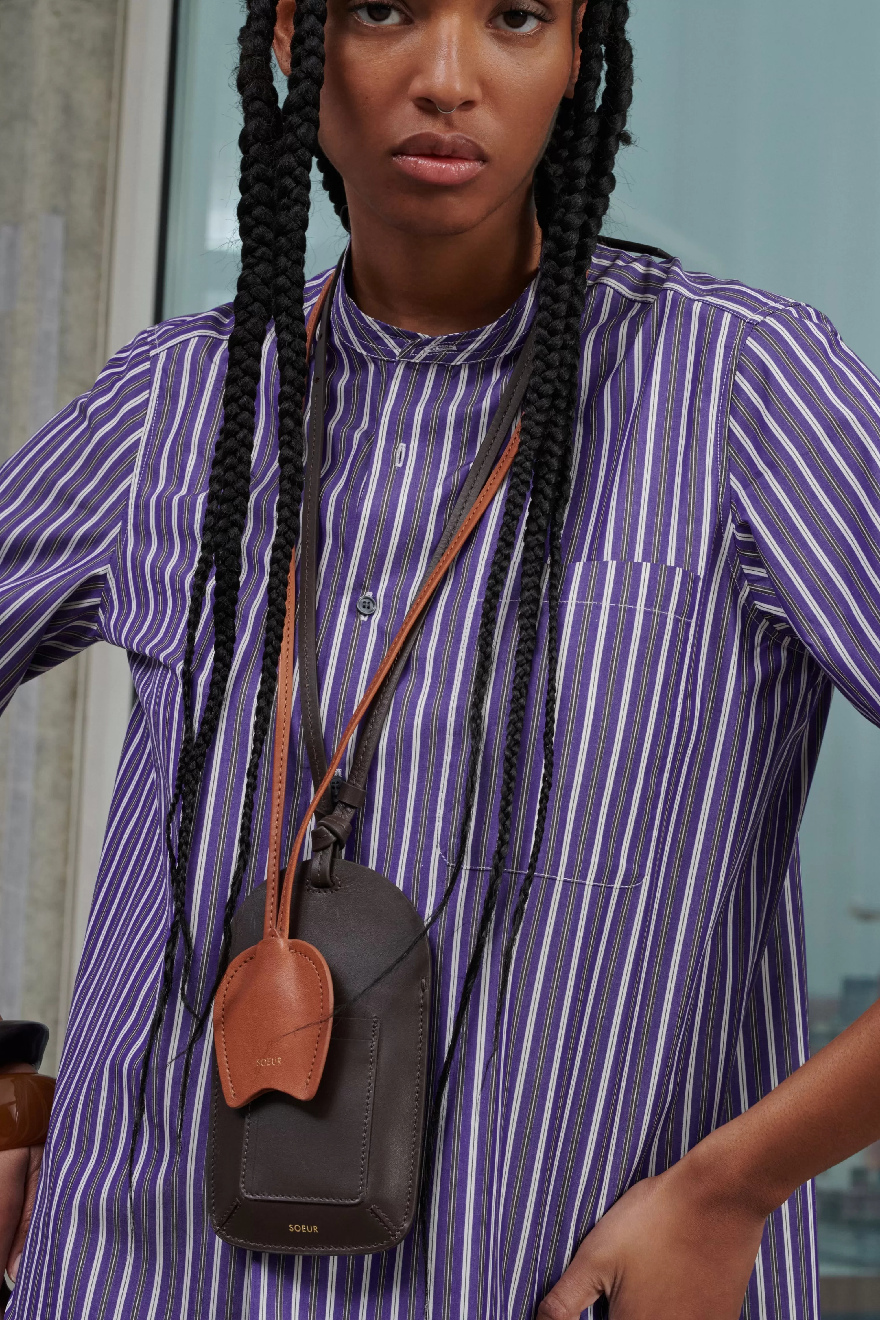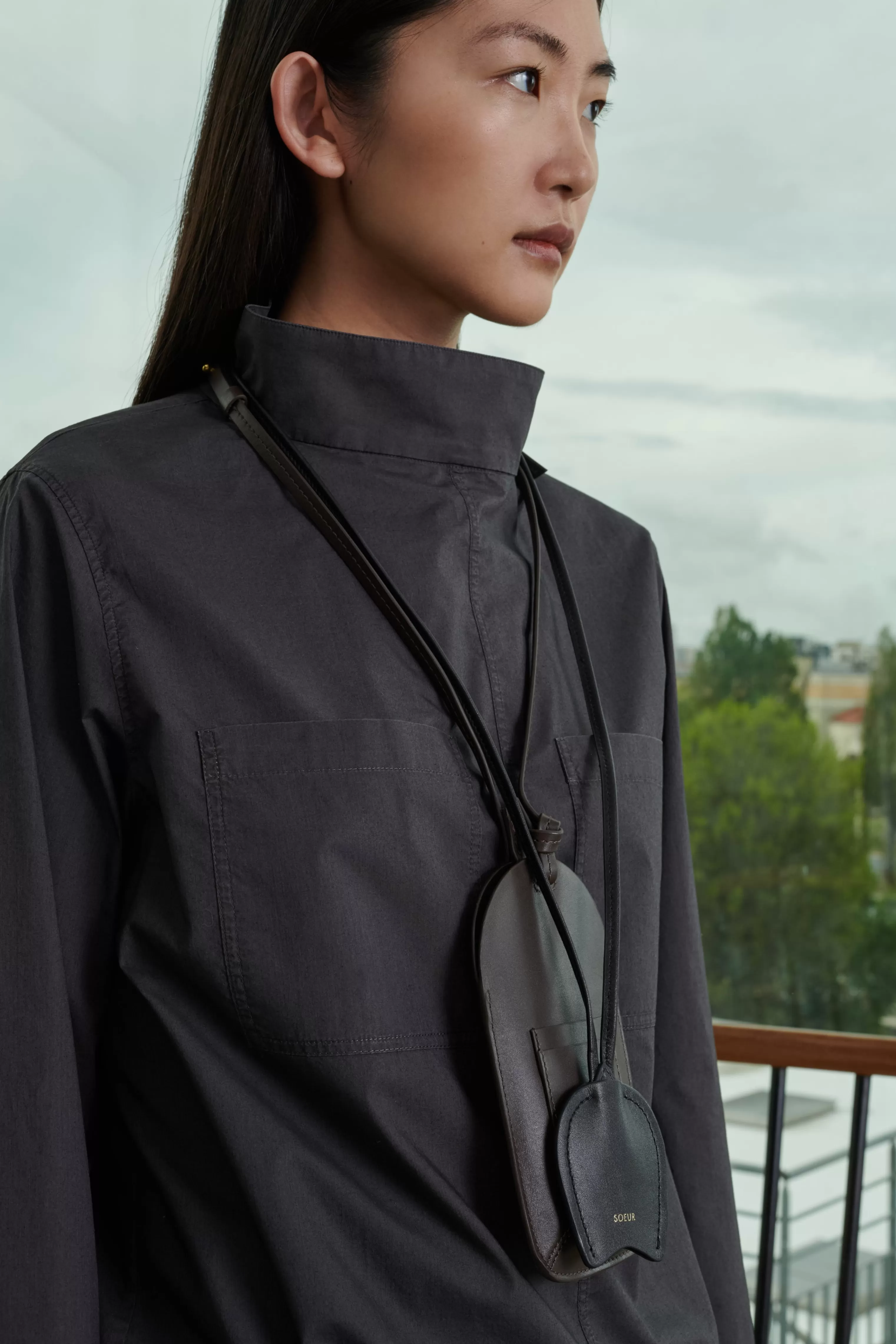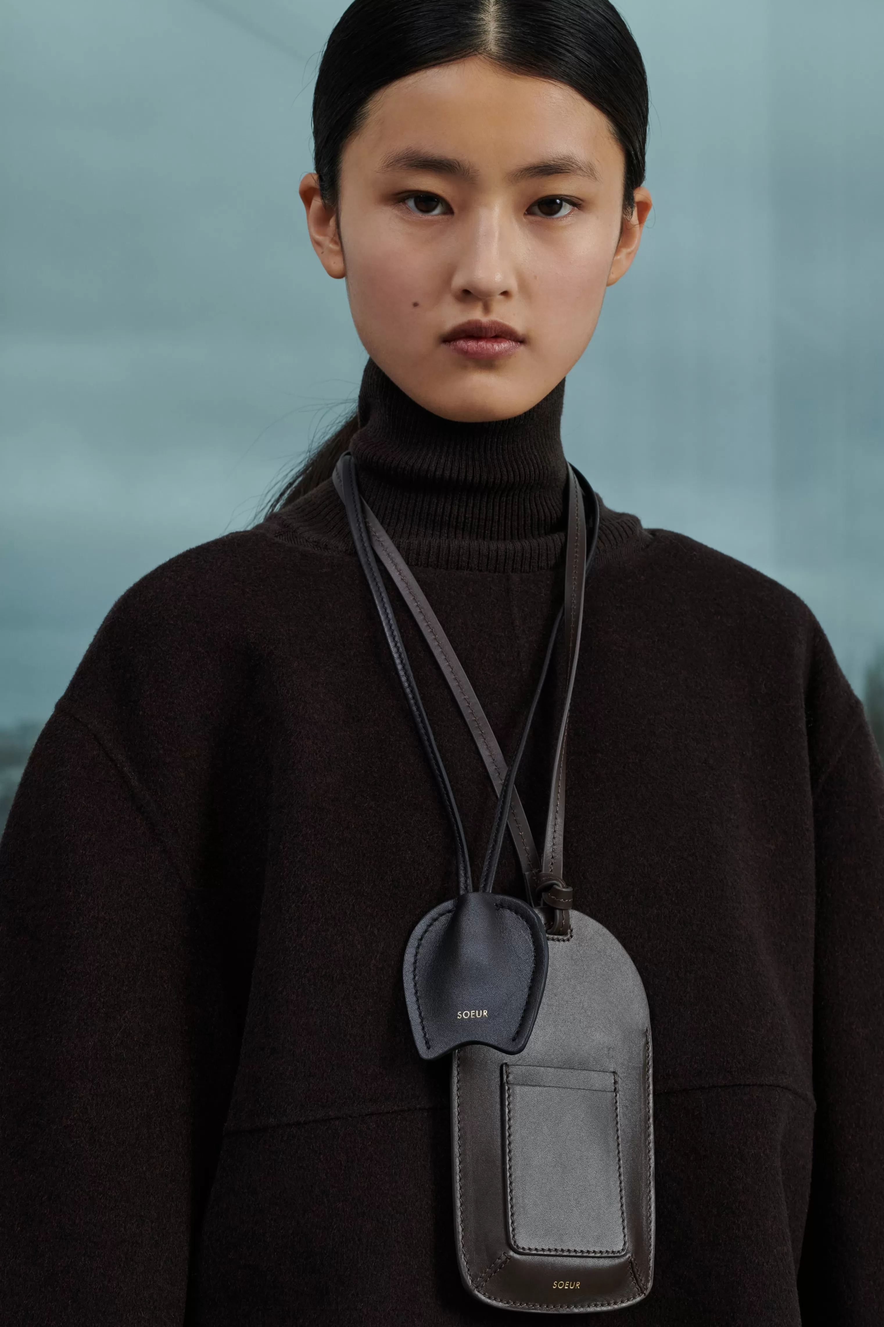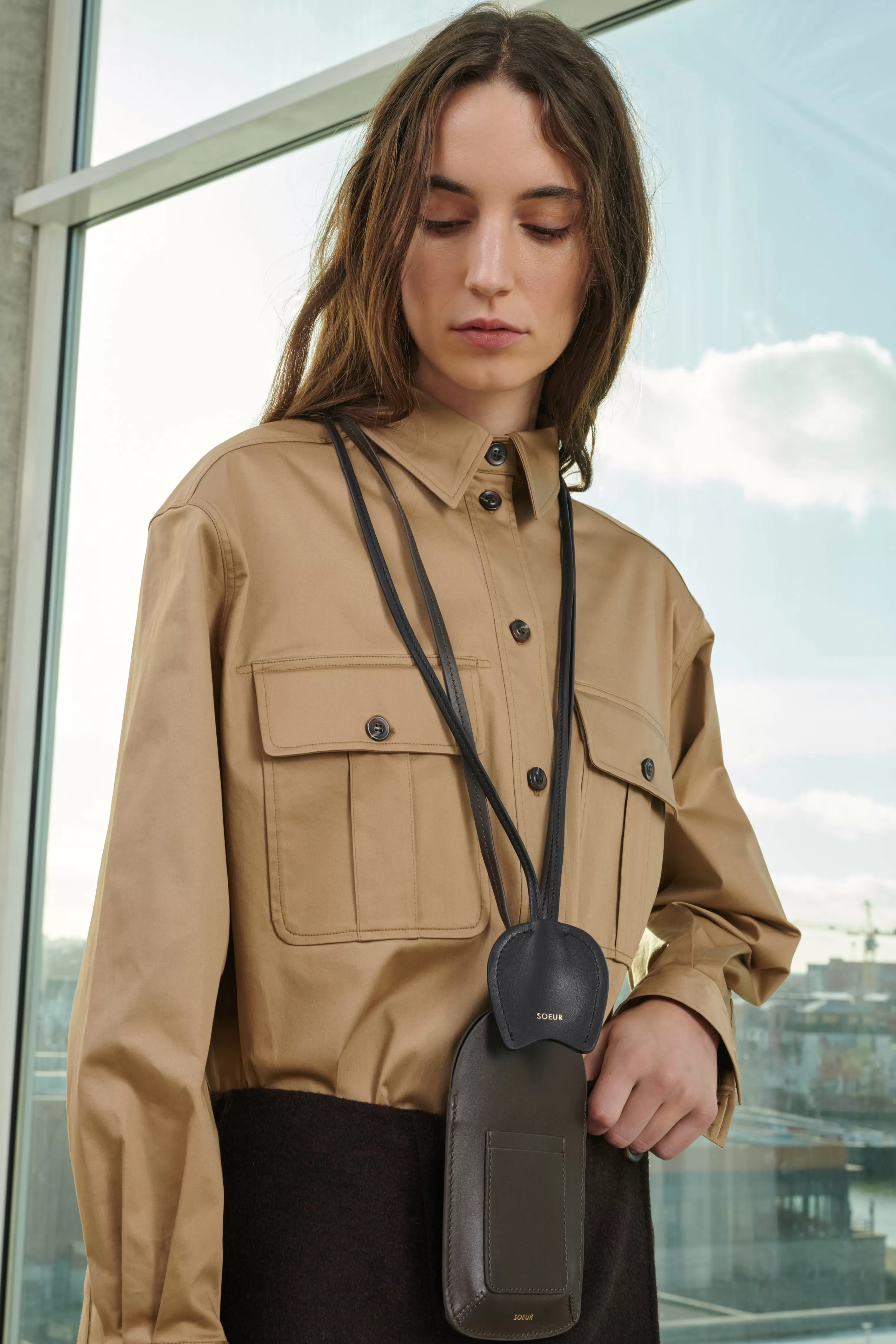Porte-téléphone en cuir avec porte-cartes charbon – Compartiment principal pour téléphone – Bandoulière en cuir ajustable avec boutons de col – Porté autour du cou ou en bandoulière– Dimensions pochette 19cm x 11cm – Cuir LWG