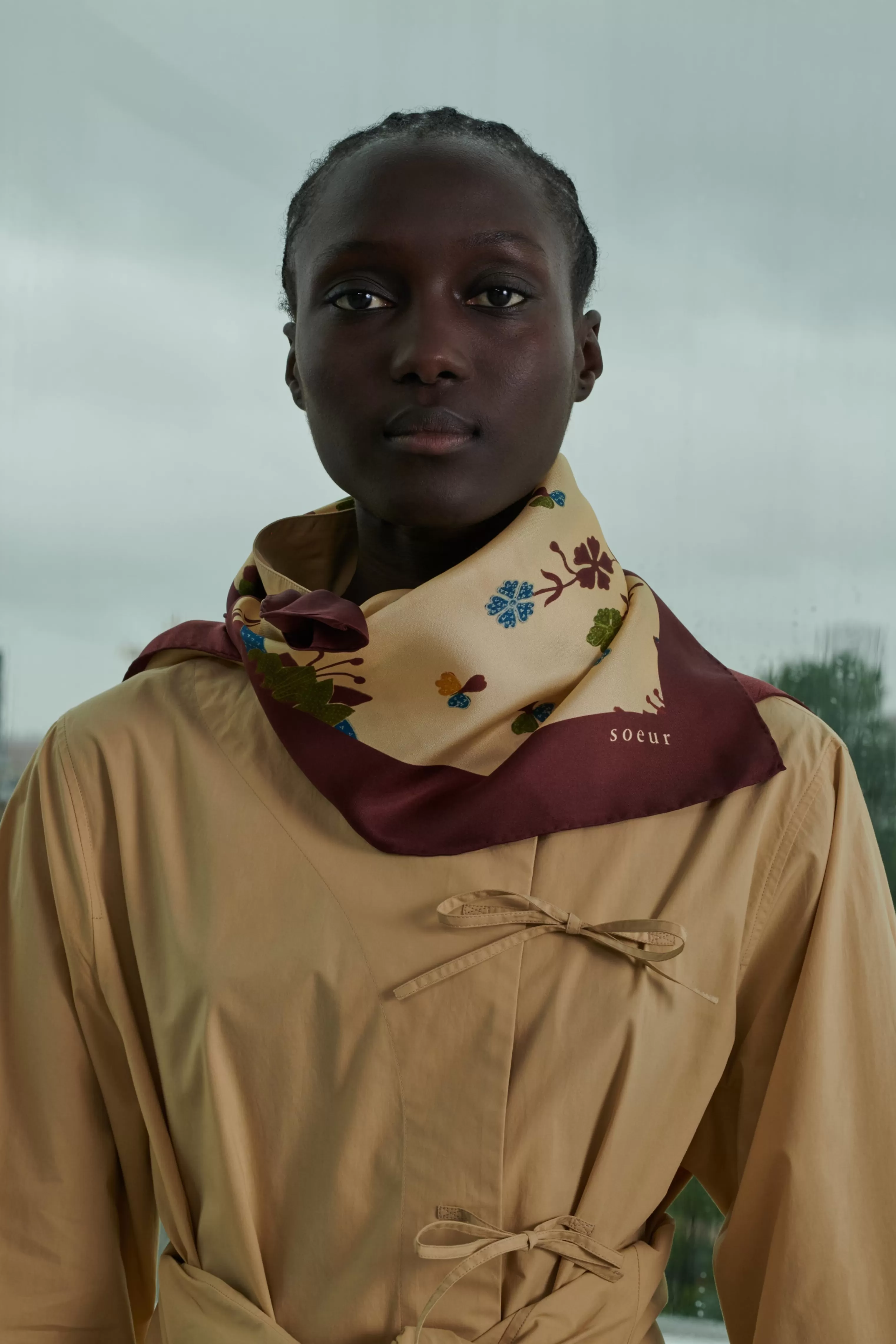 Le twill de soie a été choisi pour son aspect opaque, brillant et lisse. Ce tissage de la soie met en valeur la couleur ou l’imprimé. C’est un tissu glissant au tombé fluide et léger. Ce produit est fait en Chine, pays reconnu pour son savoir-faire millénaire de la soie.