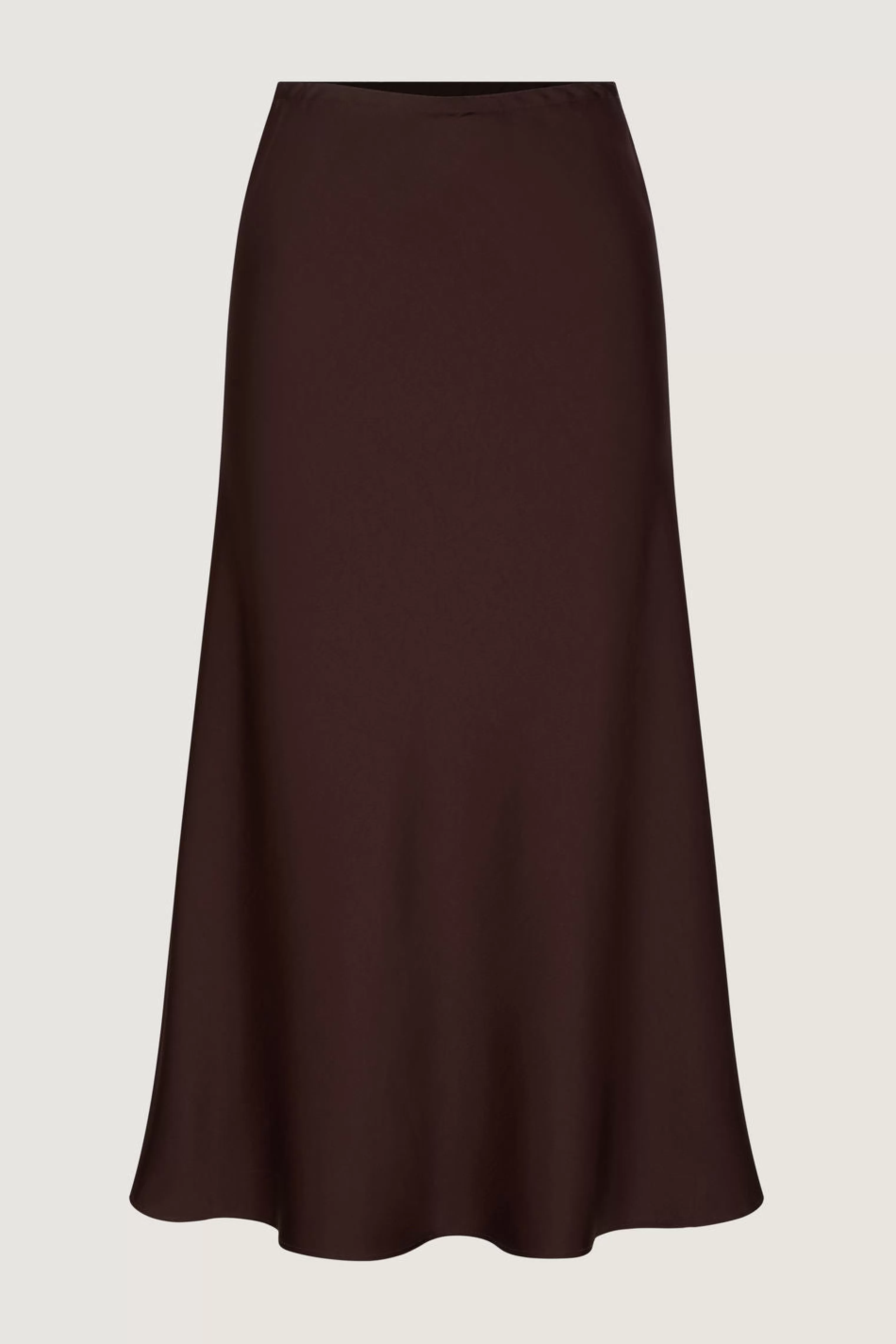 Jupe longueur midi en sergé fluide – Coupe en biais, légèrement évasée– Jupe mi-longue– Taille élastiquée Cette pièce est certifiée OEKO-TEX Standard 100.