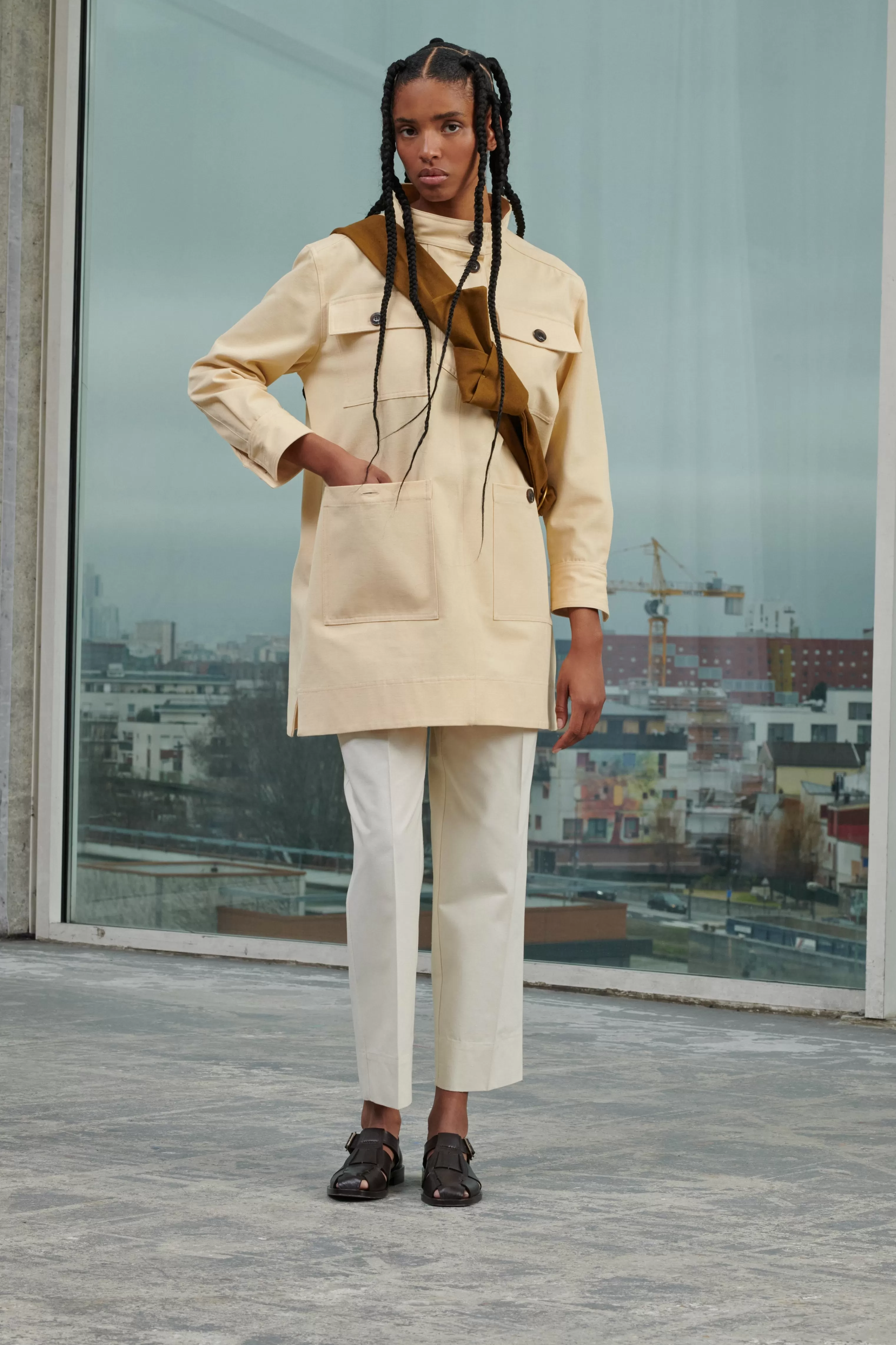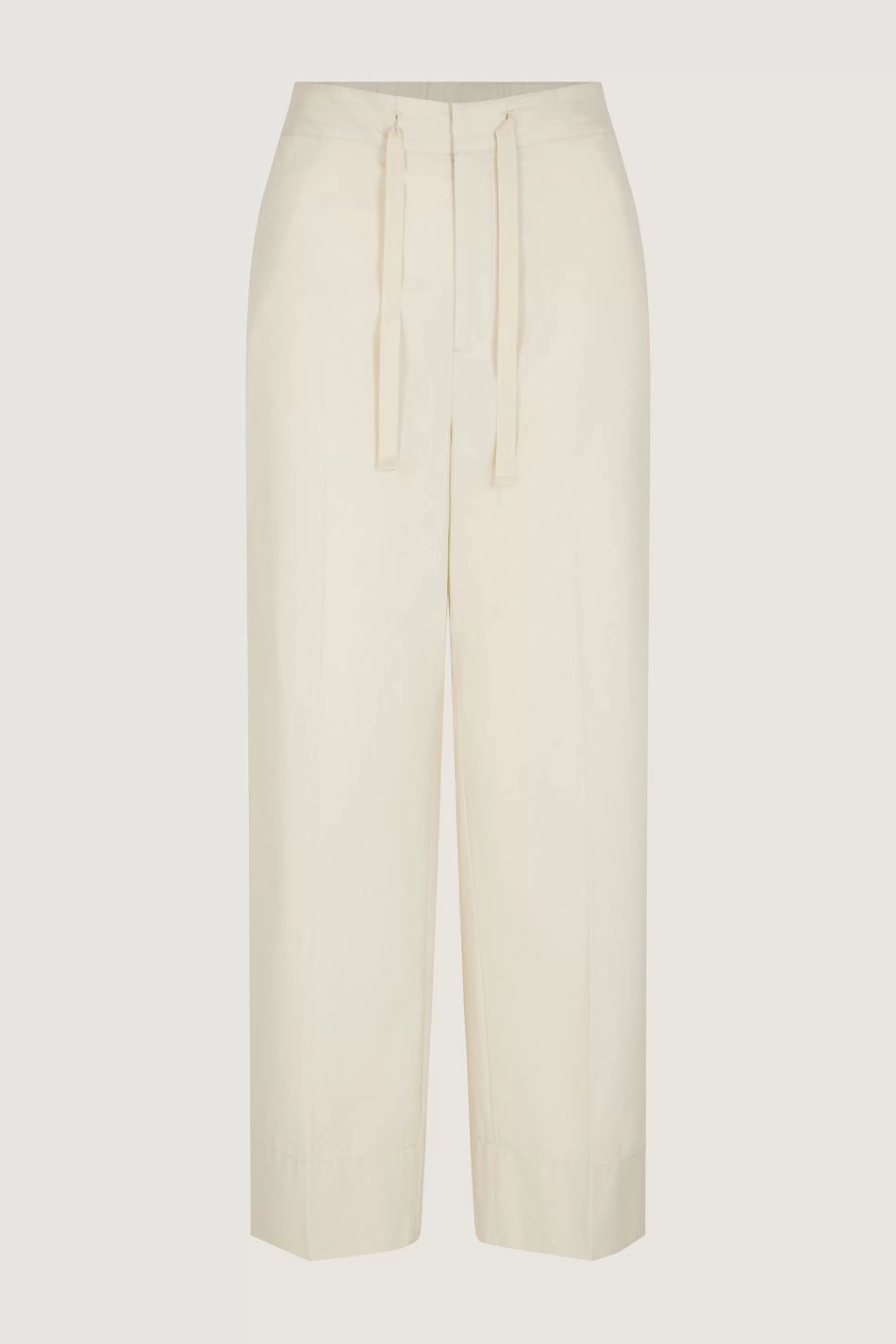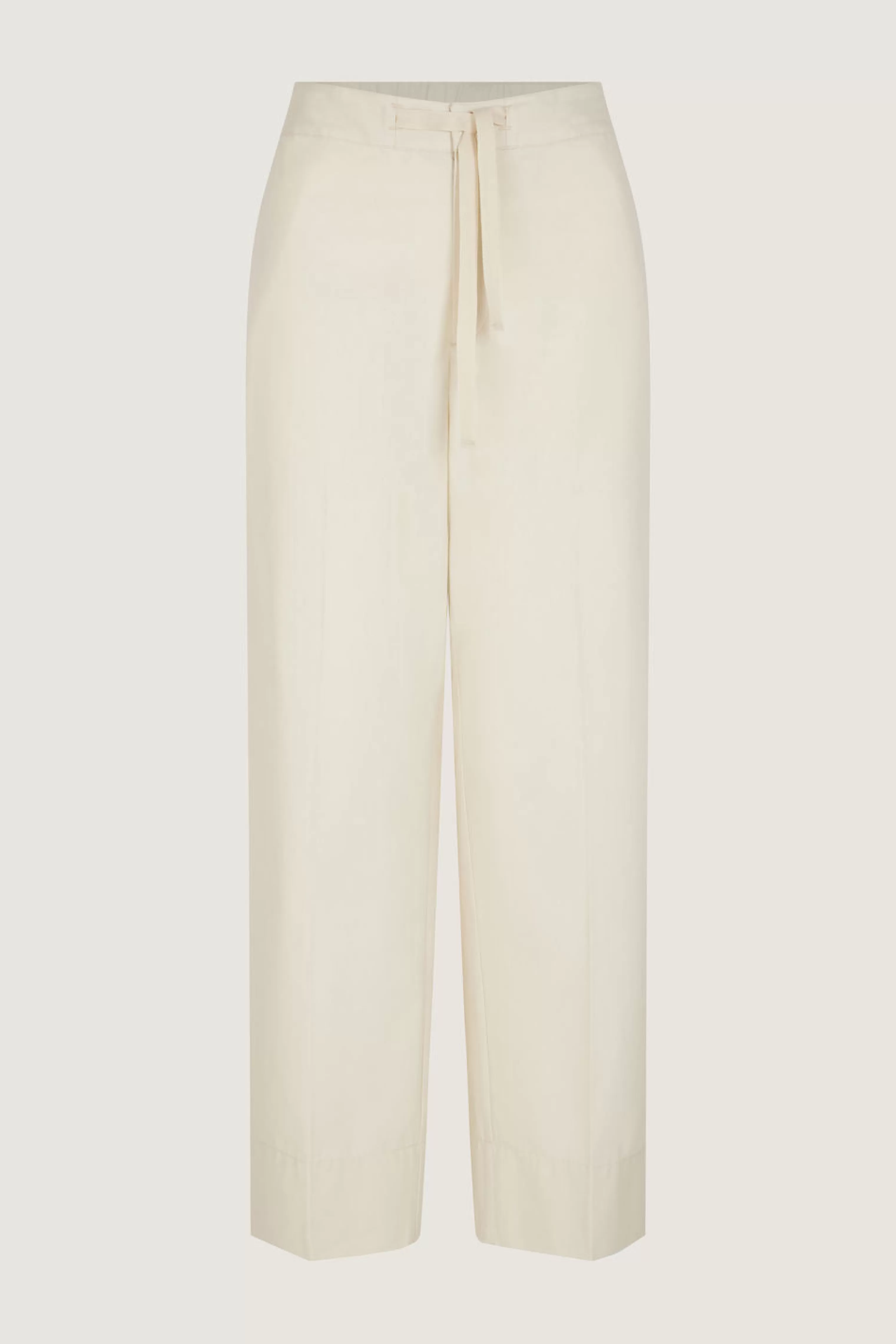 Pantalon à taille élastiquée en toile de coton et soie – Coupe droite– Ceinture elastiquée avec cordons de serrage– Deux poches devant– Poches passepoilées boutonnées au dos Cette pièce est certifiée OEKO-TEX Standard 100.