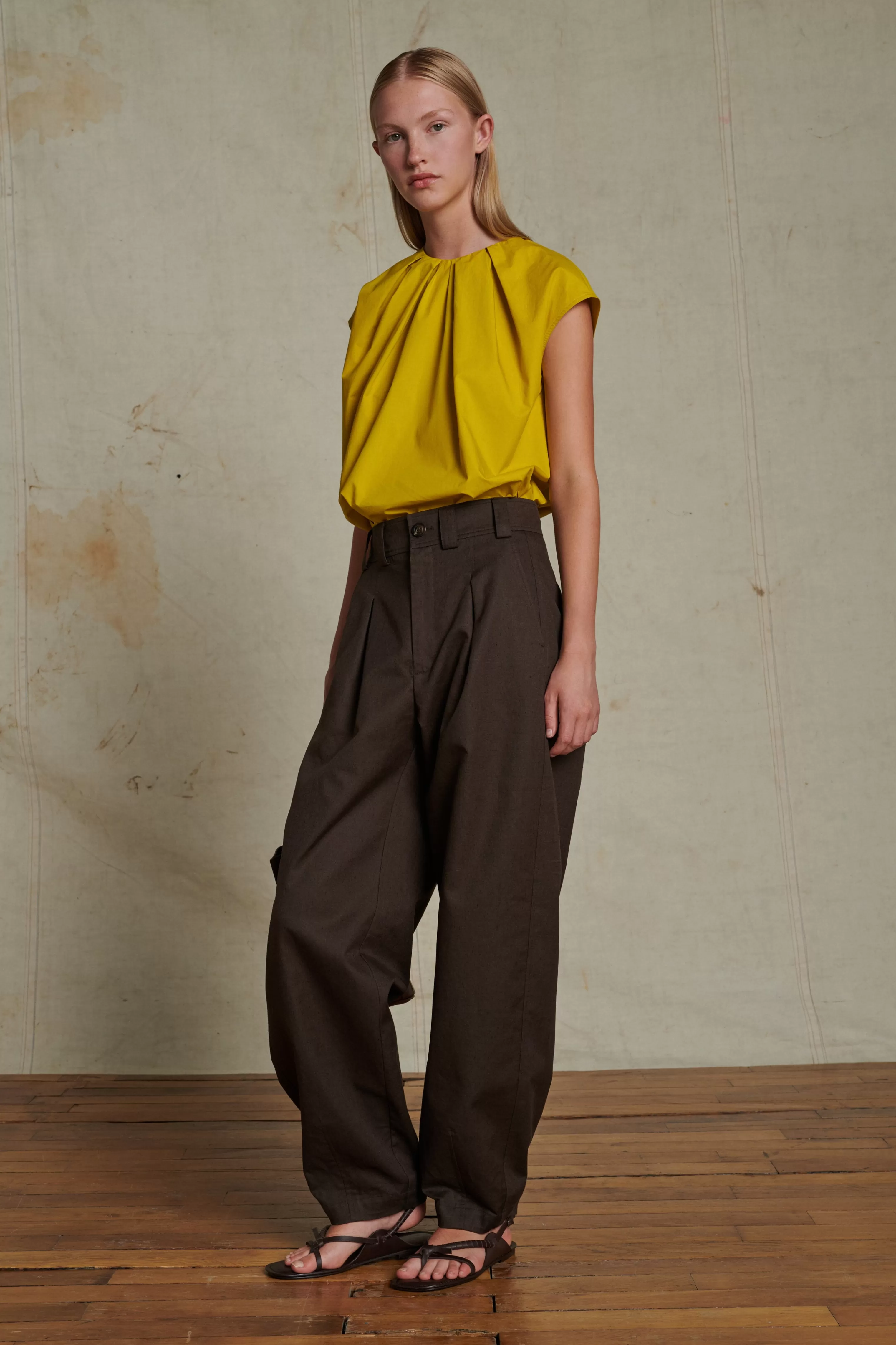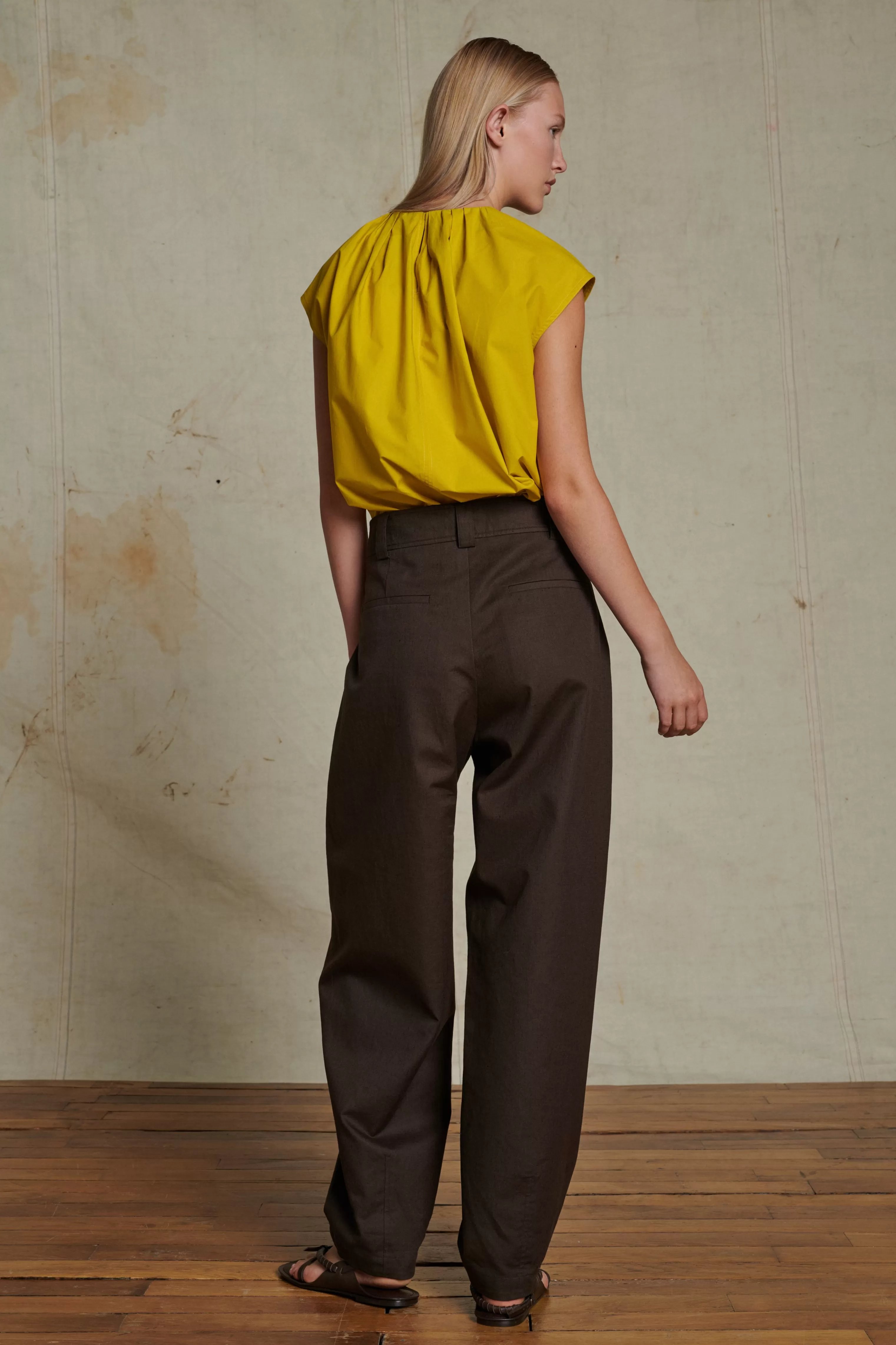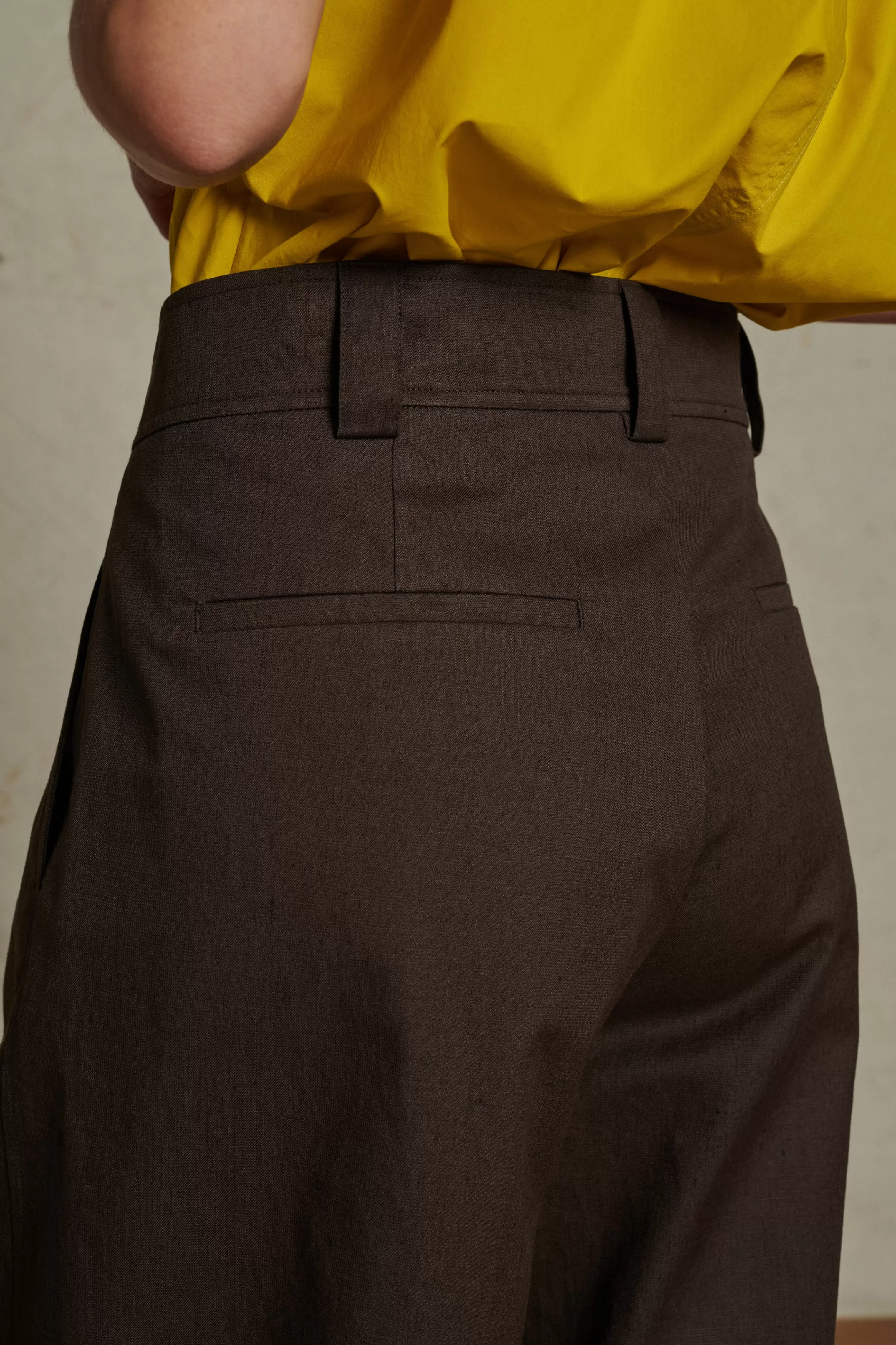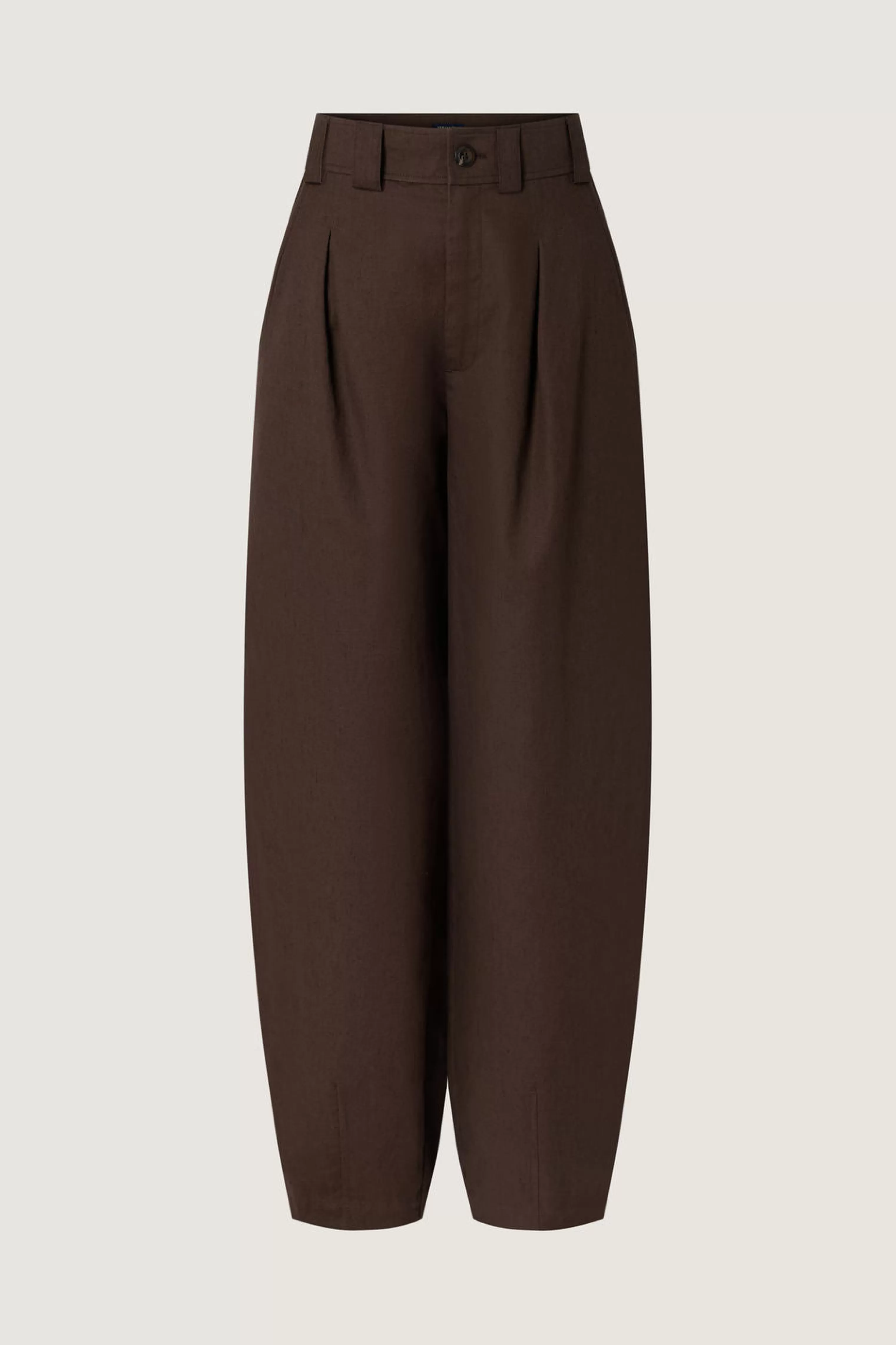 Pantalon à pinces en toile texturée marron