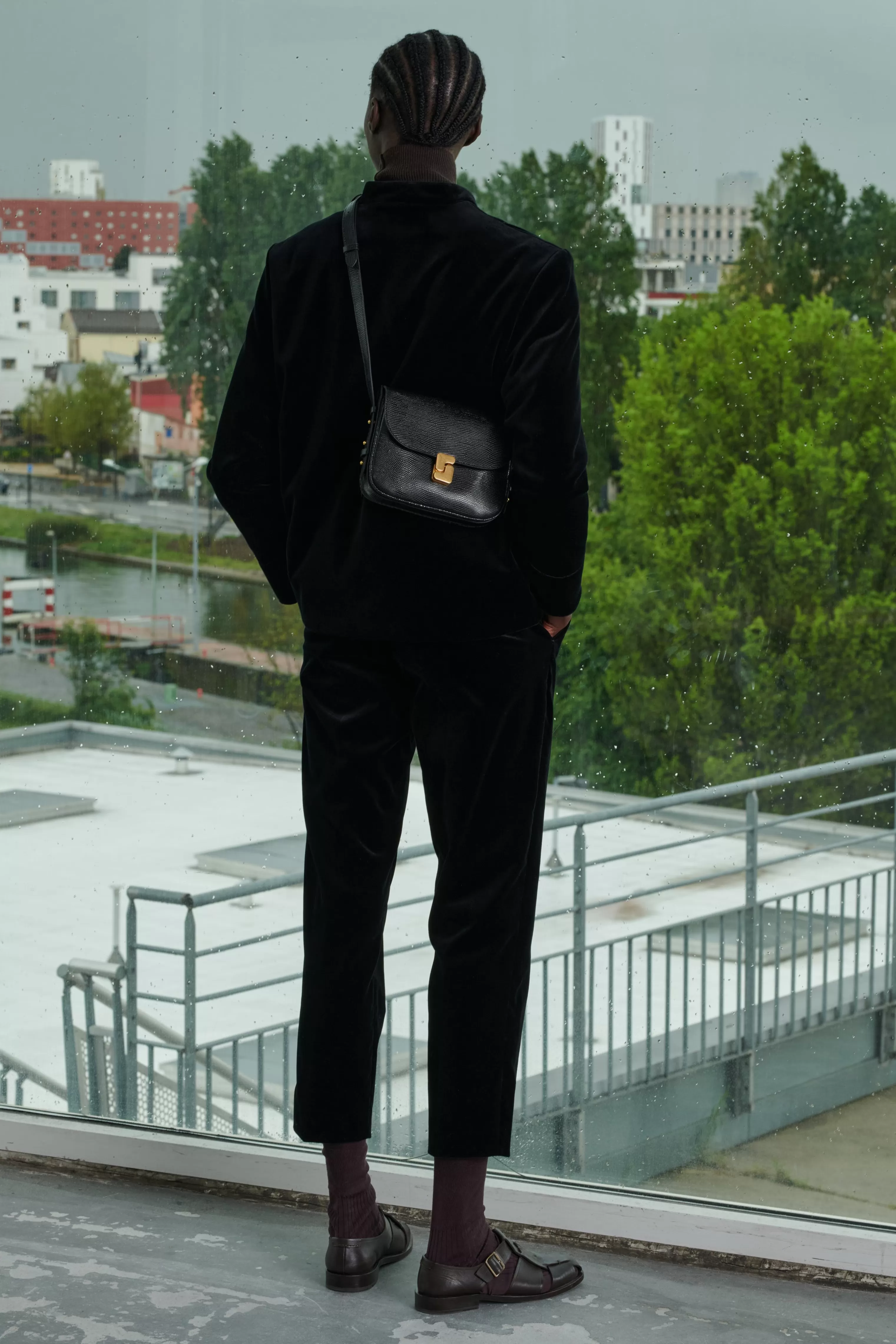 Pantalon en velours lisse – Pantalon cigarette droit– Pli marqué le long de la jambe– Deux poches italiennes devant– Une poche passepoilée au dos