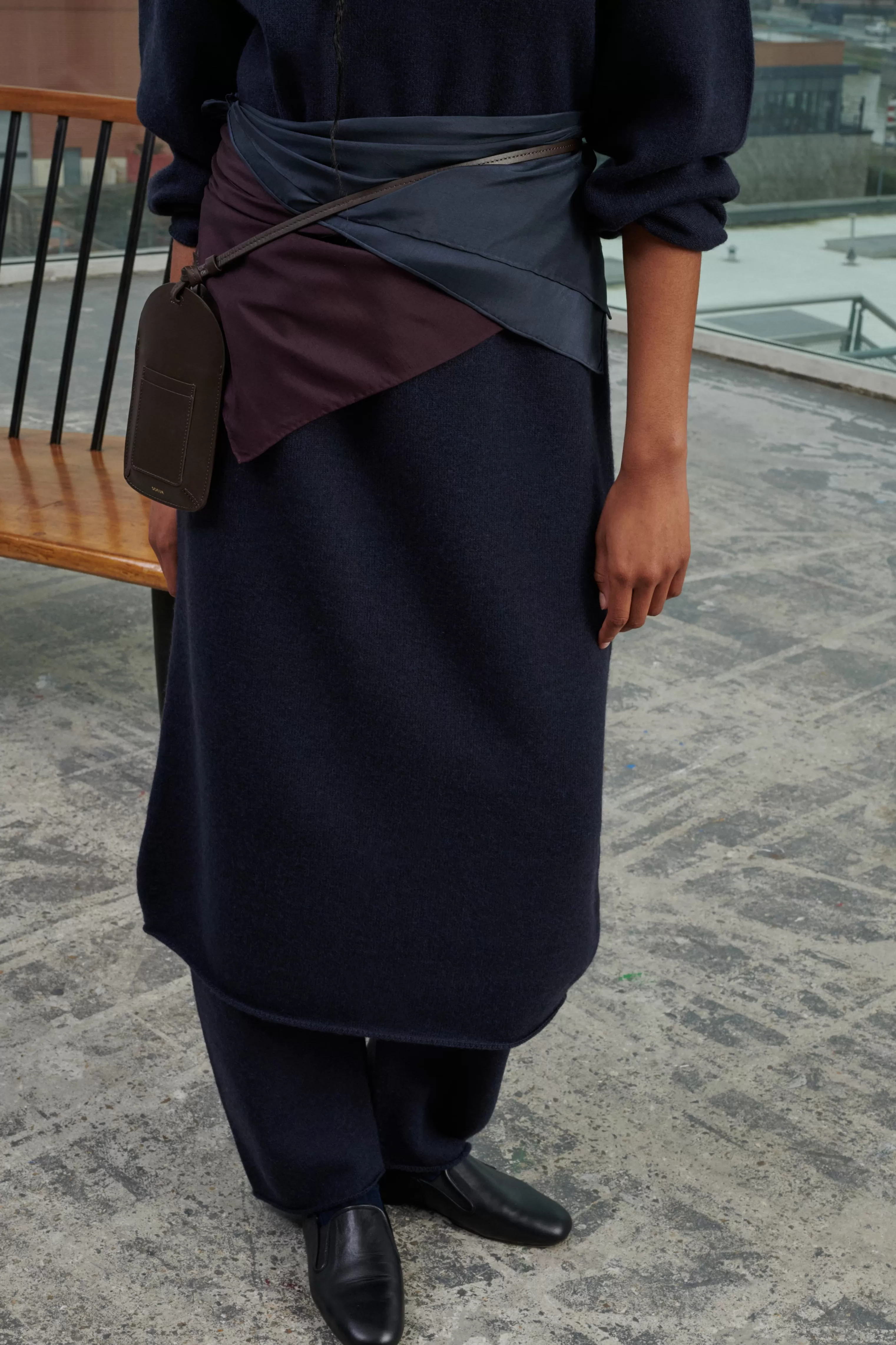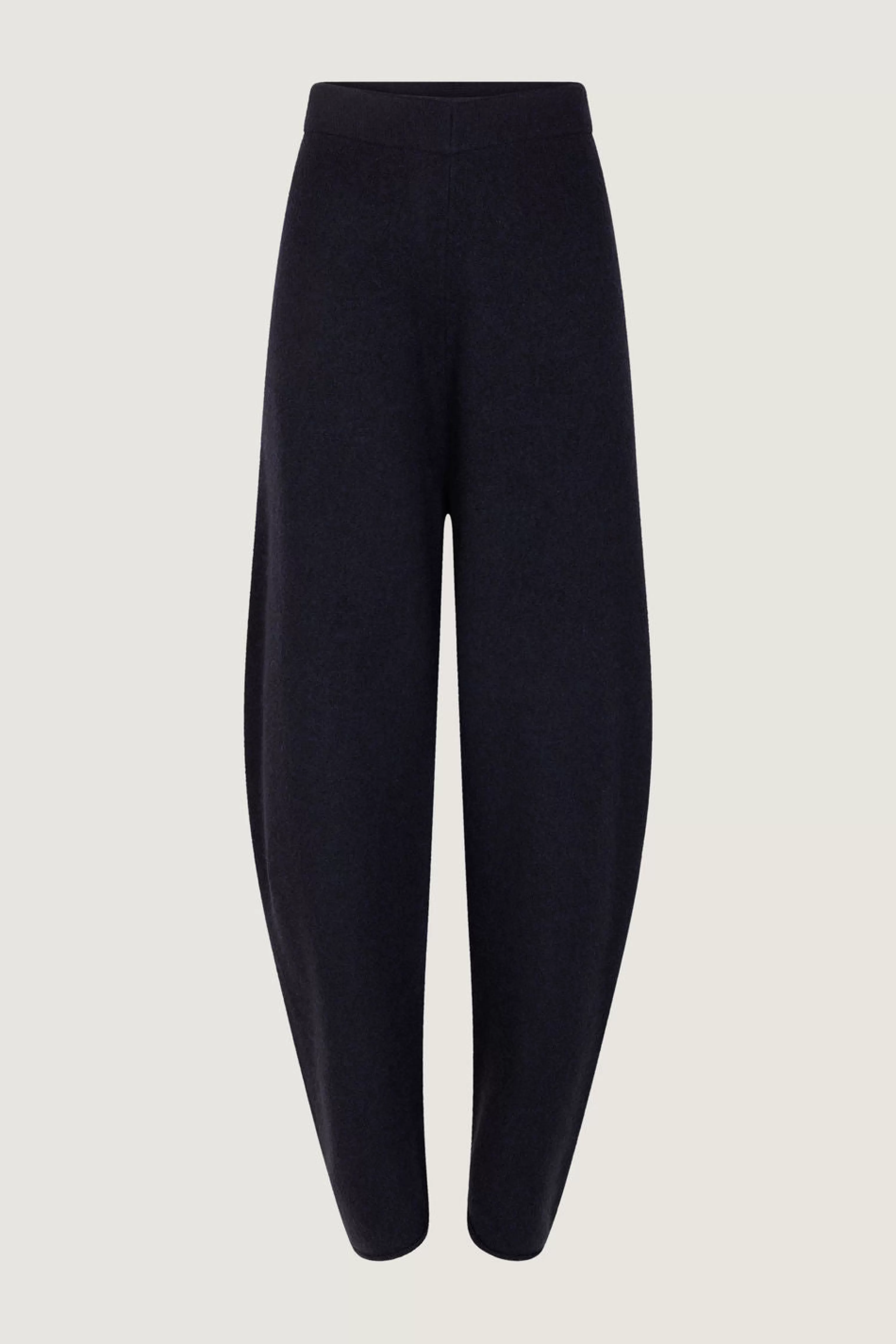 Pantalon en maille feutrée – Coupe légèrement arrondie en bas de jambe– Lien de serrage à la taille La laine est mulesing free.