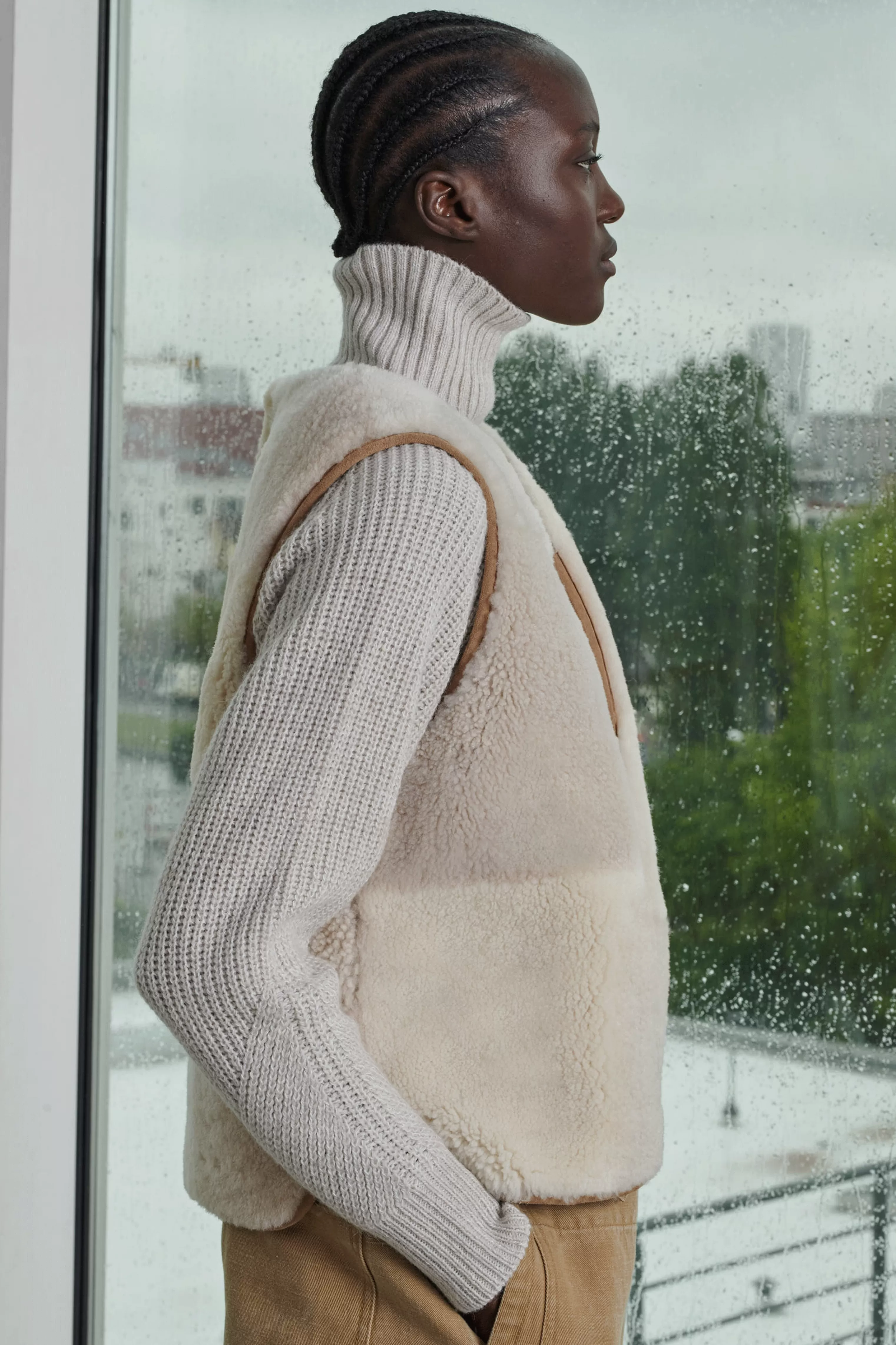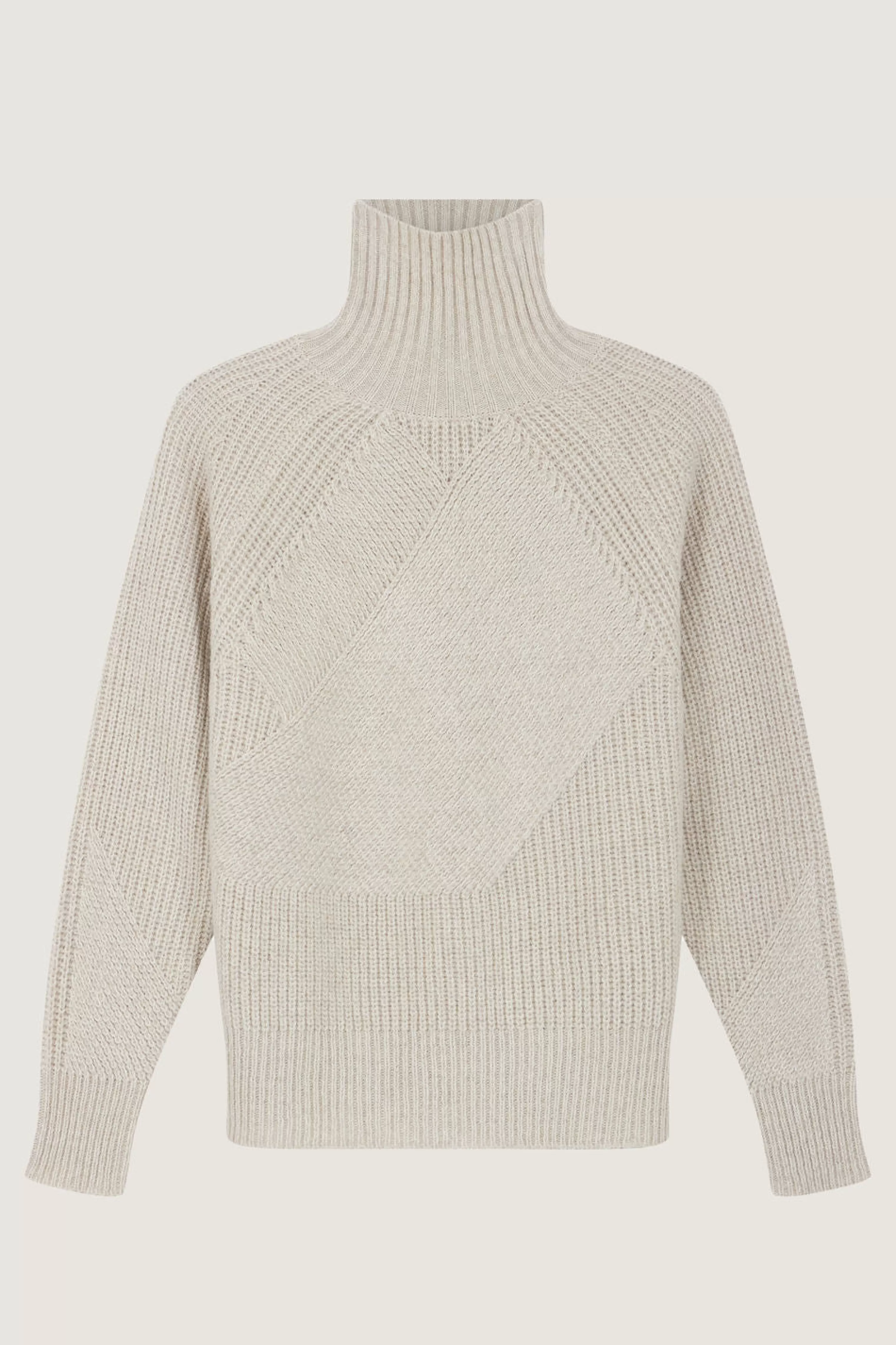 Pull col montant en côtes perlées – Coupe ample, forme boule– Jeu de côtes devant et dos La laine est mulesing free.