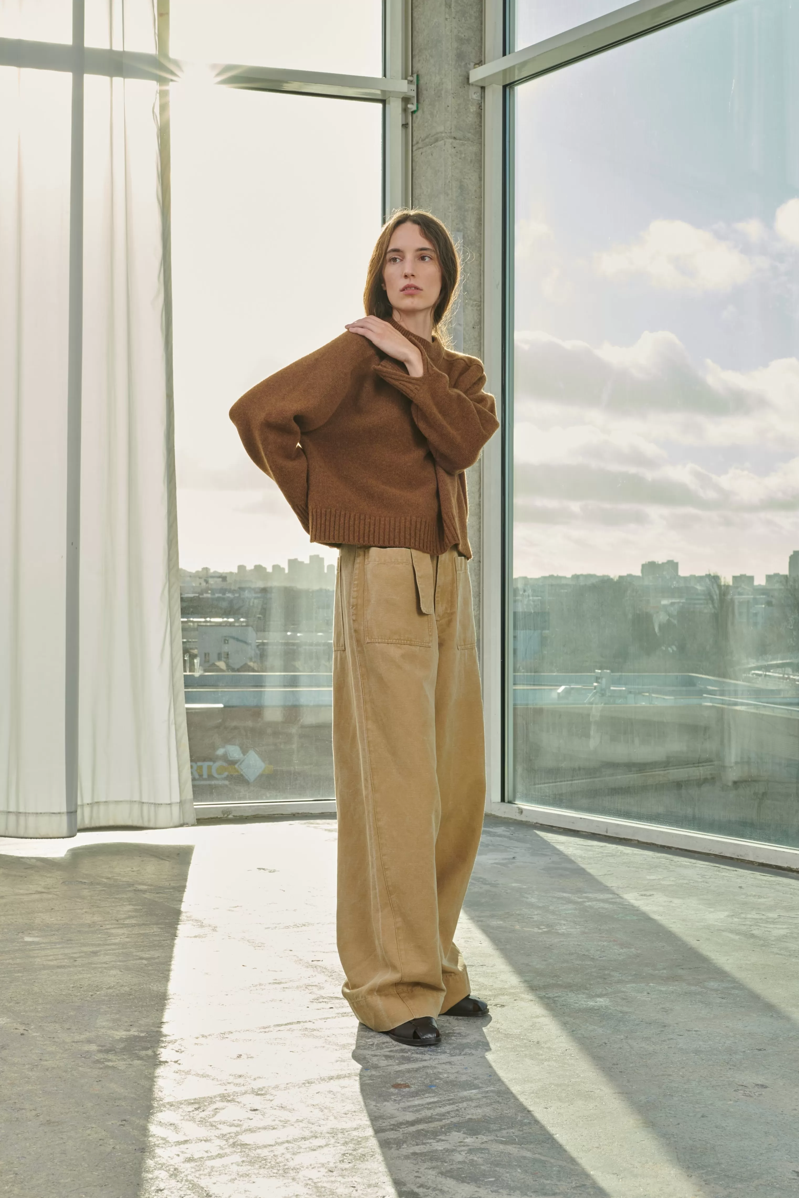 Pull ample en laine mérinos – Coupe droite et ample– Encolure ronde – Emmanchures basses– Finitions bord côtes– Fentes aux poignets Cette pièce est certifiée OEKO-TEX Standard 100.La laine est mulesing free.