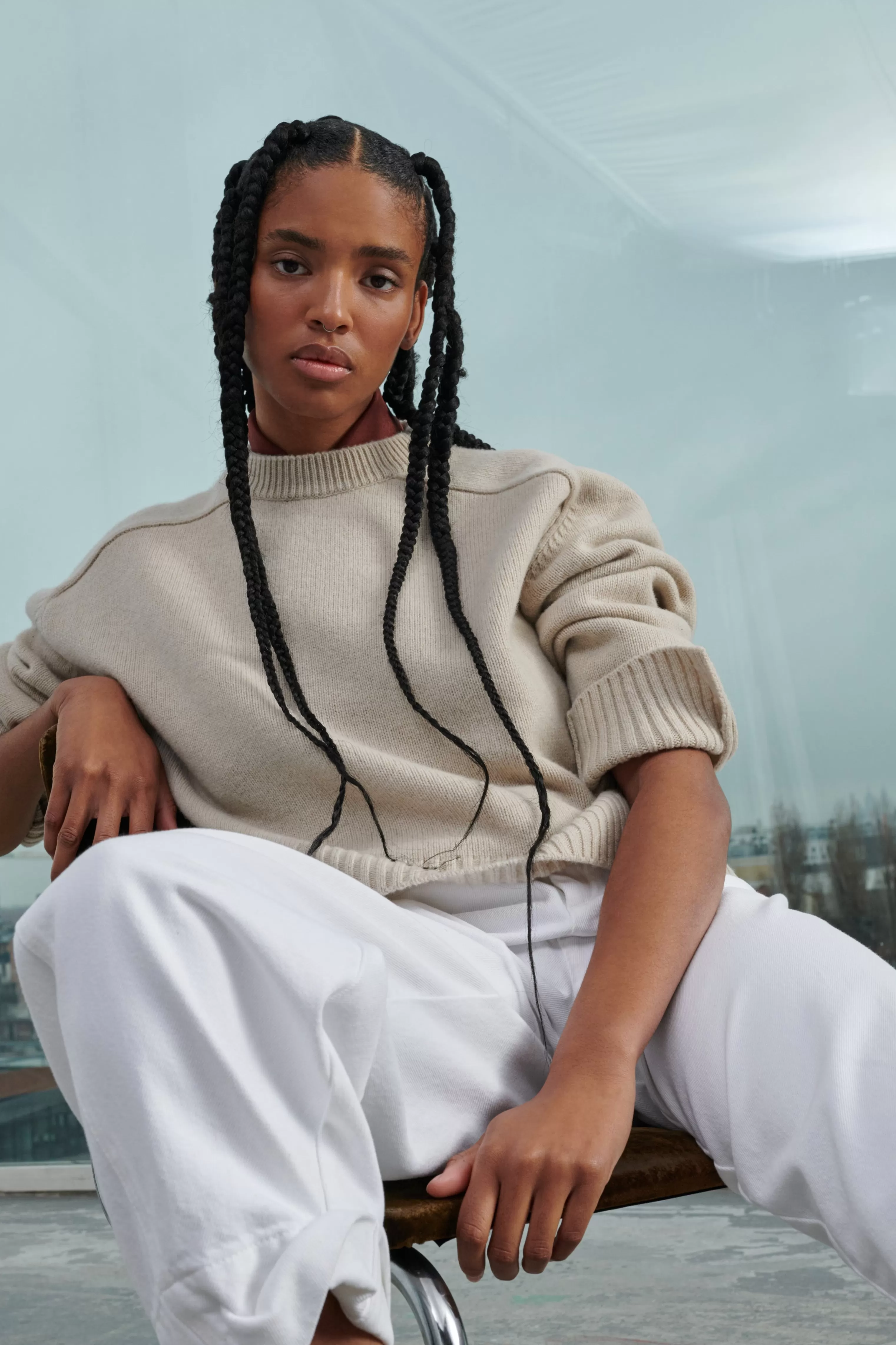 Pull ample en laine mérinos – Coupe droite et ample– Encolure ronde – Emmanchures basses– Finitions bord côtes– Fentes aux poignets Cette pièce est certifiée OEKO-TEX Standard 100.La laine est mulesing free.