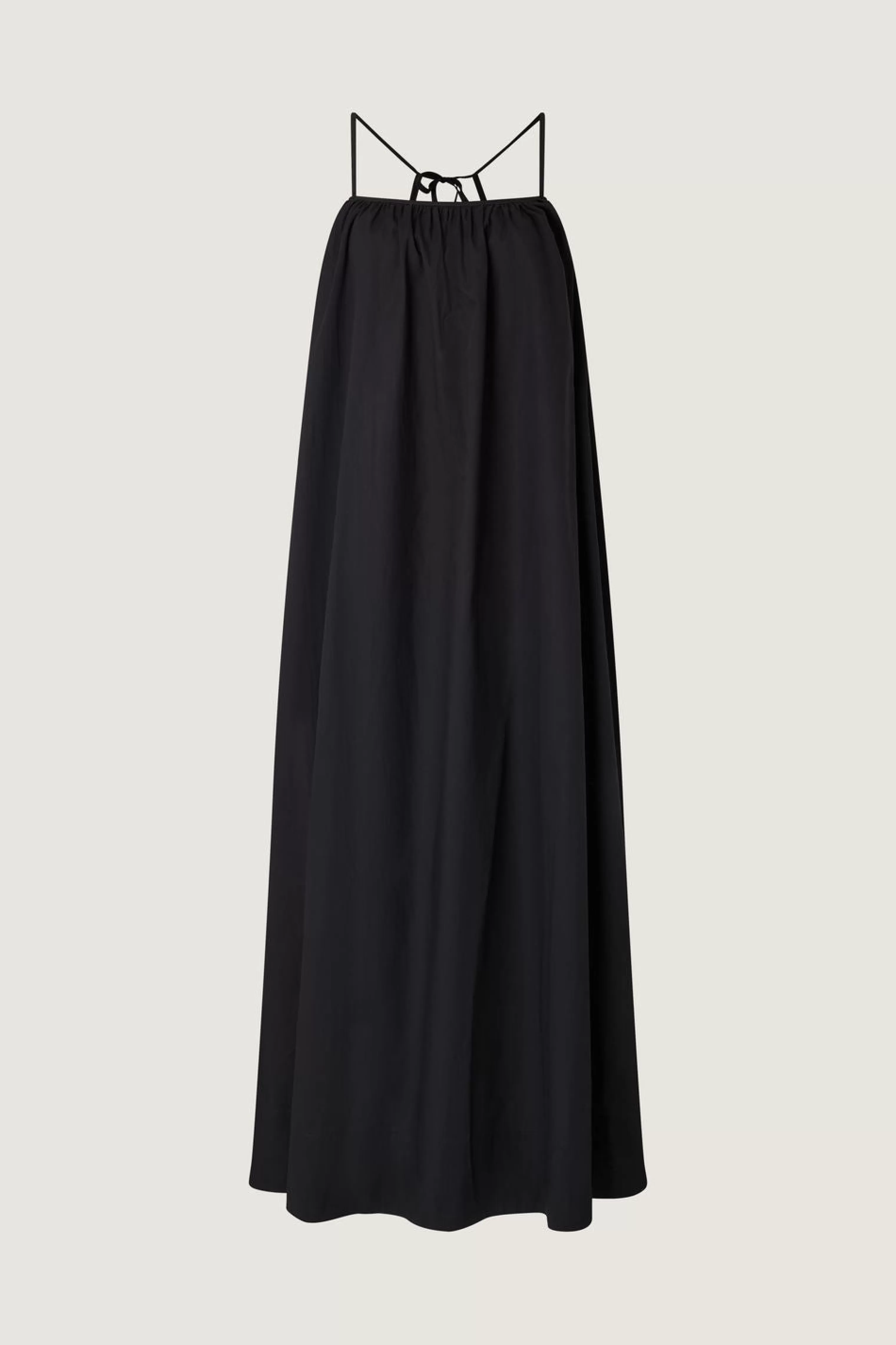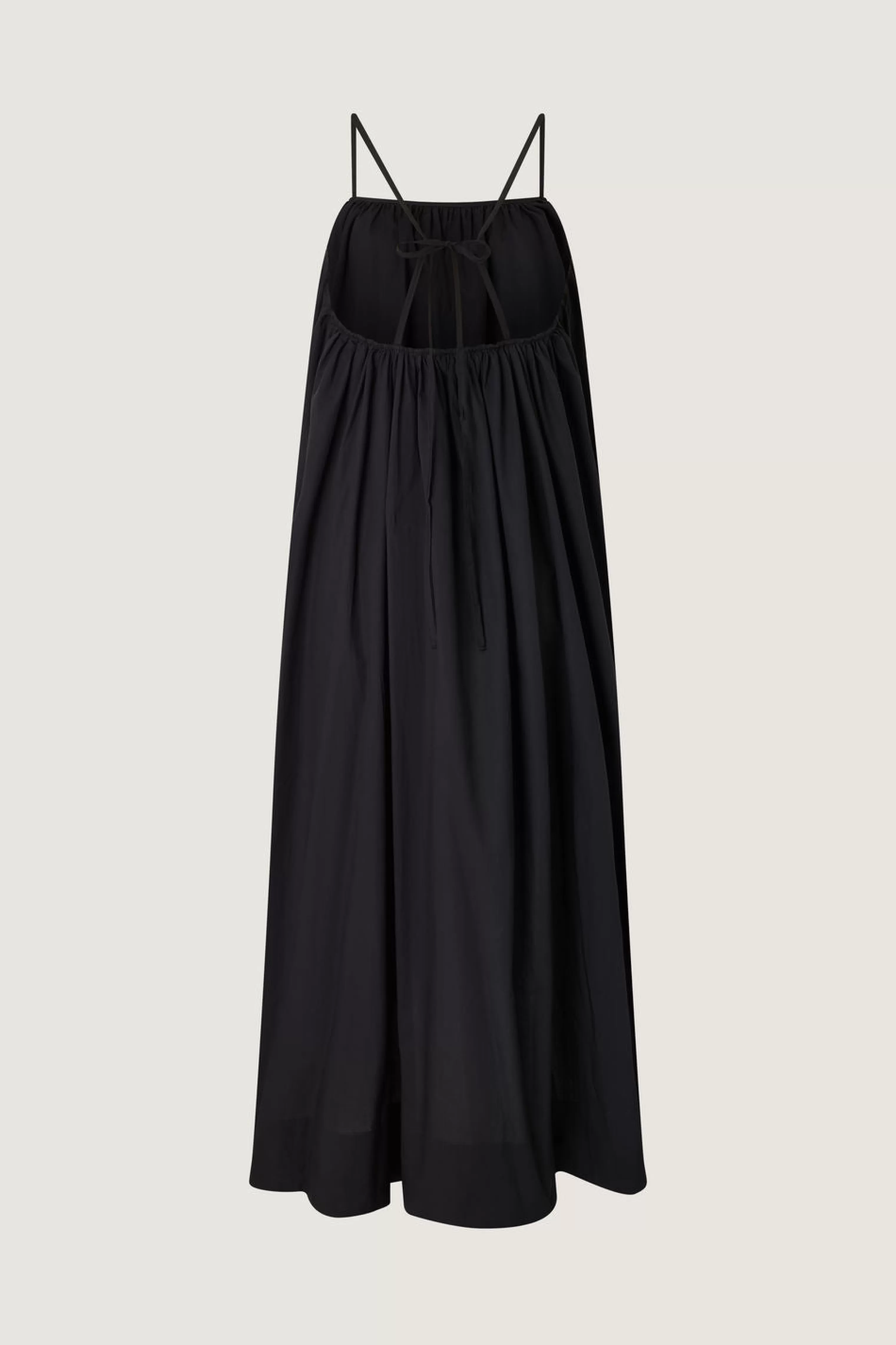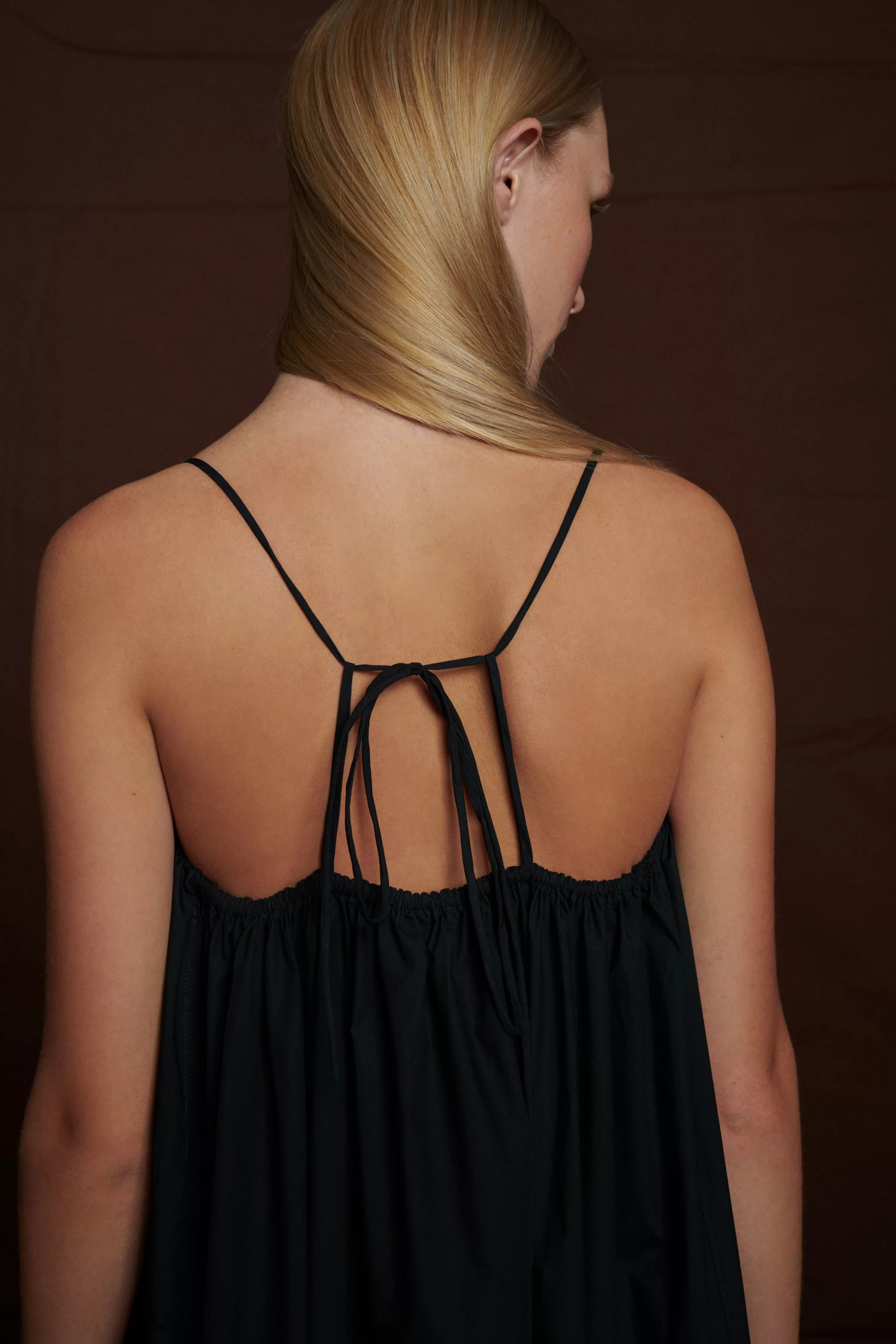 Robe en popeline légère noire à bretelles croisées dans le dos