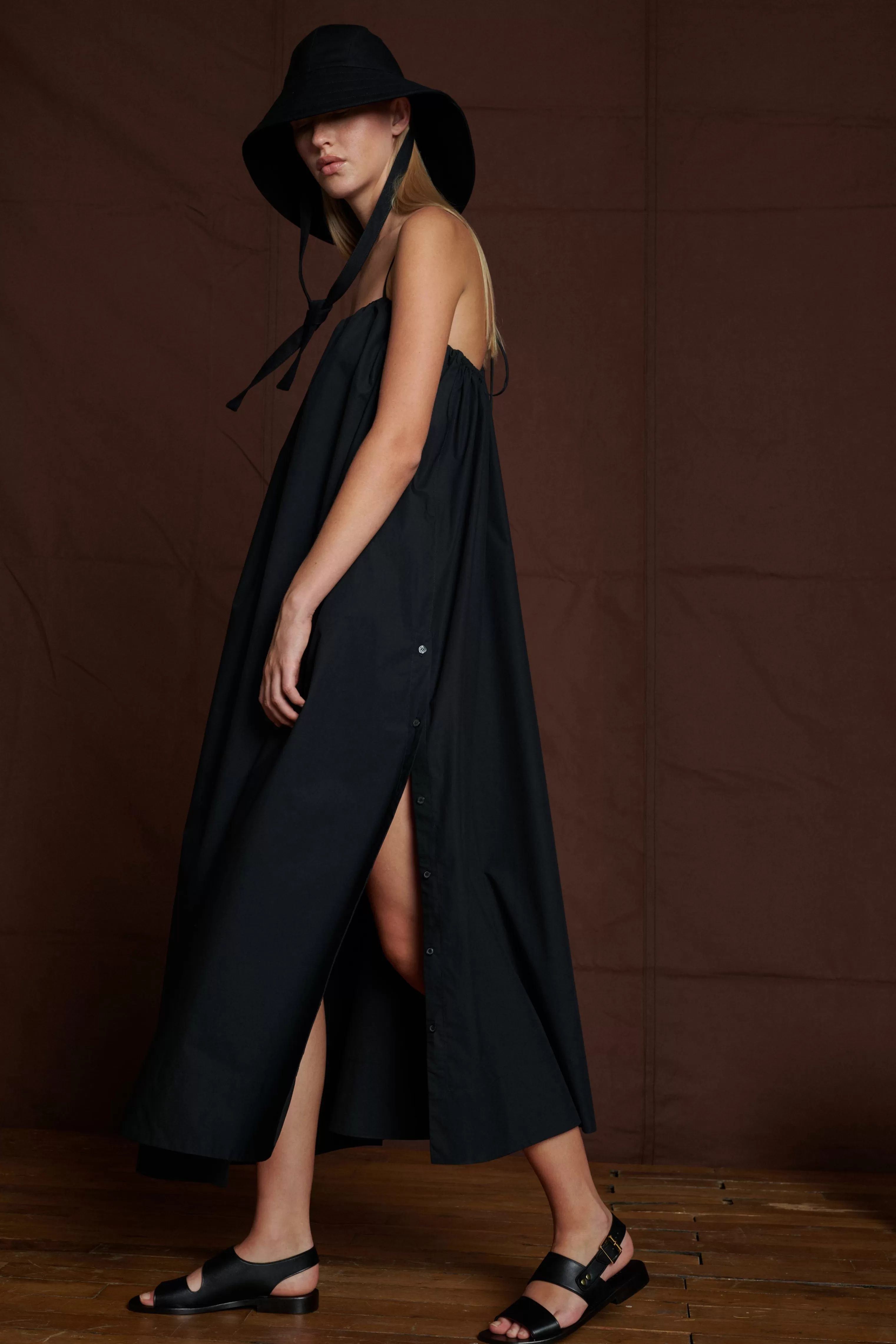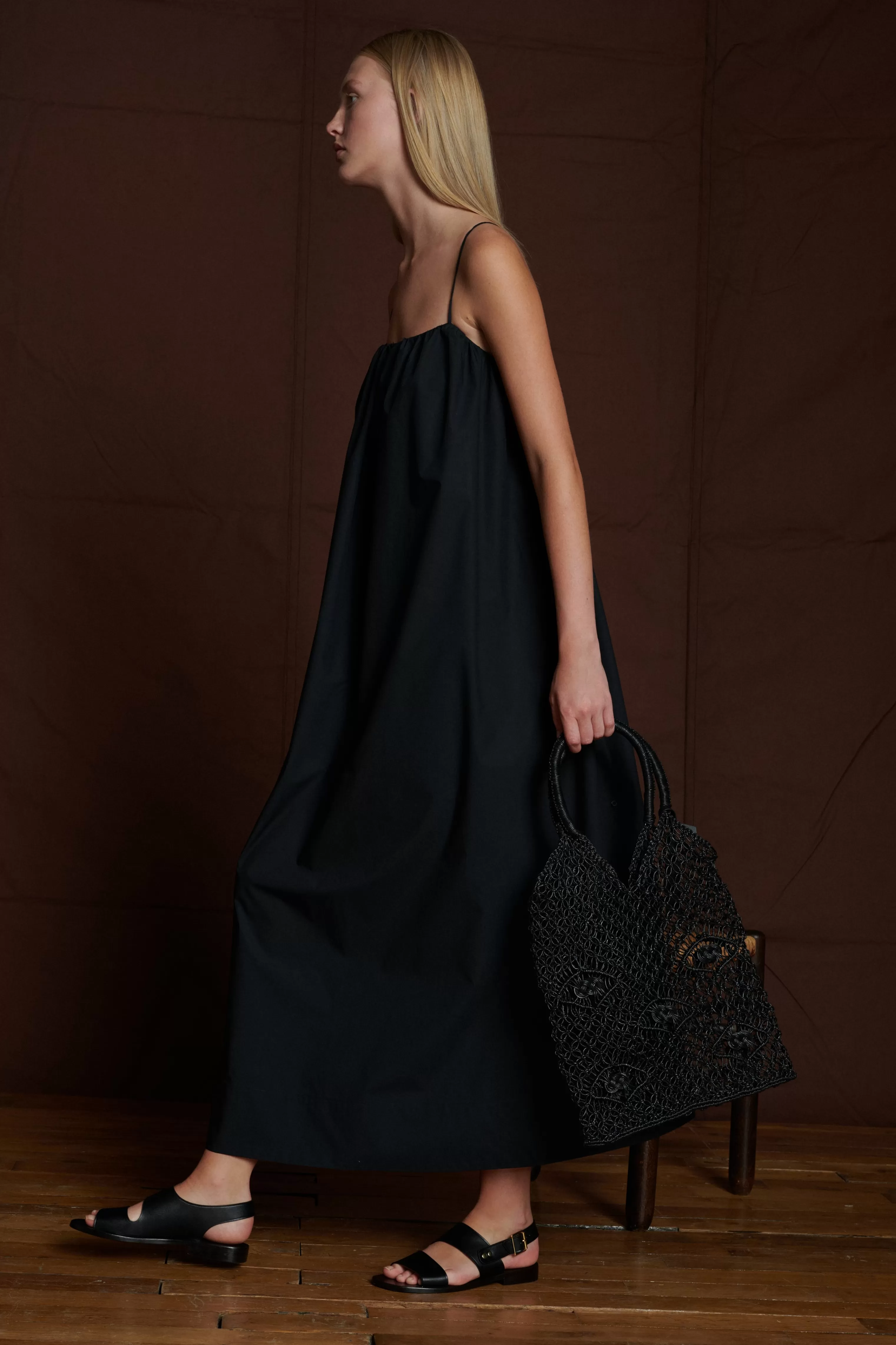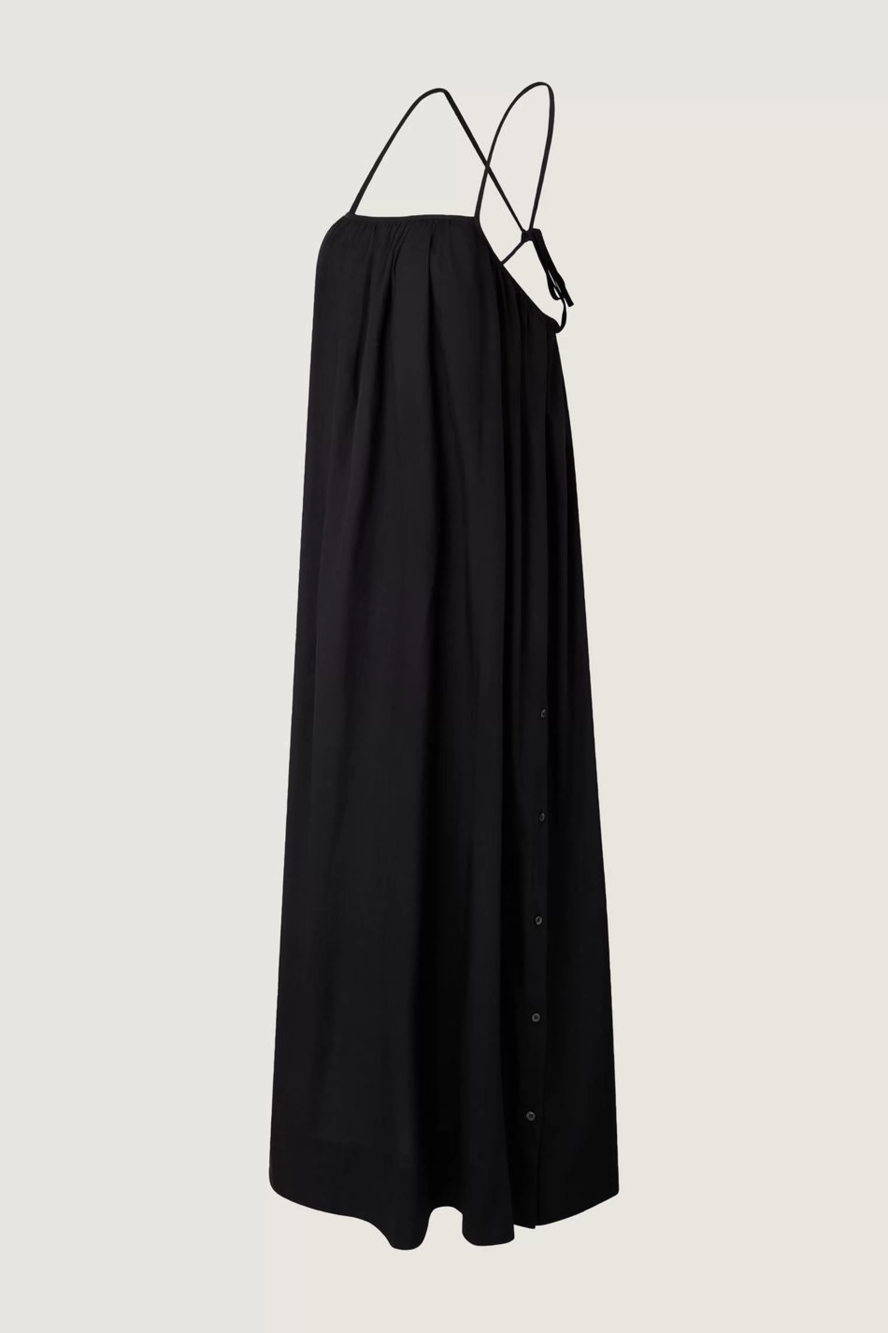 Robe en popeline légère noire à bretelles croisées dans le dos