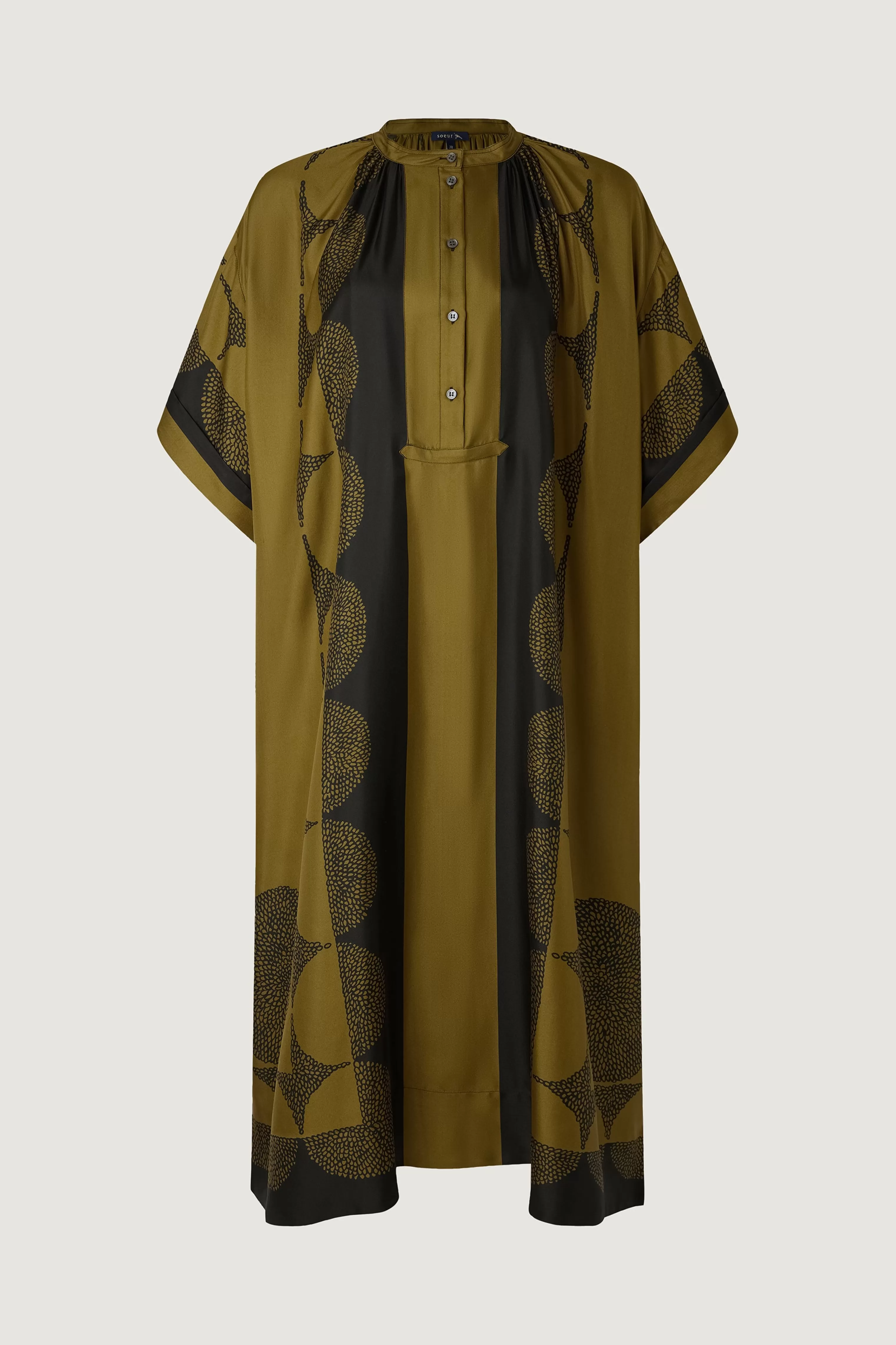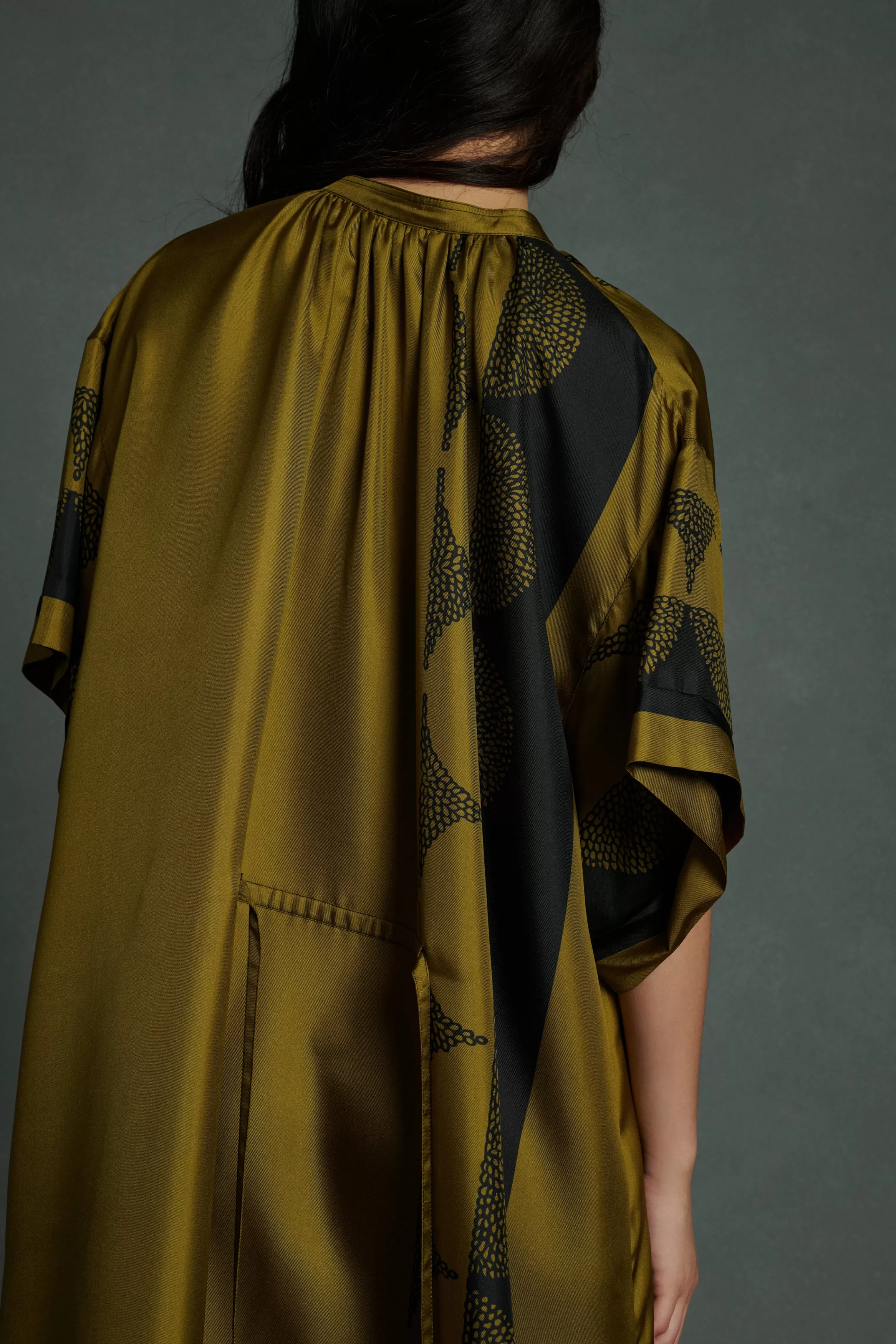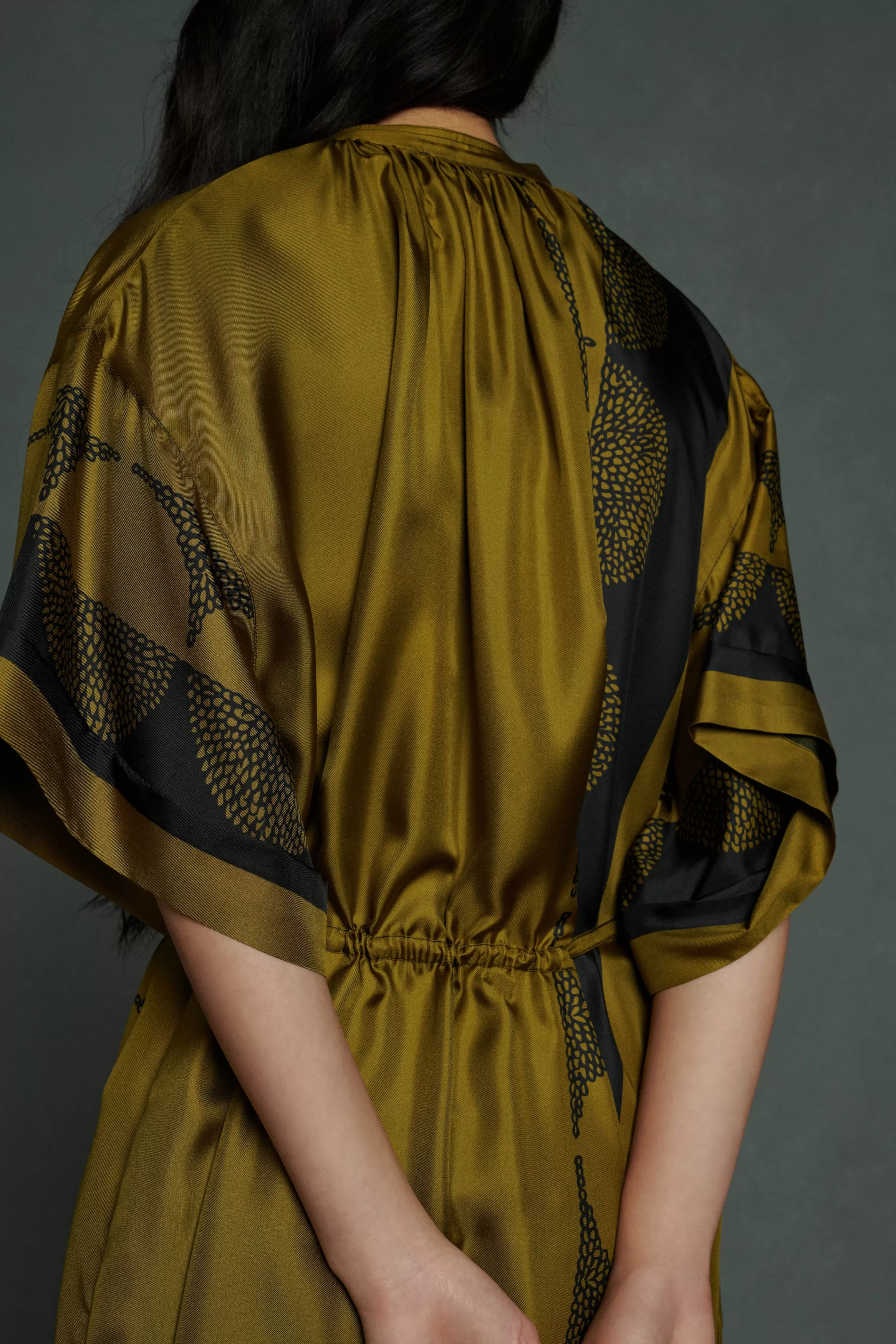 Robe longue à manches courtes en twill de soie imprimé « Pochoir »