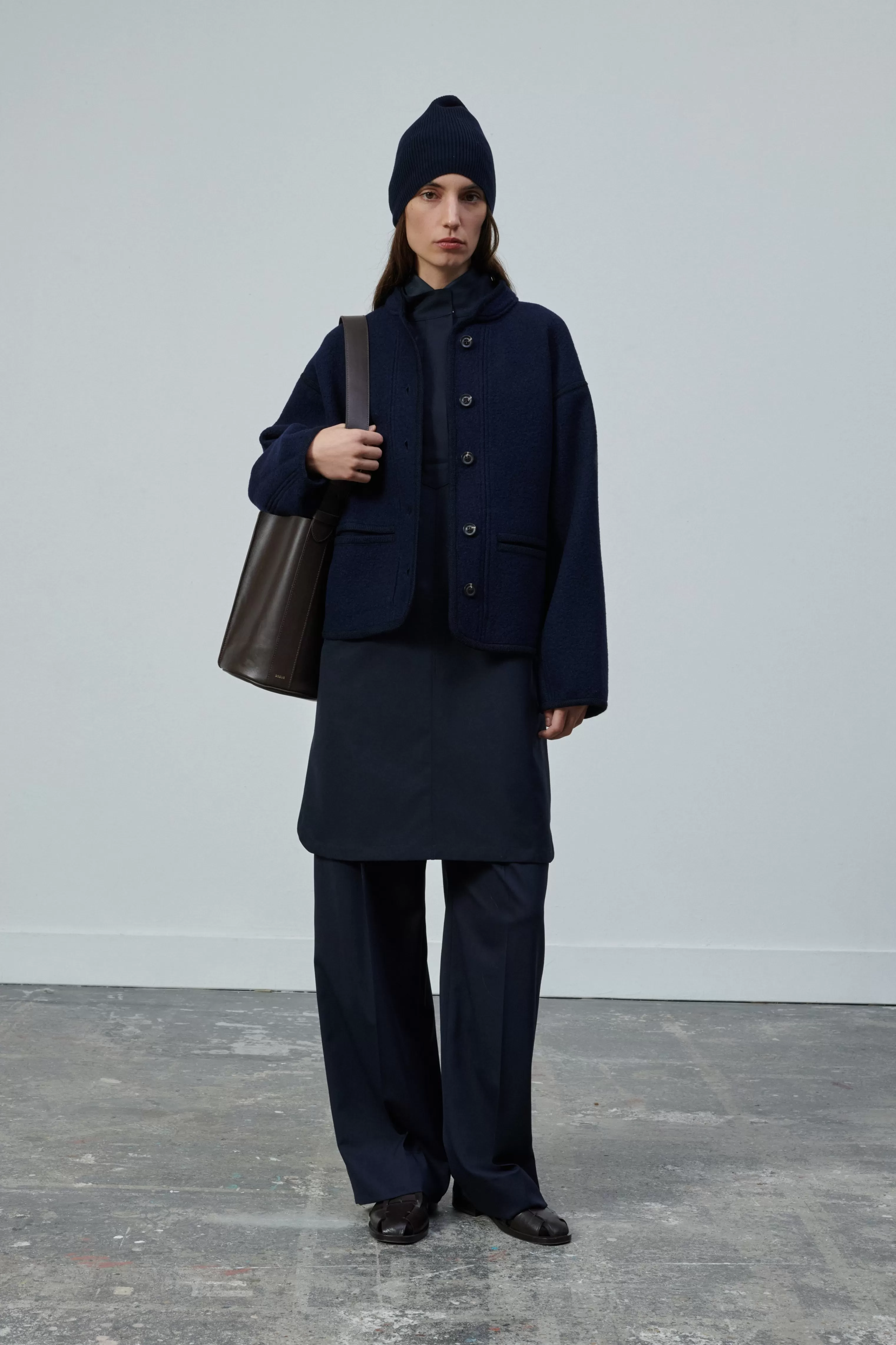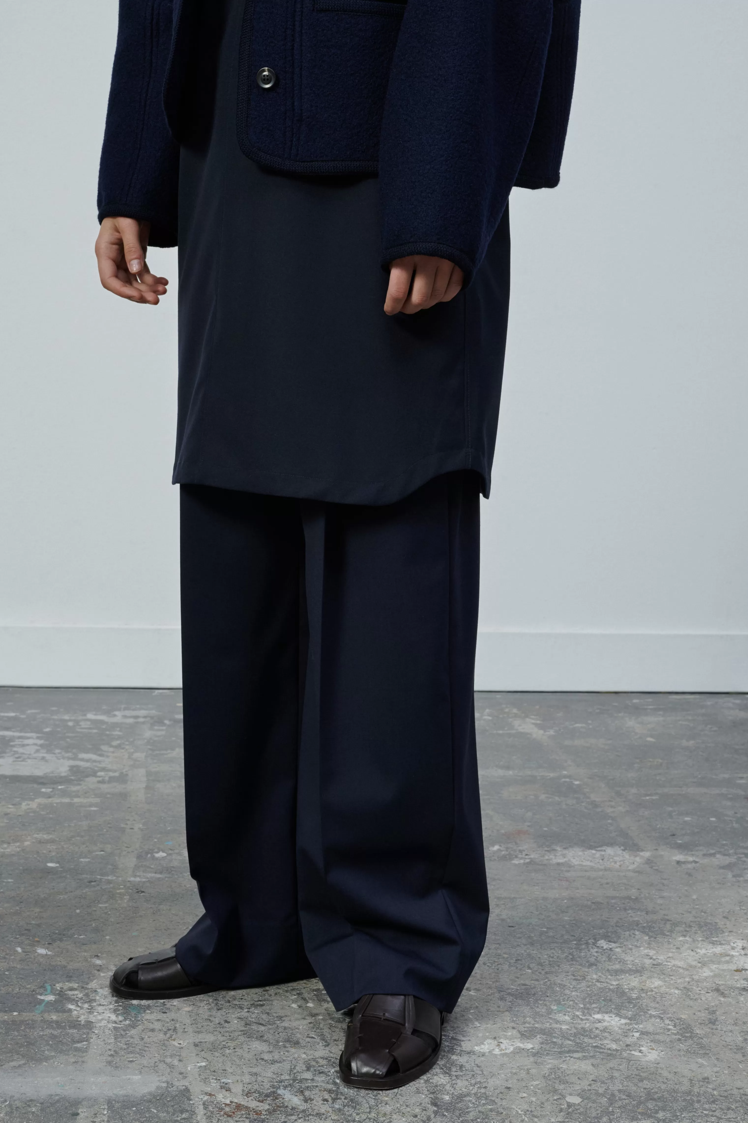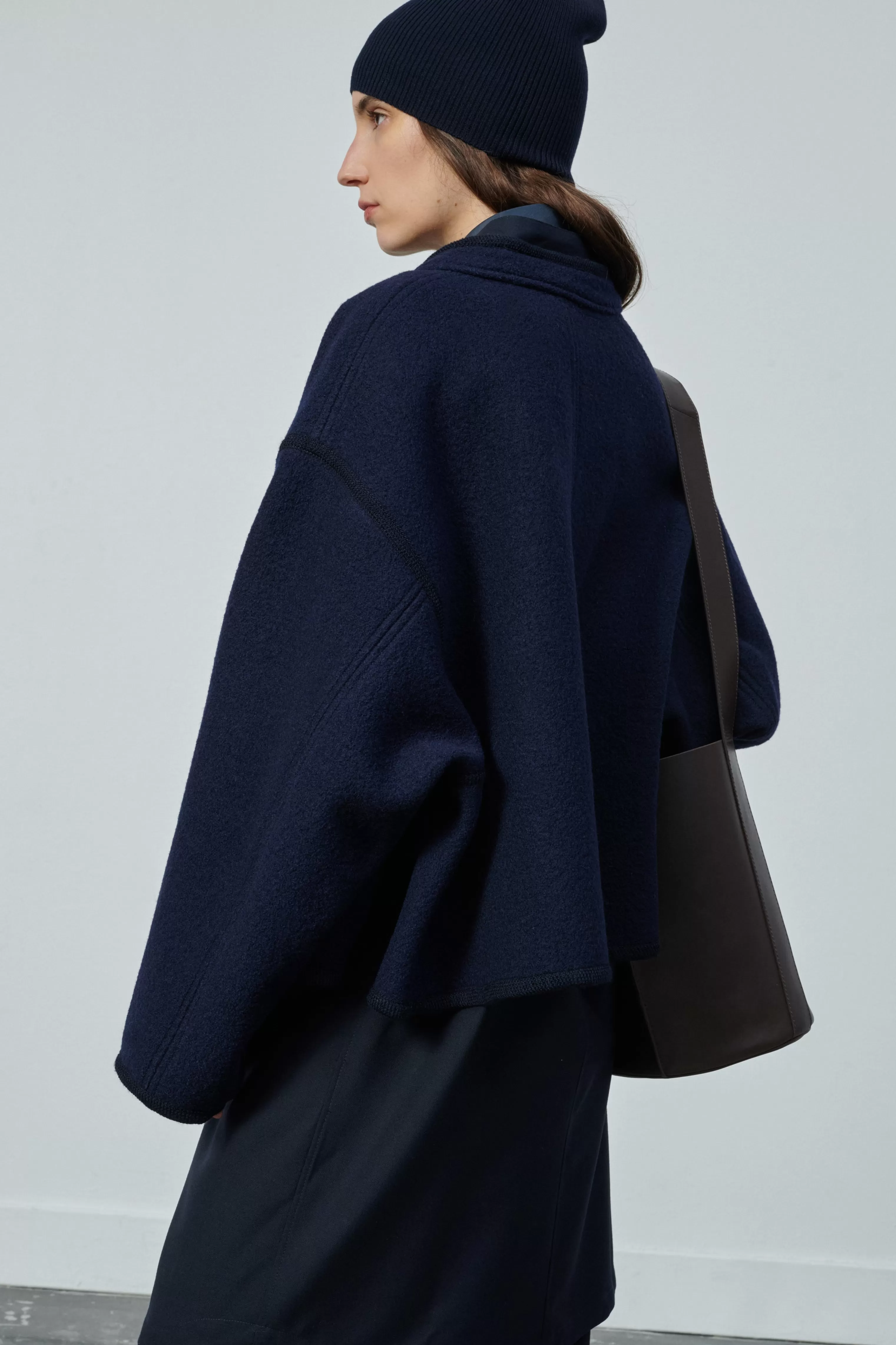 Notre toile de laine est iconique du vestiaire S艙ur. C’est un lainage souple, dense et parfait pour maintenir les volumes tout en étant confortable. Le polyester permet d’éviter le froissage, sa tenue est impeccable et le tissu facile d’entretien.