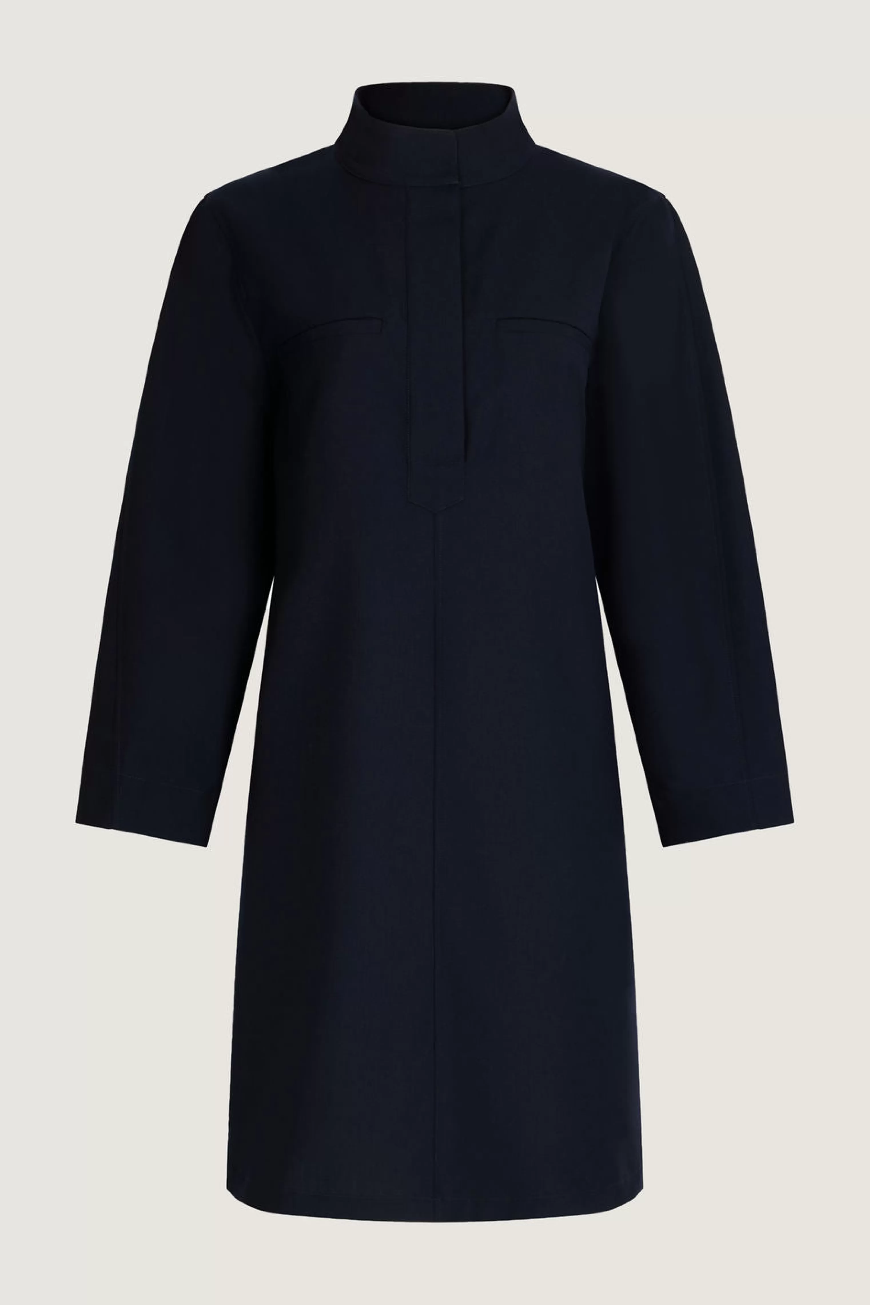Robe en toile de laine – Coupe droite– Patte de boutonnage cachée– Poches passepoilées– Manches arrondies Cette pièce est certifiée OEKO-TEX Standard 100.
