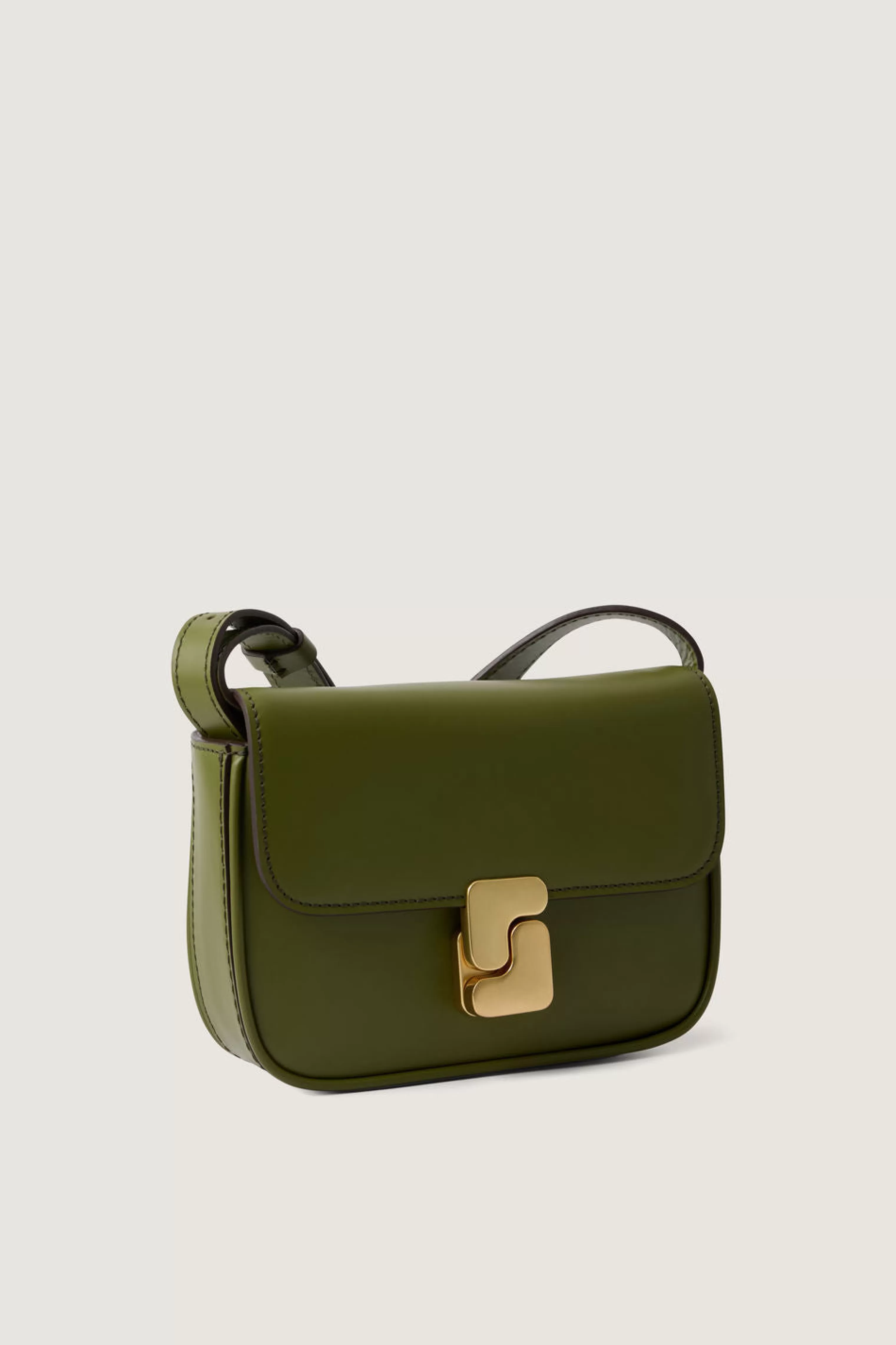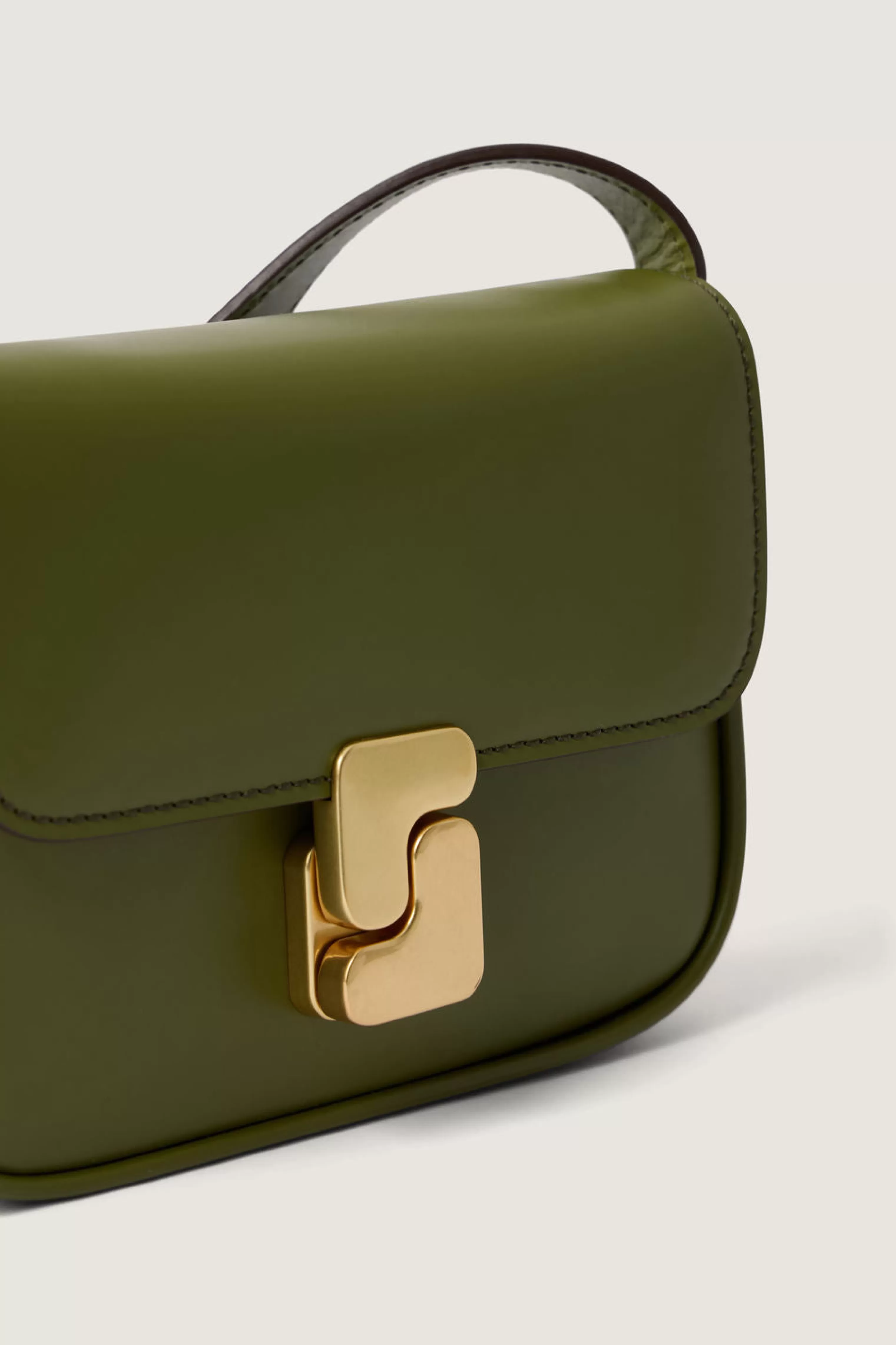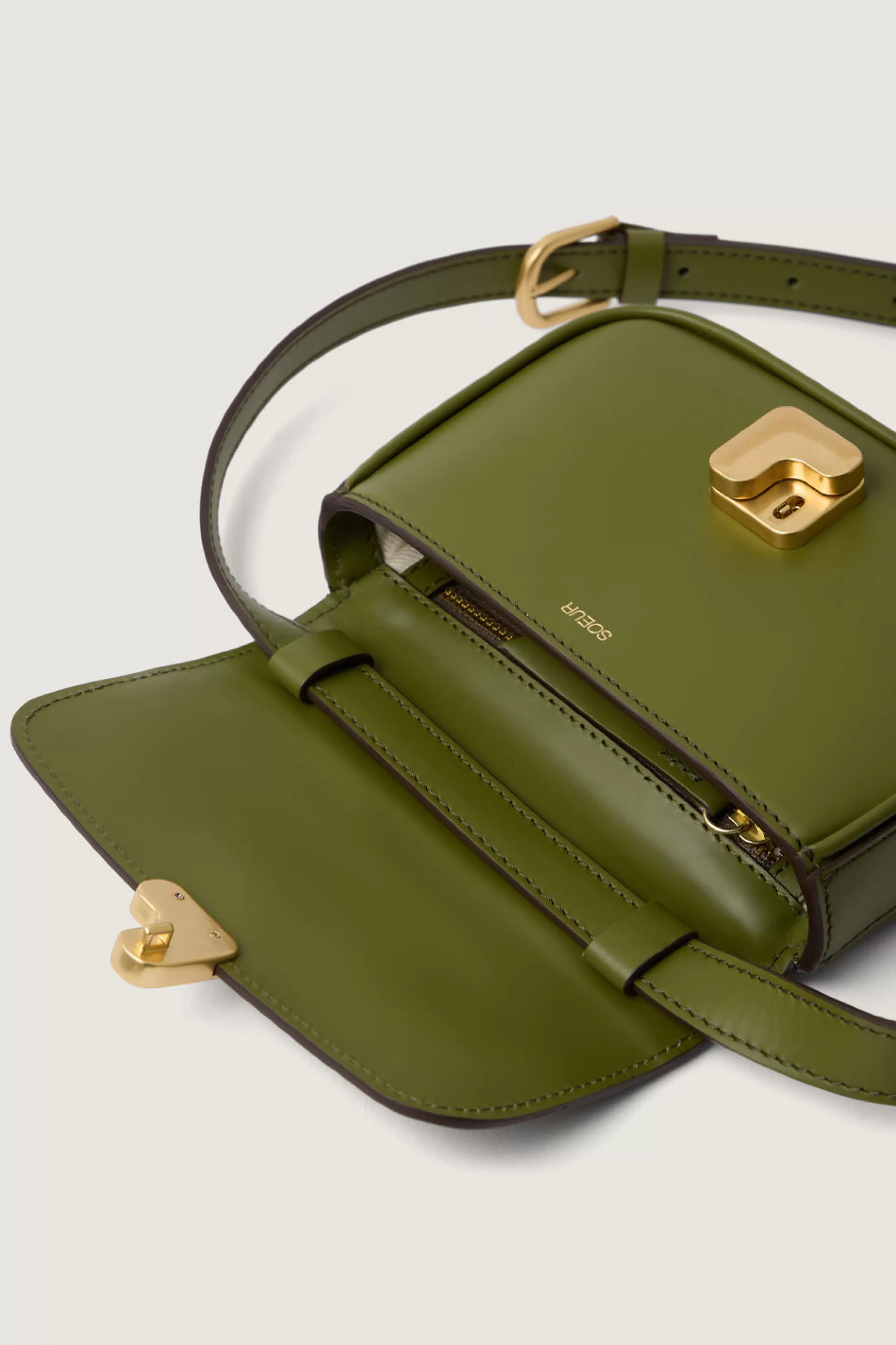 – Grand rabat devant avec fermoir monogramme « S » doré