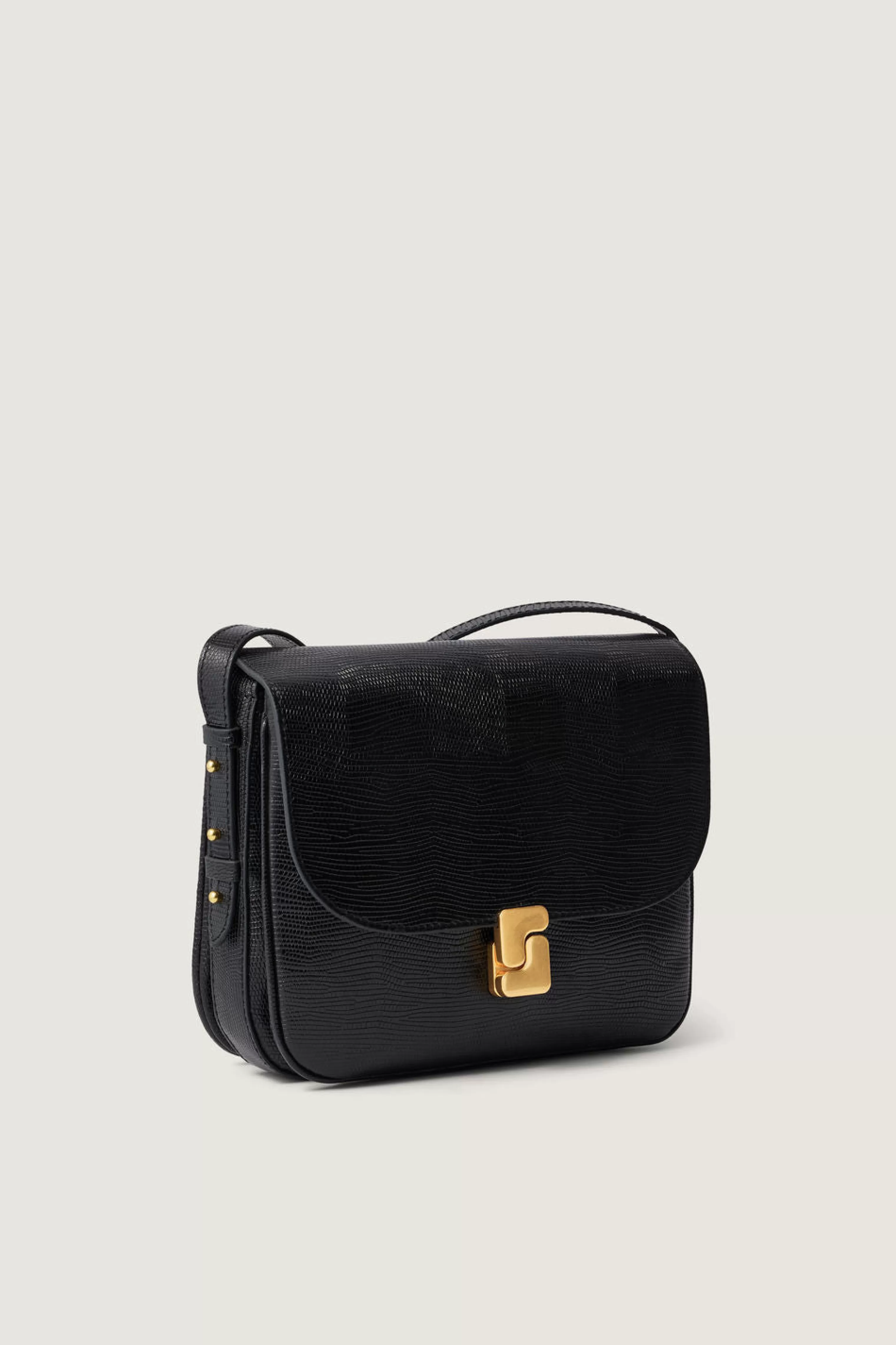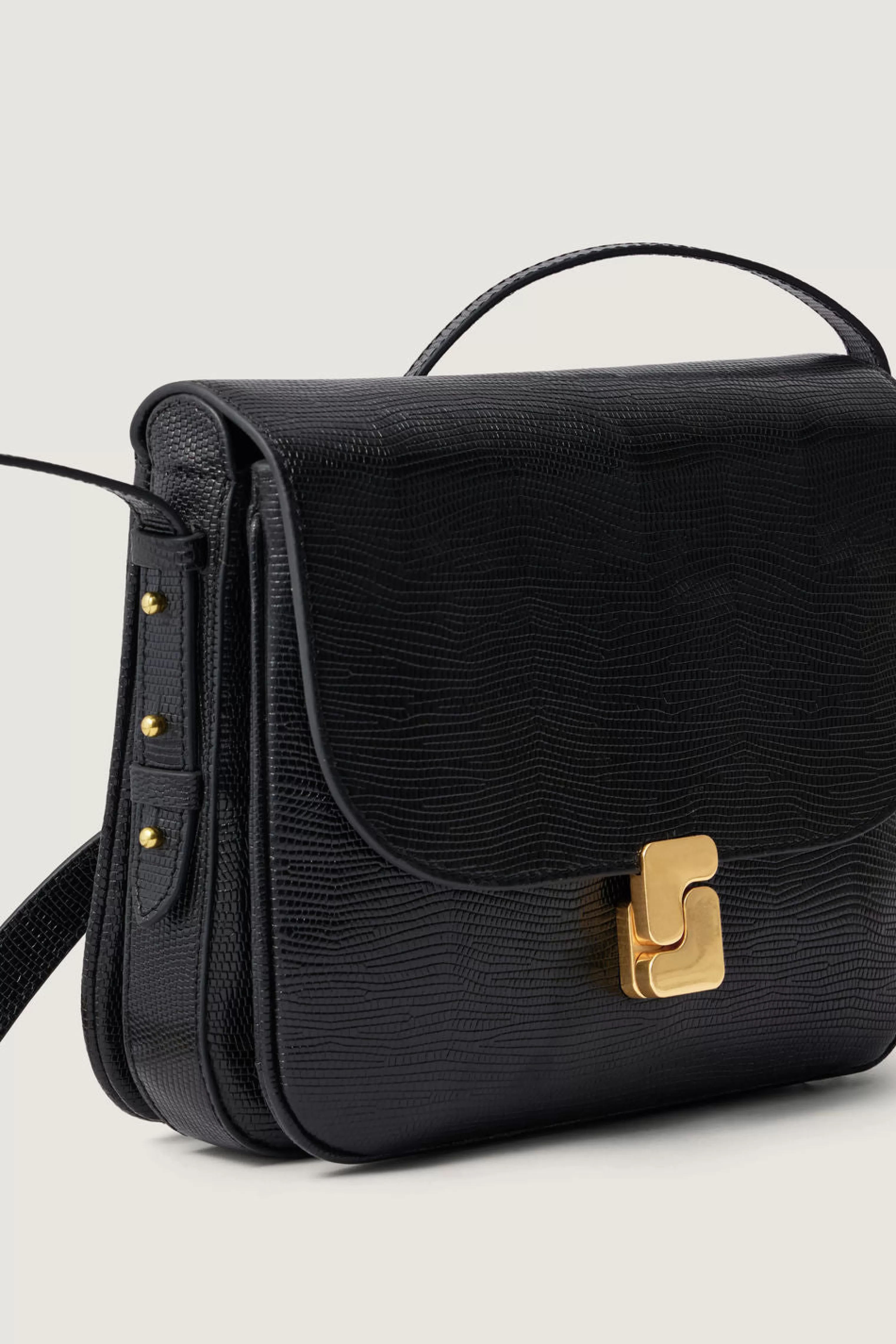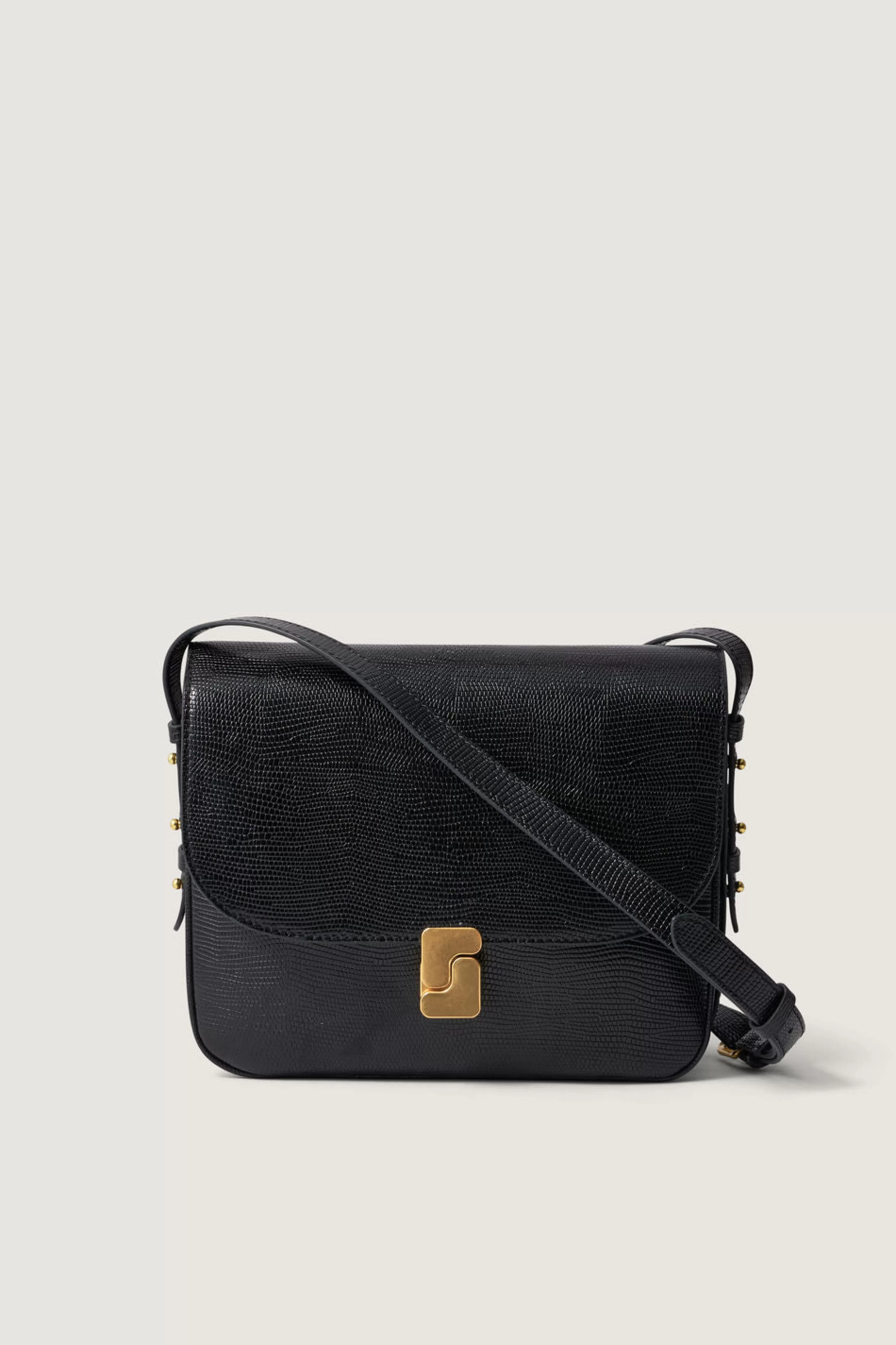Sac en cuir embossé effet lézard noir