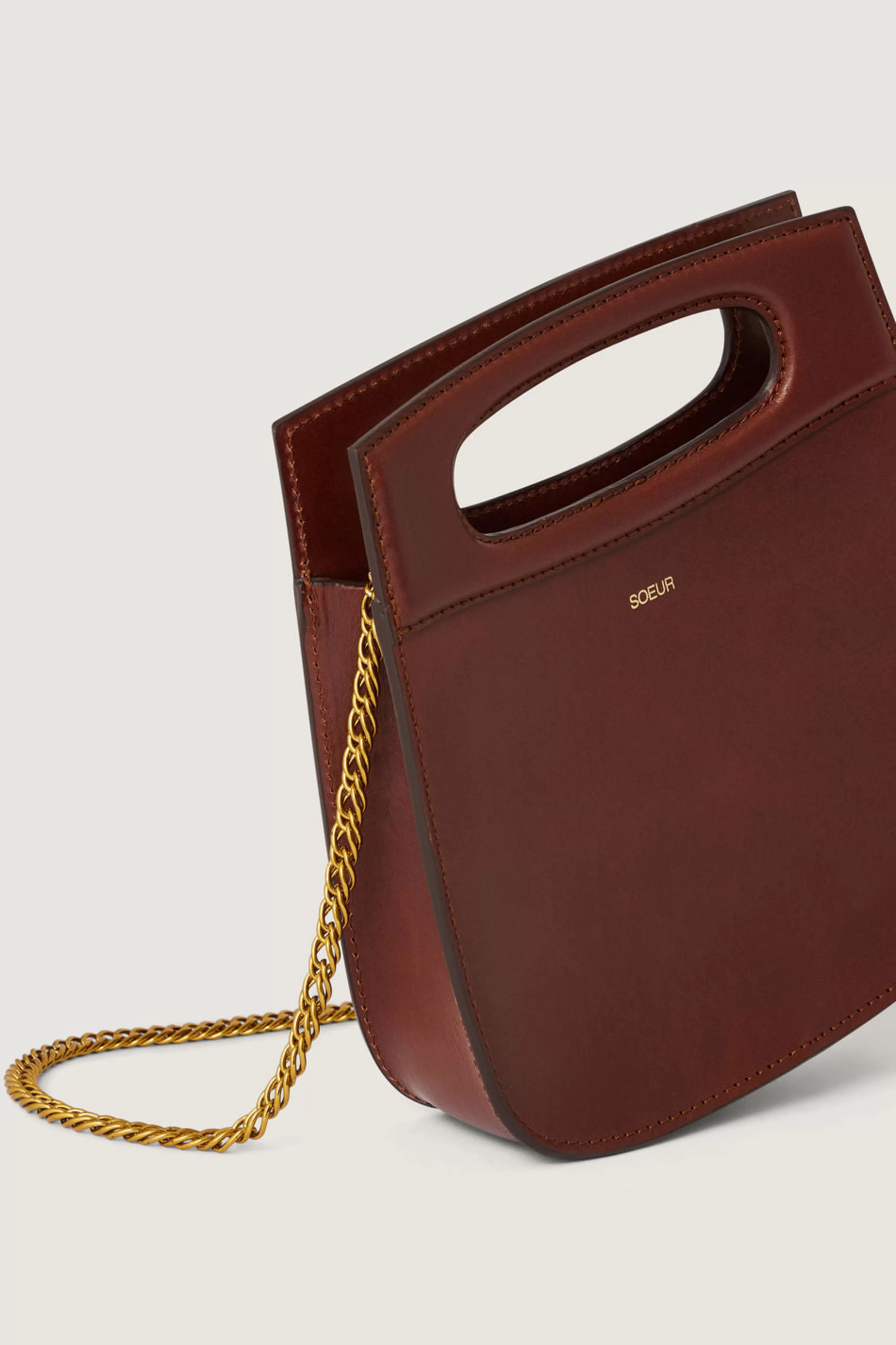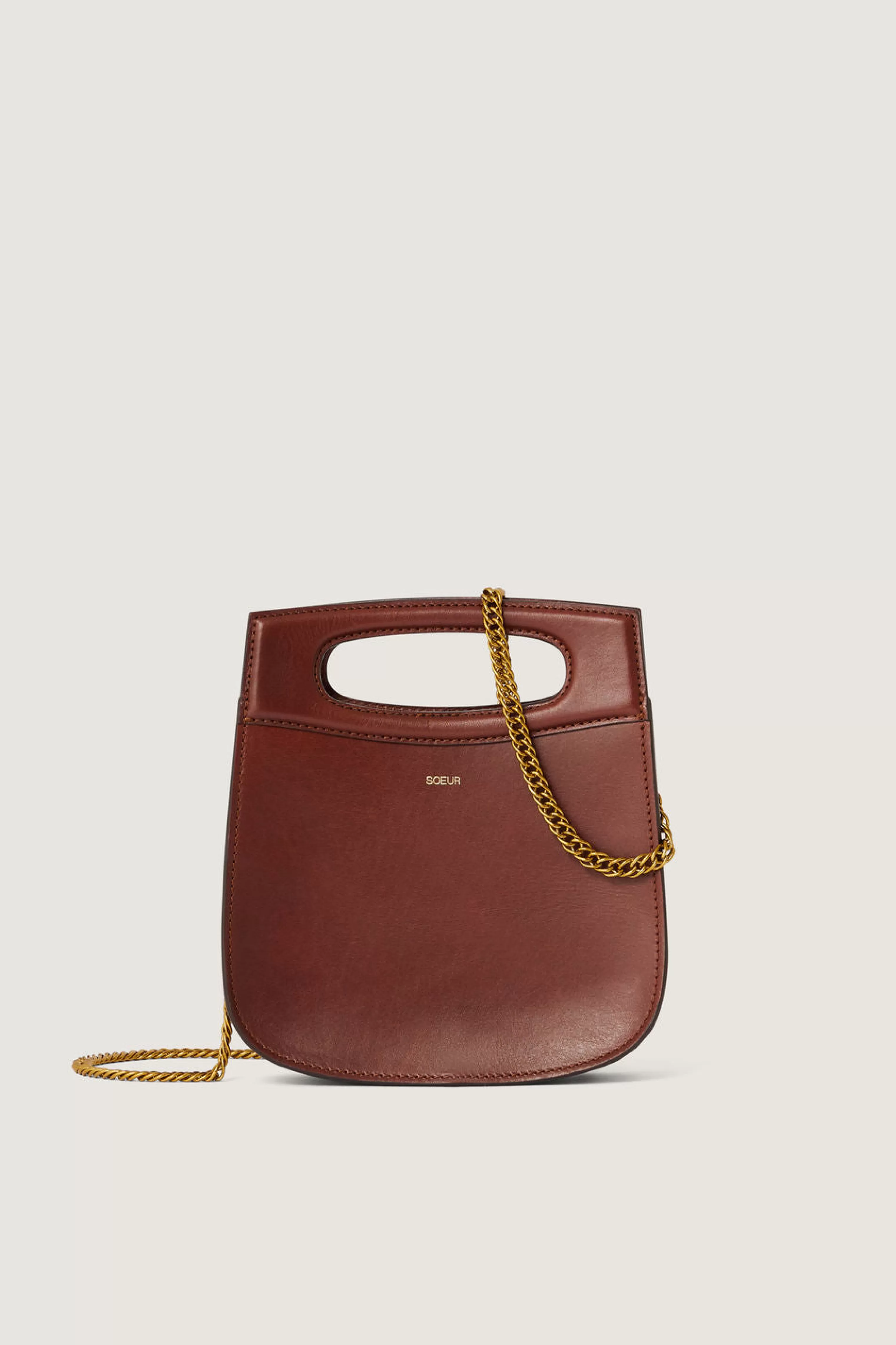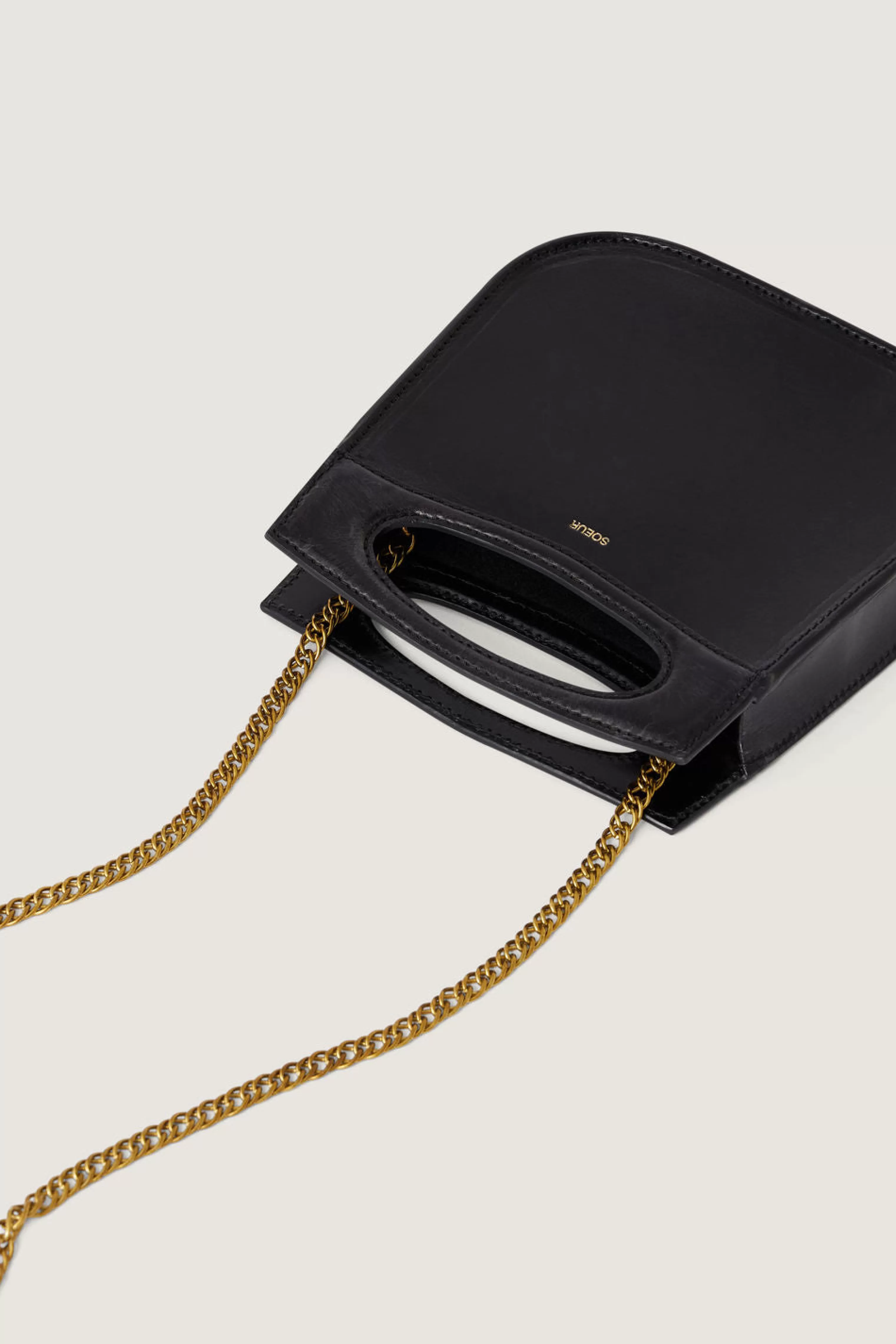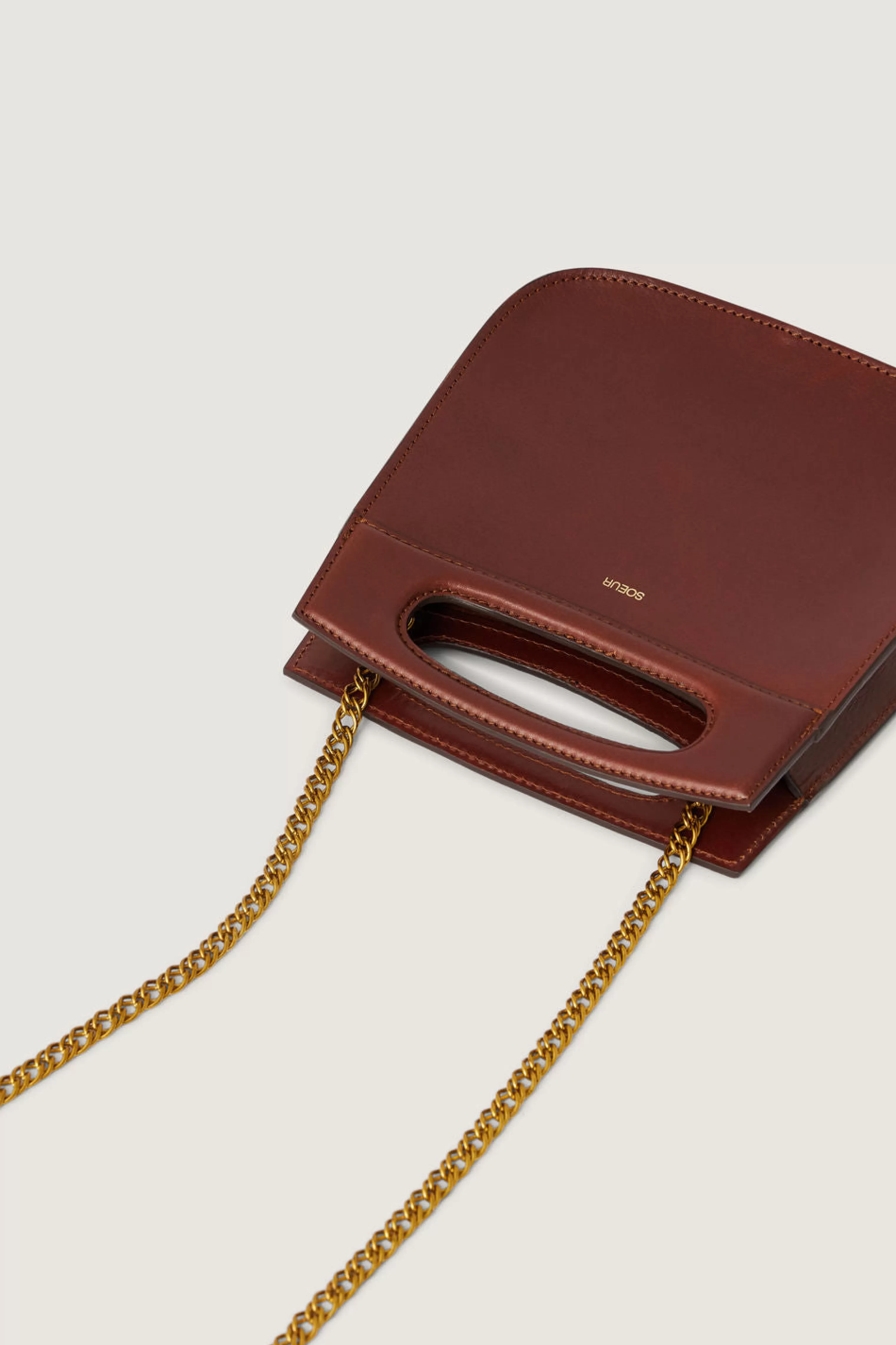Description Sac en cuir glacé cognac – Sac porté main, épaule ou croisé- Anse en chaîne dorée- Hauteur 19cm, largeur 17cm, profondeur 5cm- Longueur de anse : 113cm Référence : SEM0714CHERIMIN…