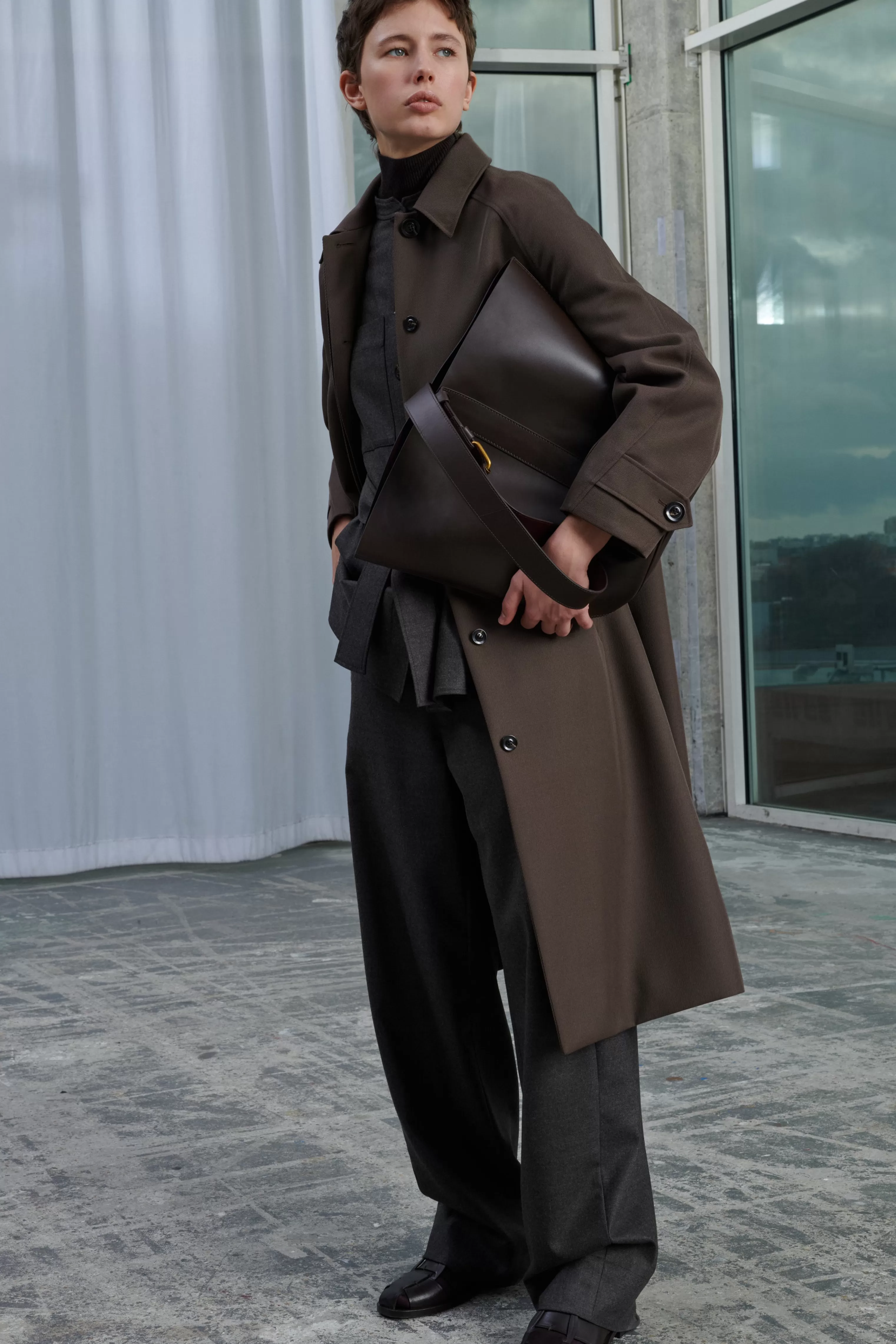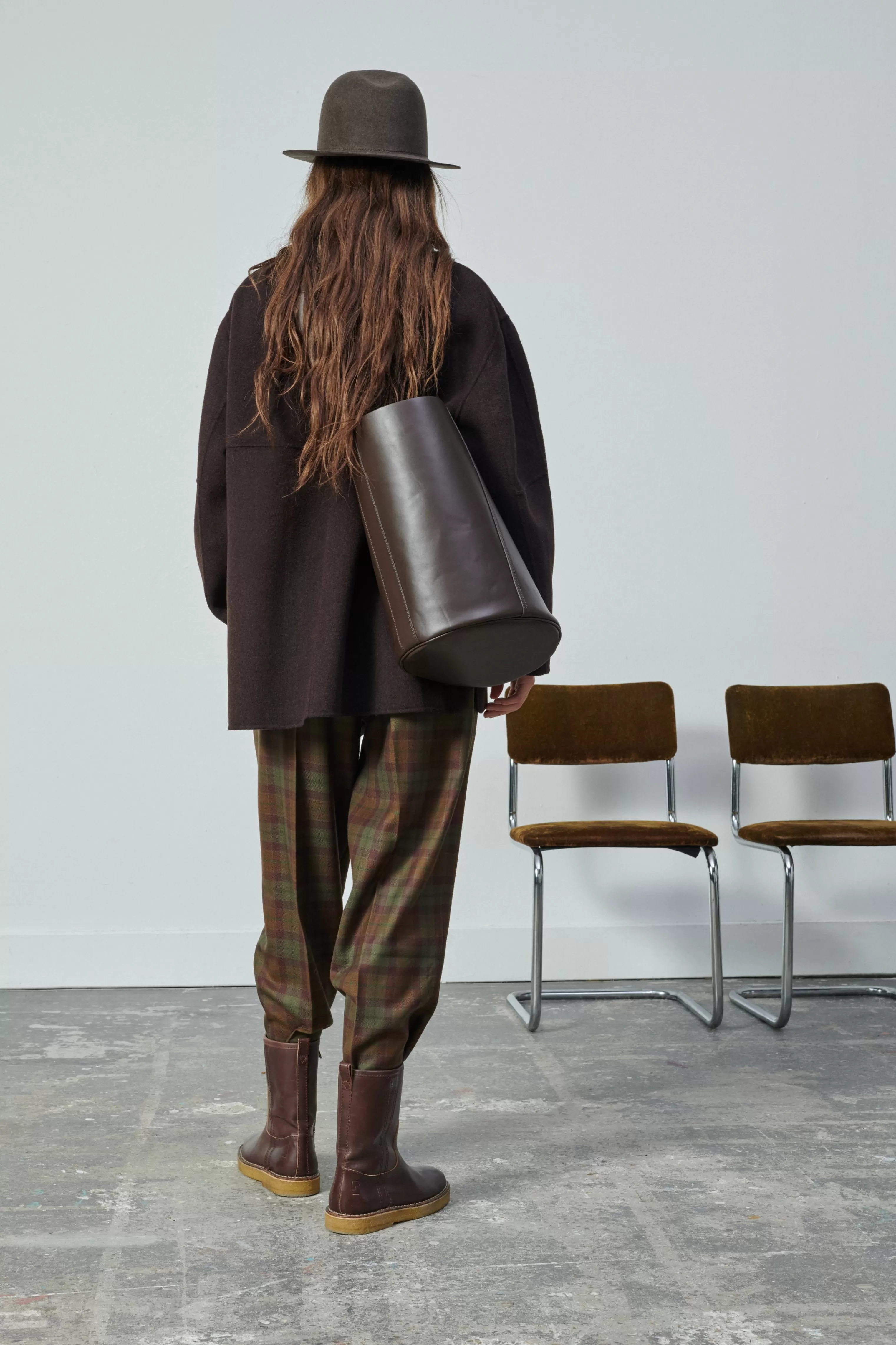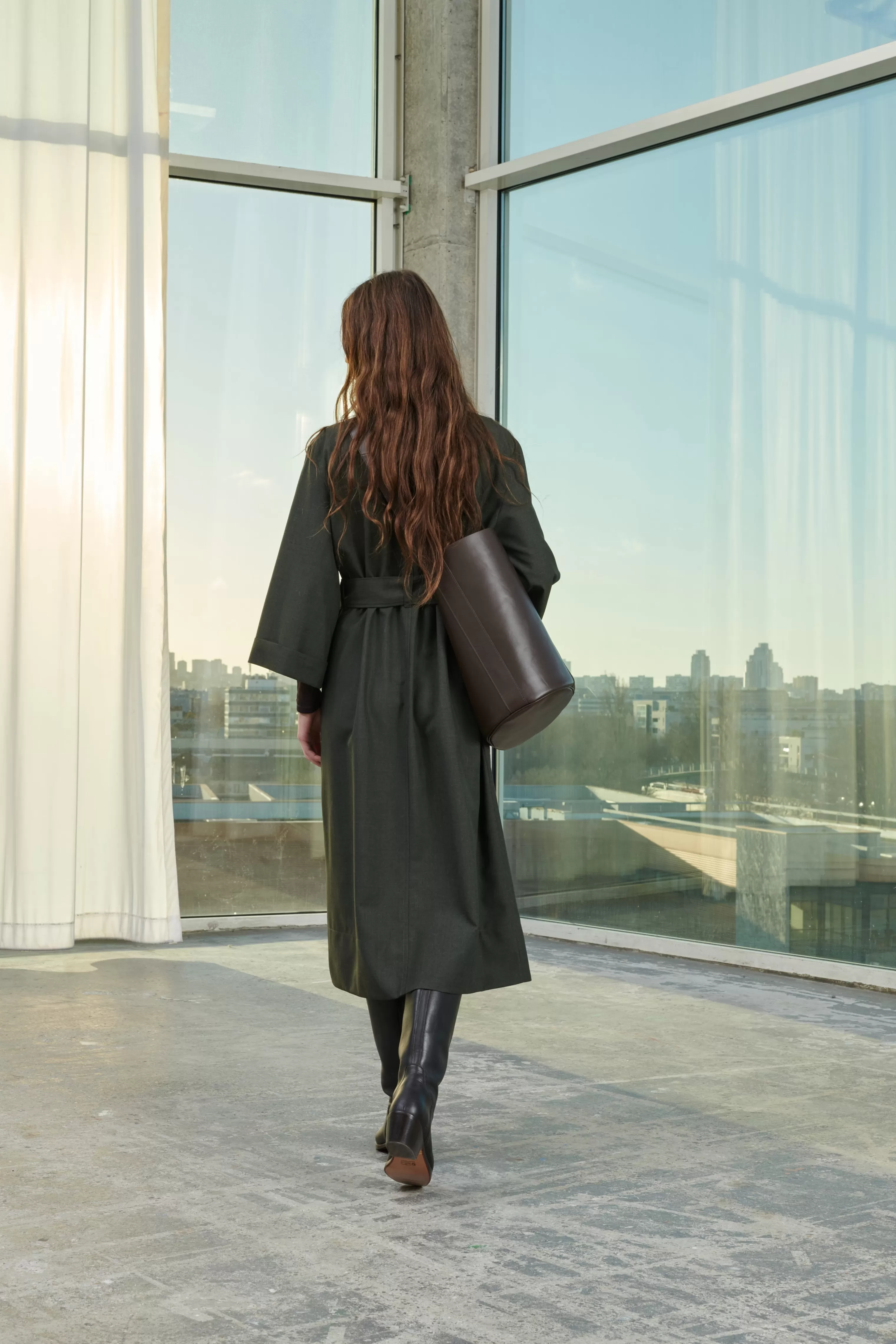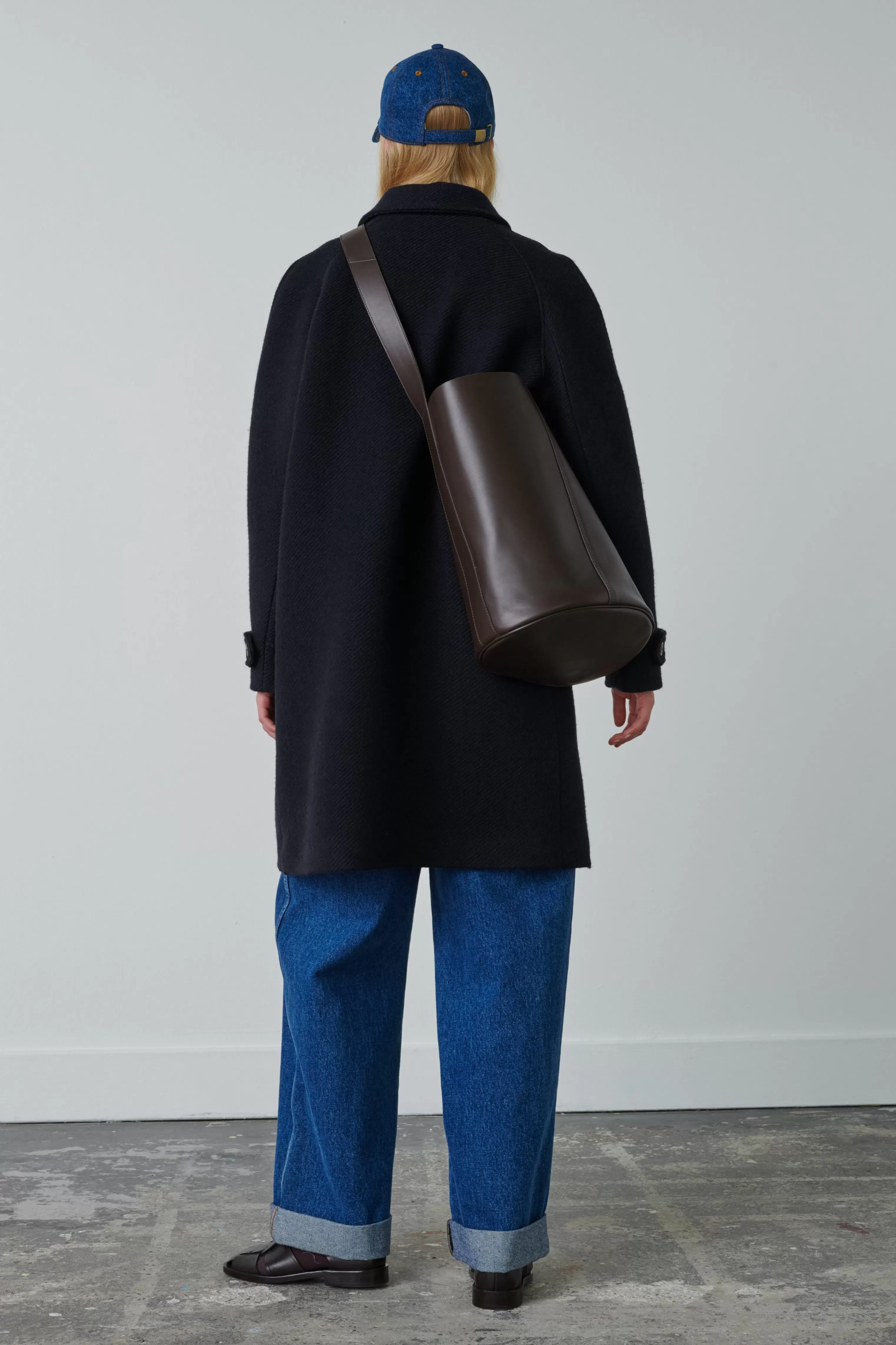 Grand sac seau en cuir souple charbon et prune – Sac seau en cuir bicolore, extérieur charbon et intérieur prune– Longueur de anse ajustable par une boucle en métal doré– Base ovale 27cm x 19cm– Hauteur 35cm, circonférence 94cm– Doublure cuir d’agneau– Métallerie dorée– Cuir LWG