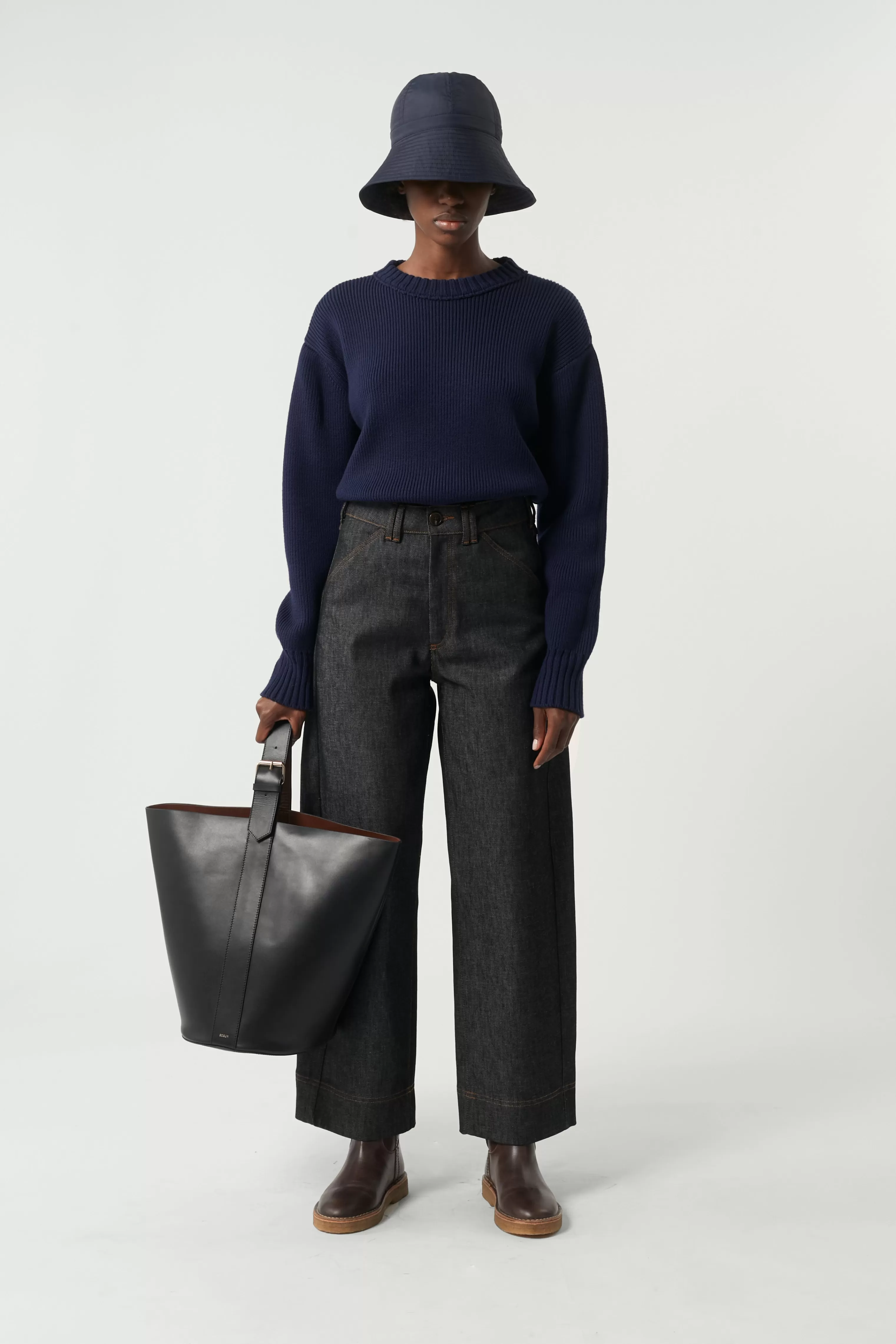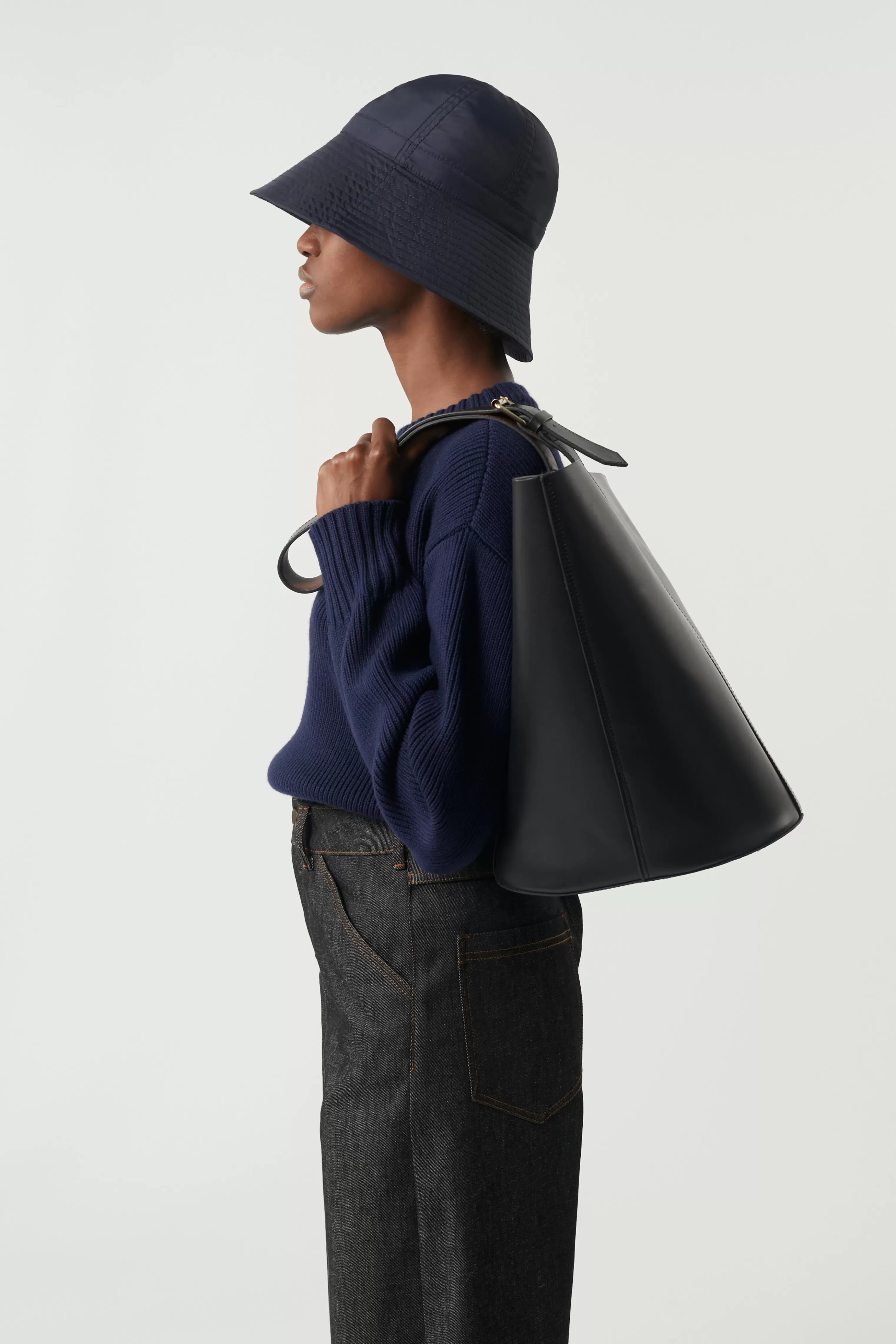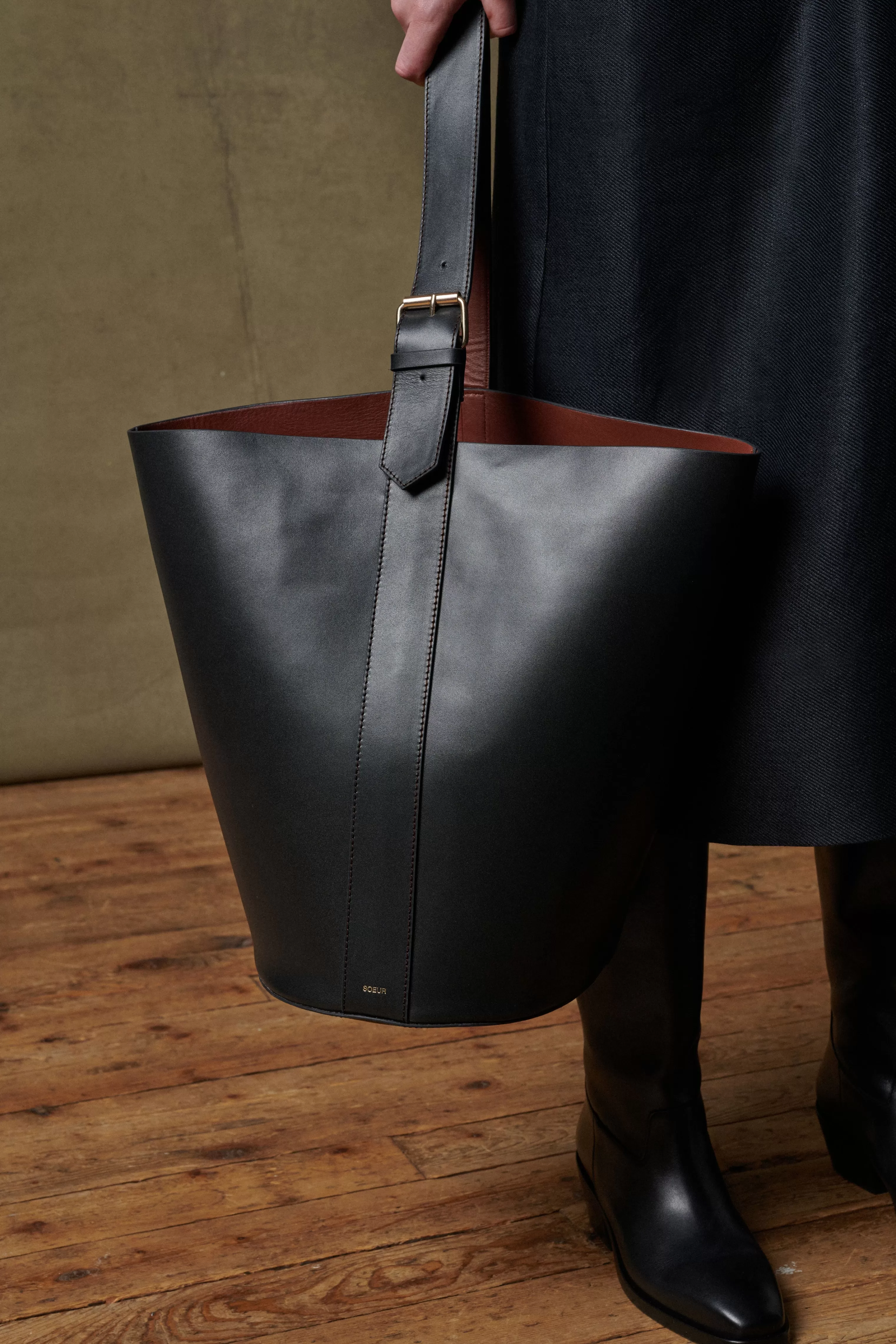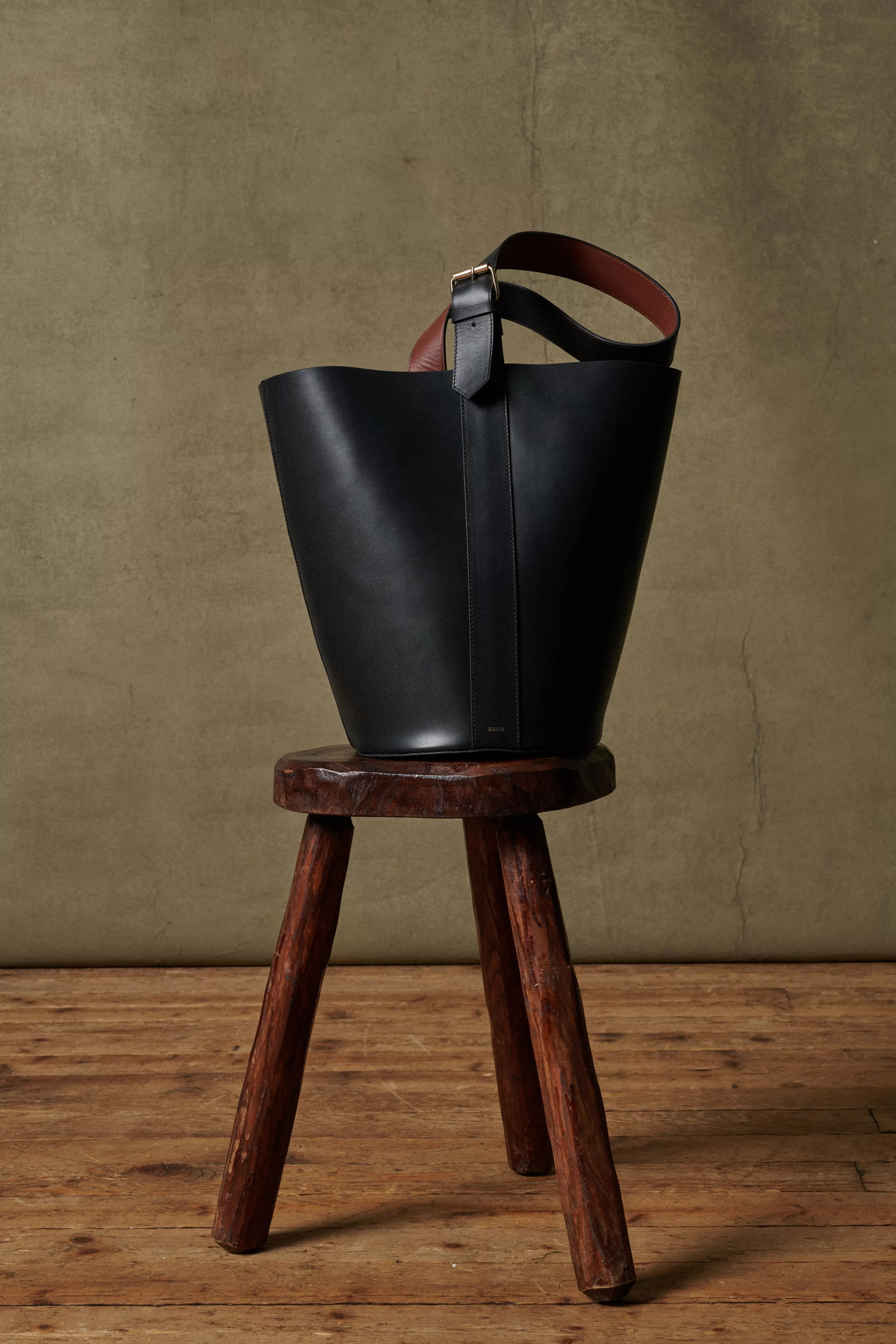 – Sac en cuir noir, intérieur en cuir coloris cognac