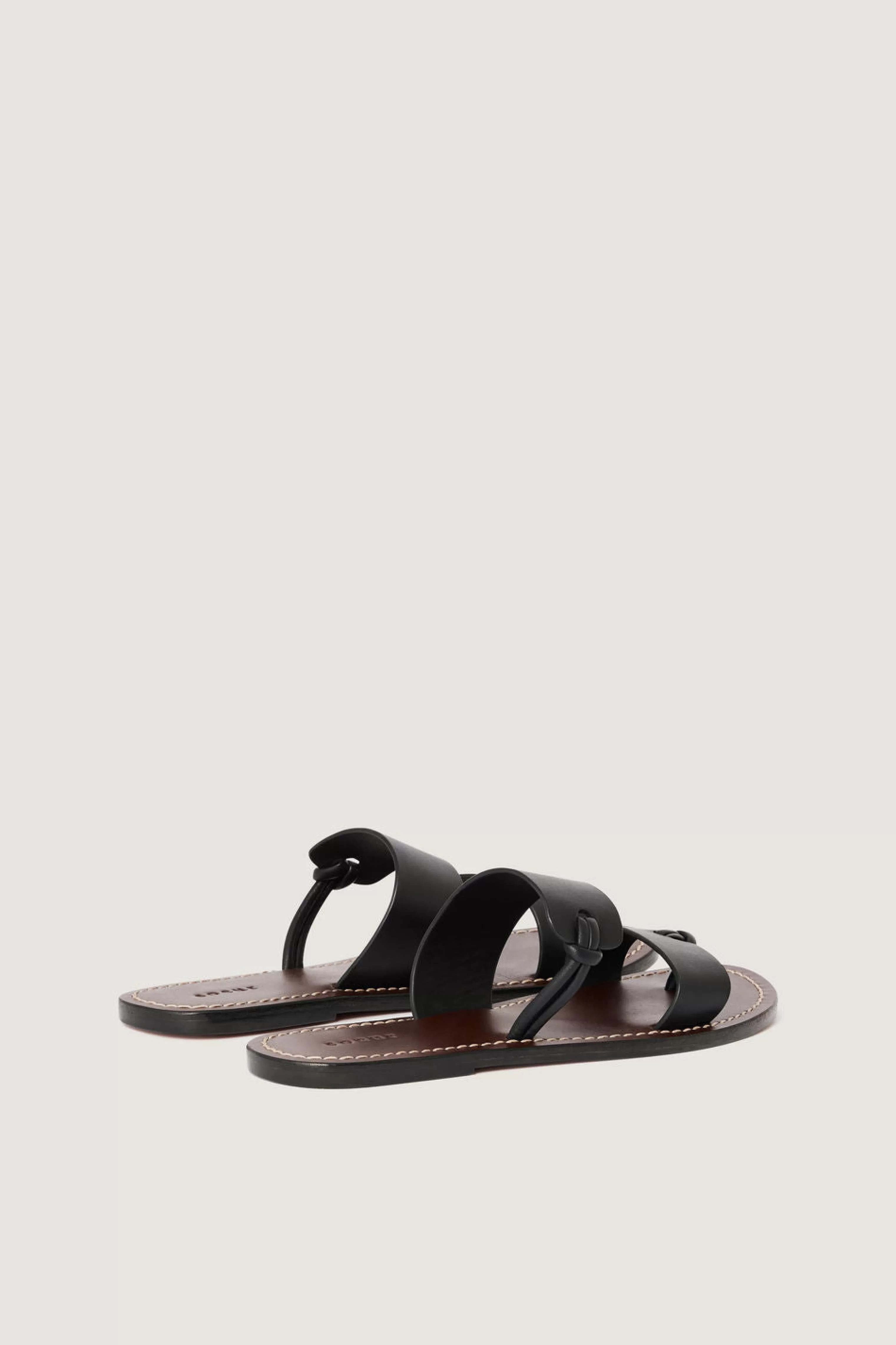Description Mules plates en cuir de vache noir- Larges brides – Liens en cuir noués sur les côtés et à l’entre-doigtsLe cuir est LWG.Référence : CHA1206UPTOWN23SNOI01 Fabrication 100% CUIR DE…