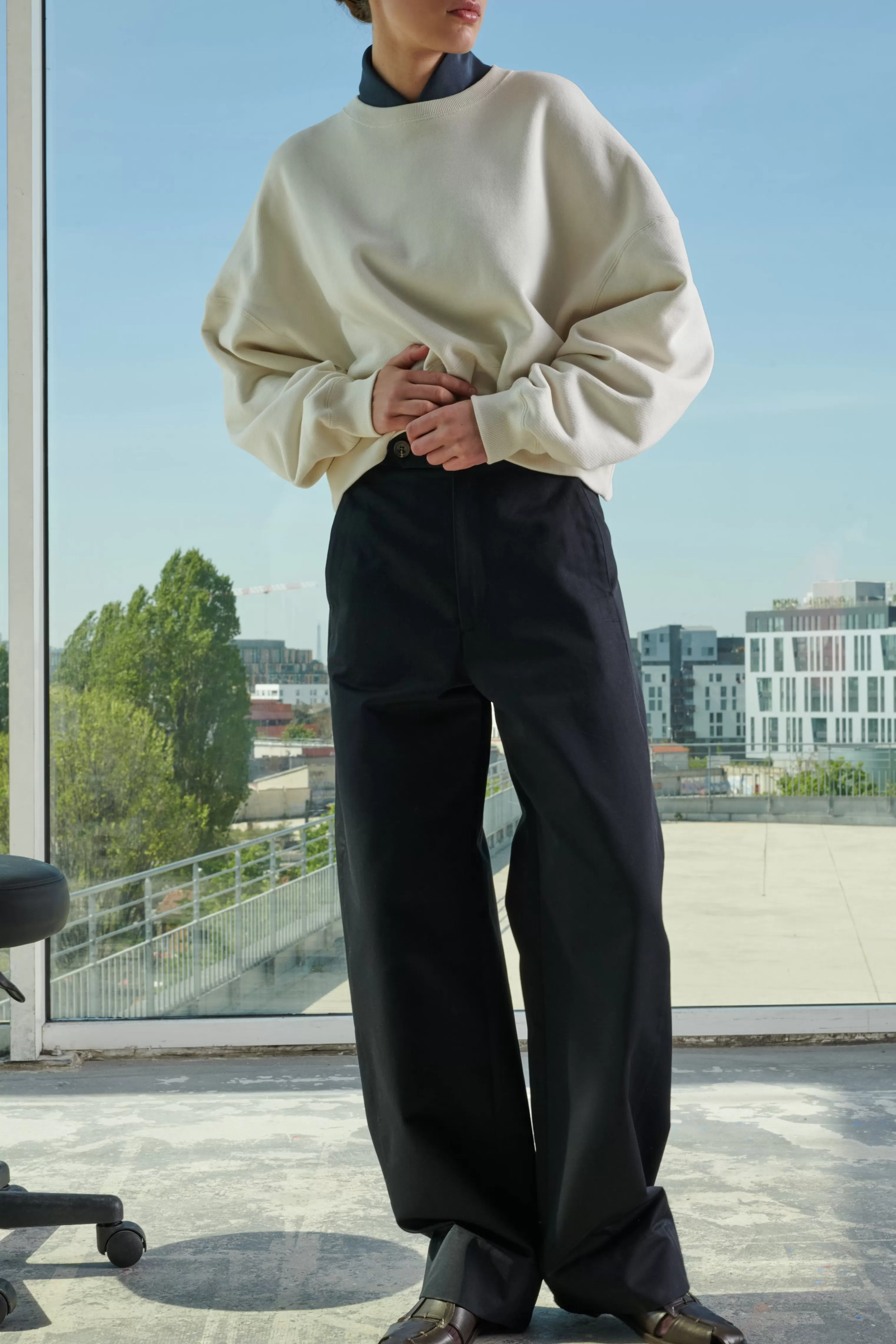 Sweat-shirt court oversize – Coupe courte et oversize– Emmanchures basses– Finitions bord côtes– Monogramme « S » brodé dans le dos