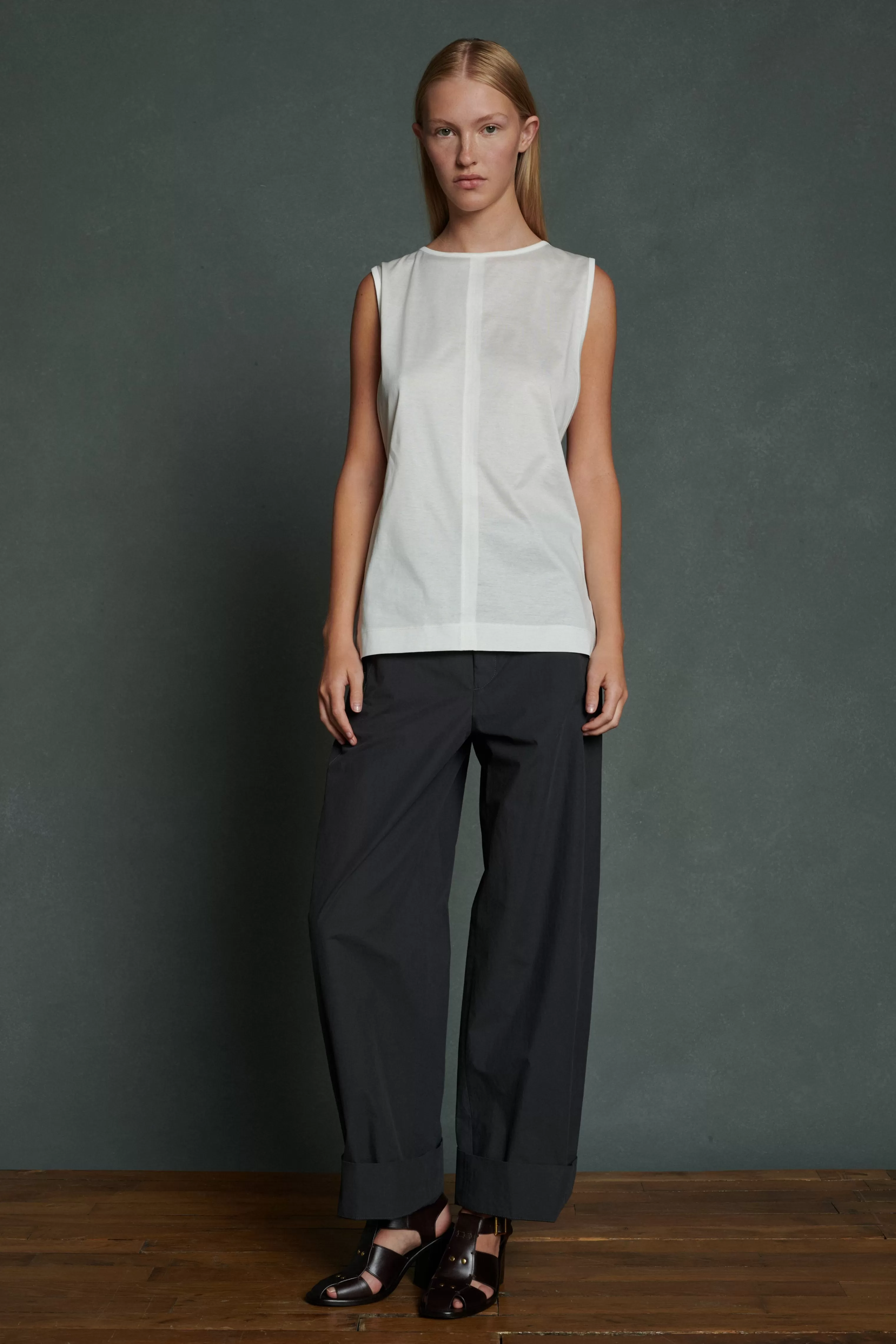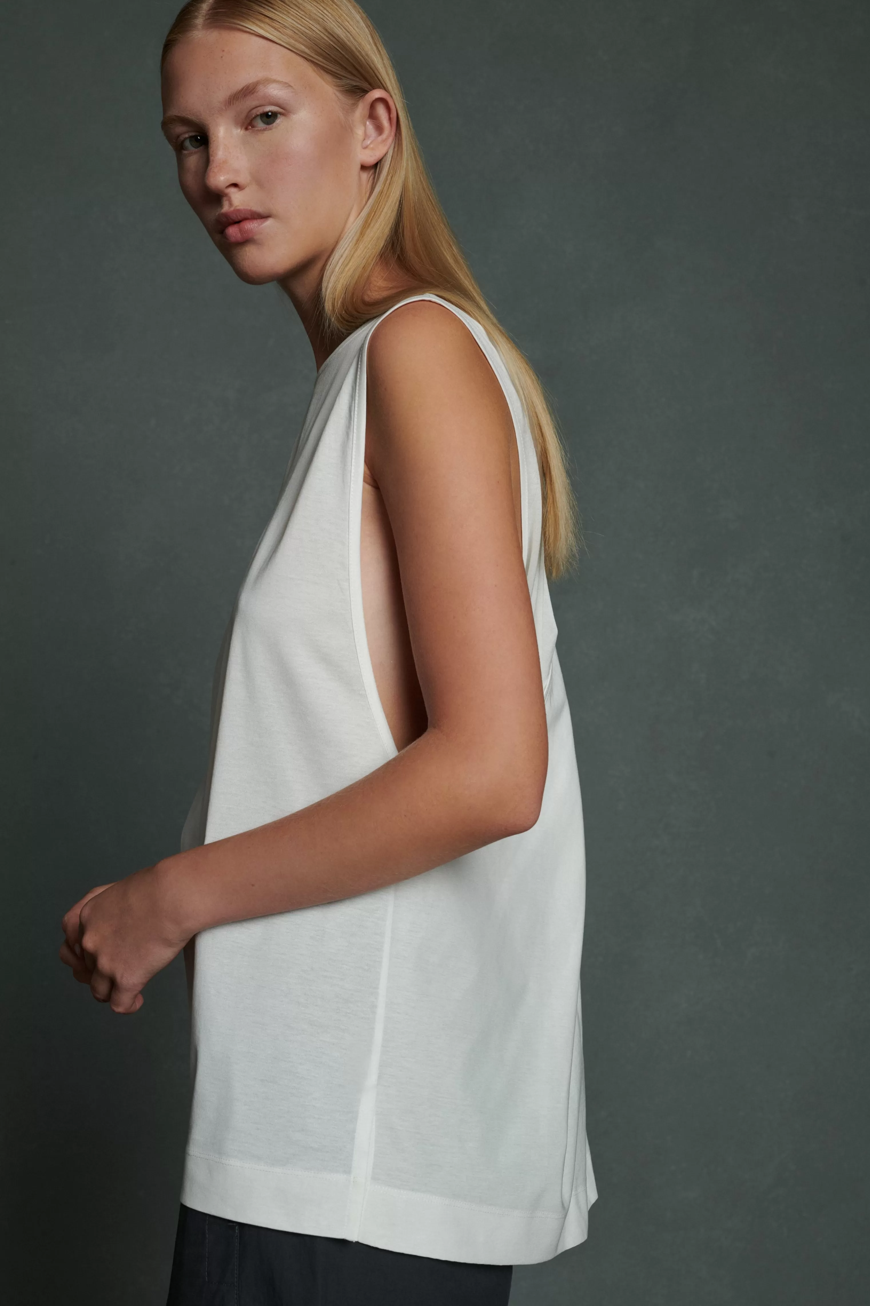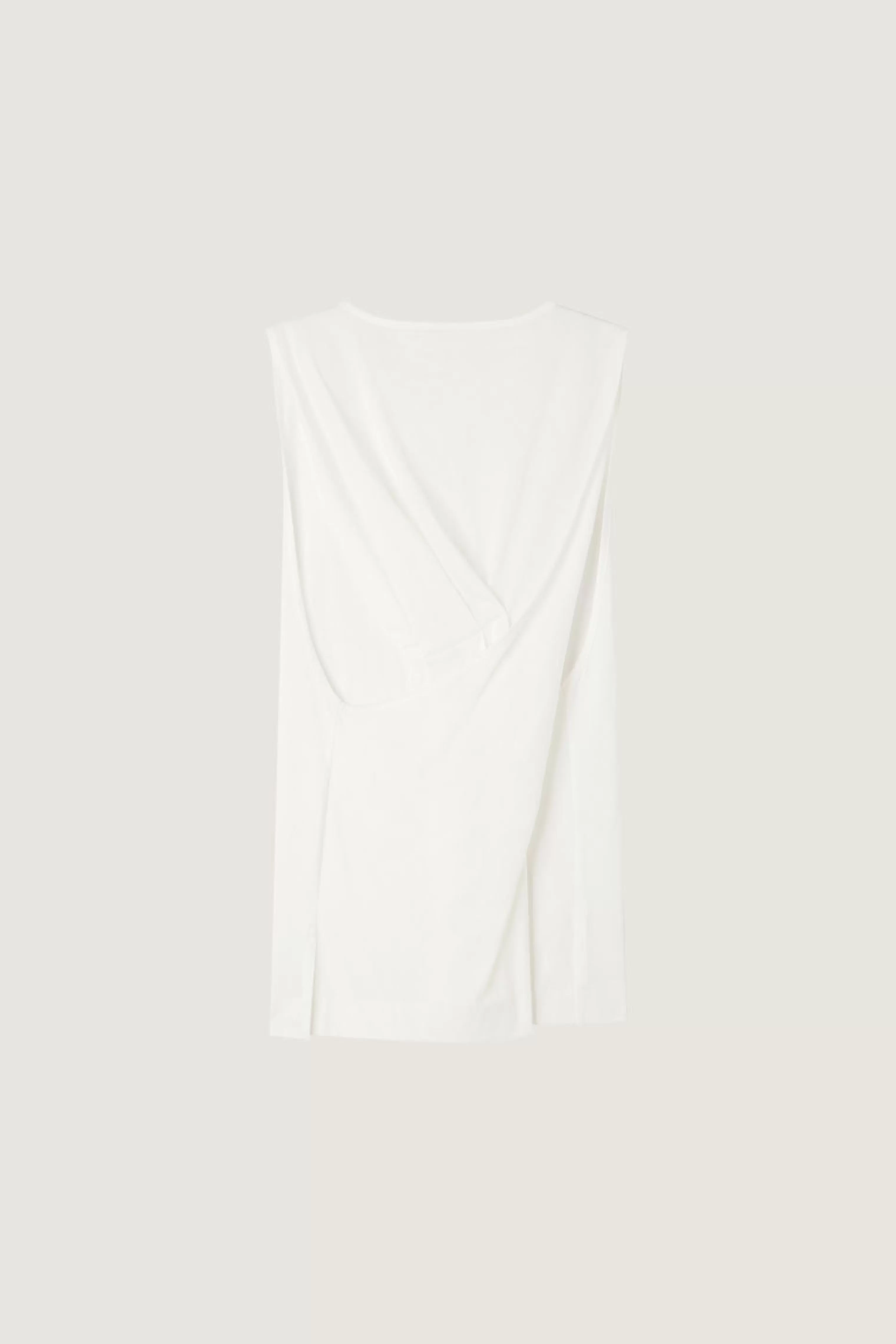 t-shirt sans manches twisté au dos en jersey de coton mercerisé blanc