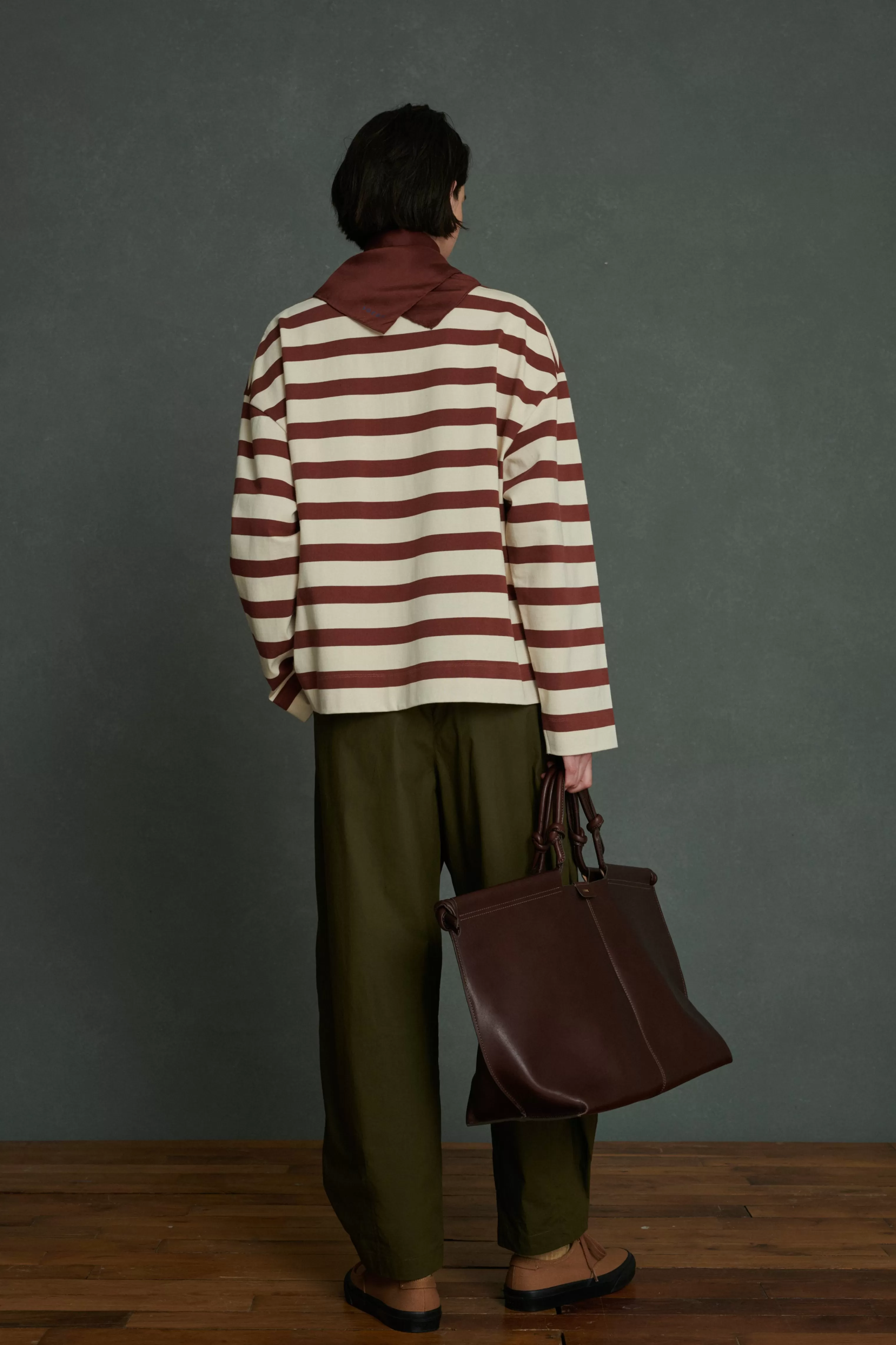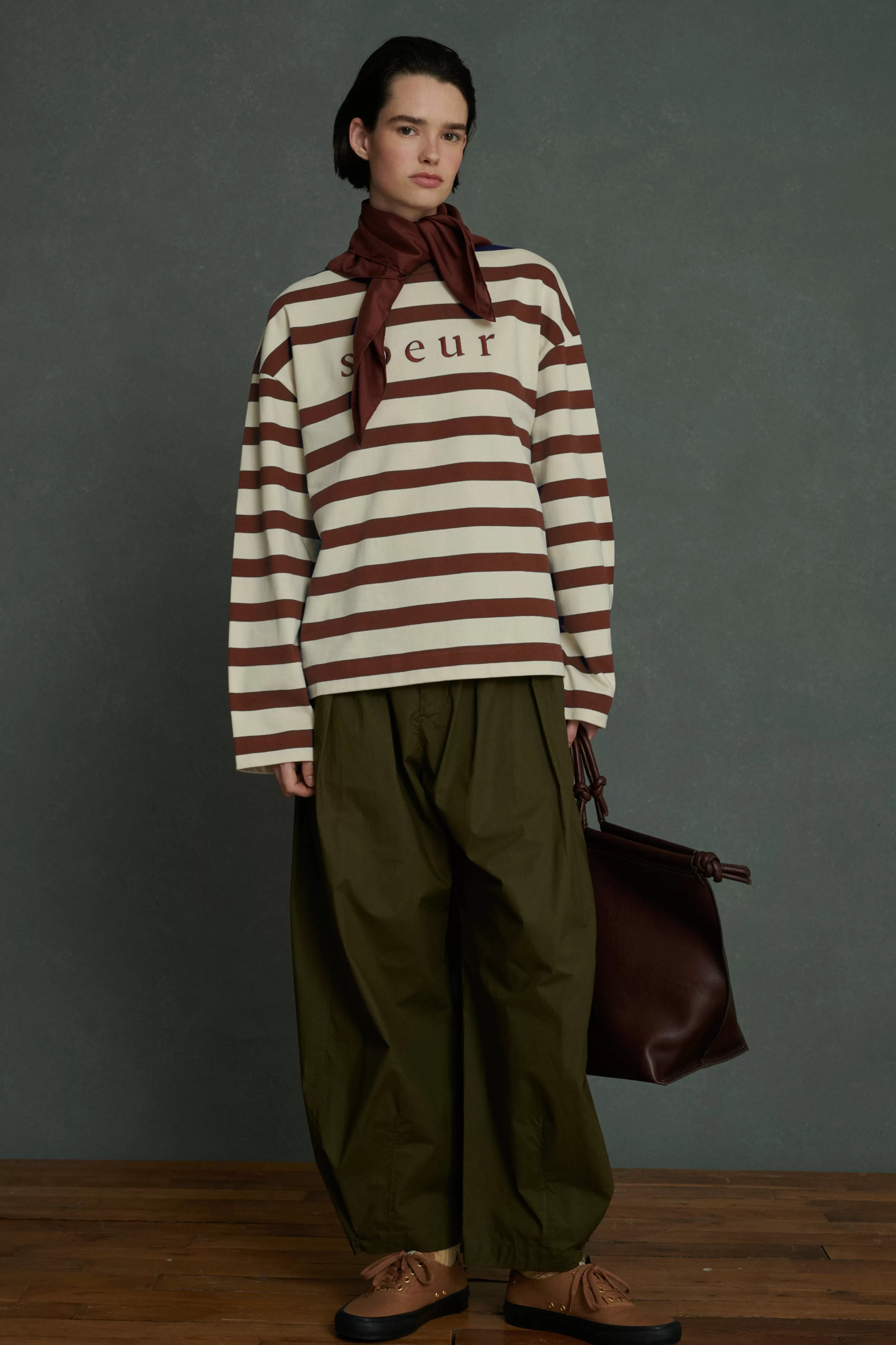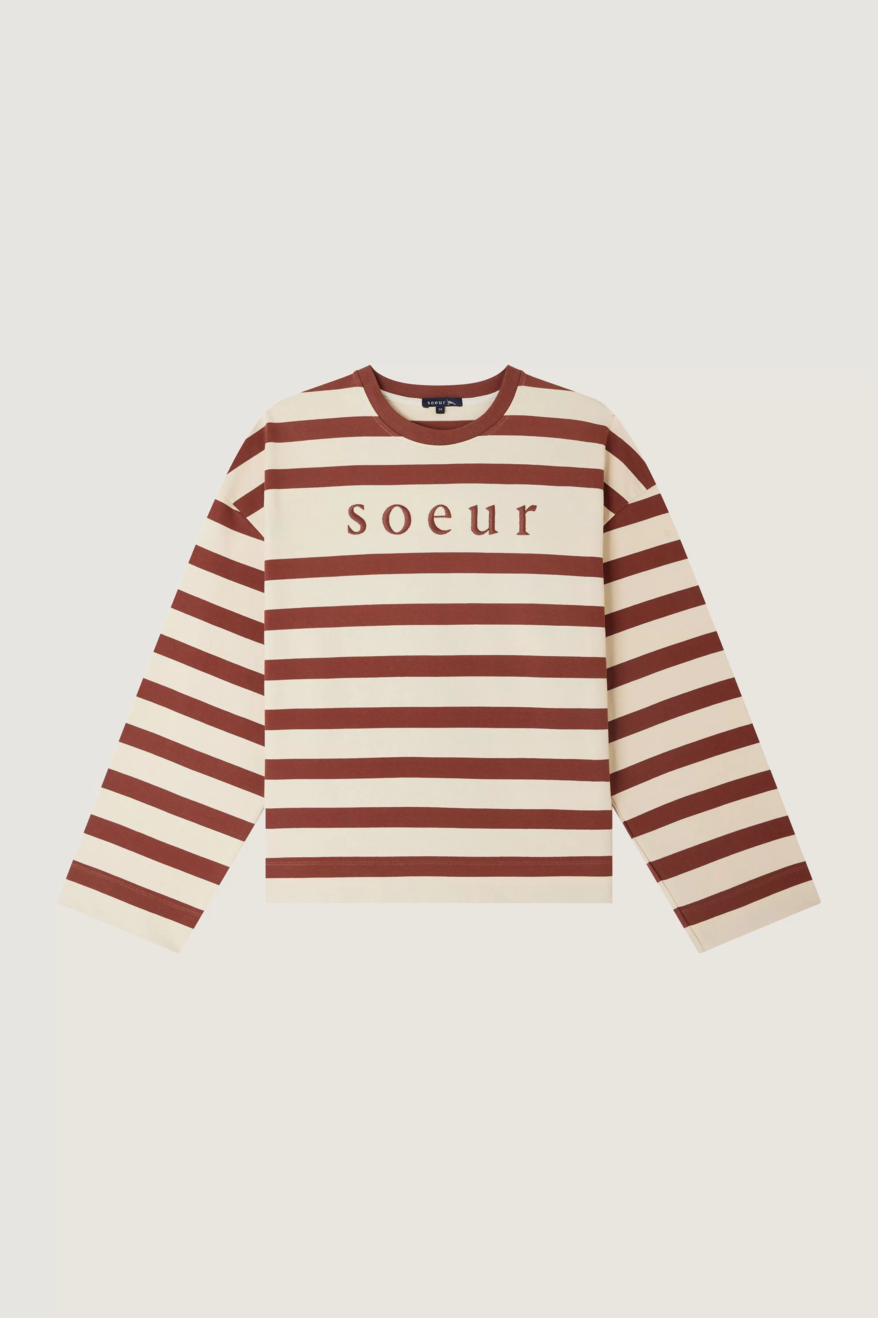 Marinière manches longues à logo « soeur » brodé en coton écru et terracotta
