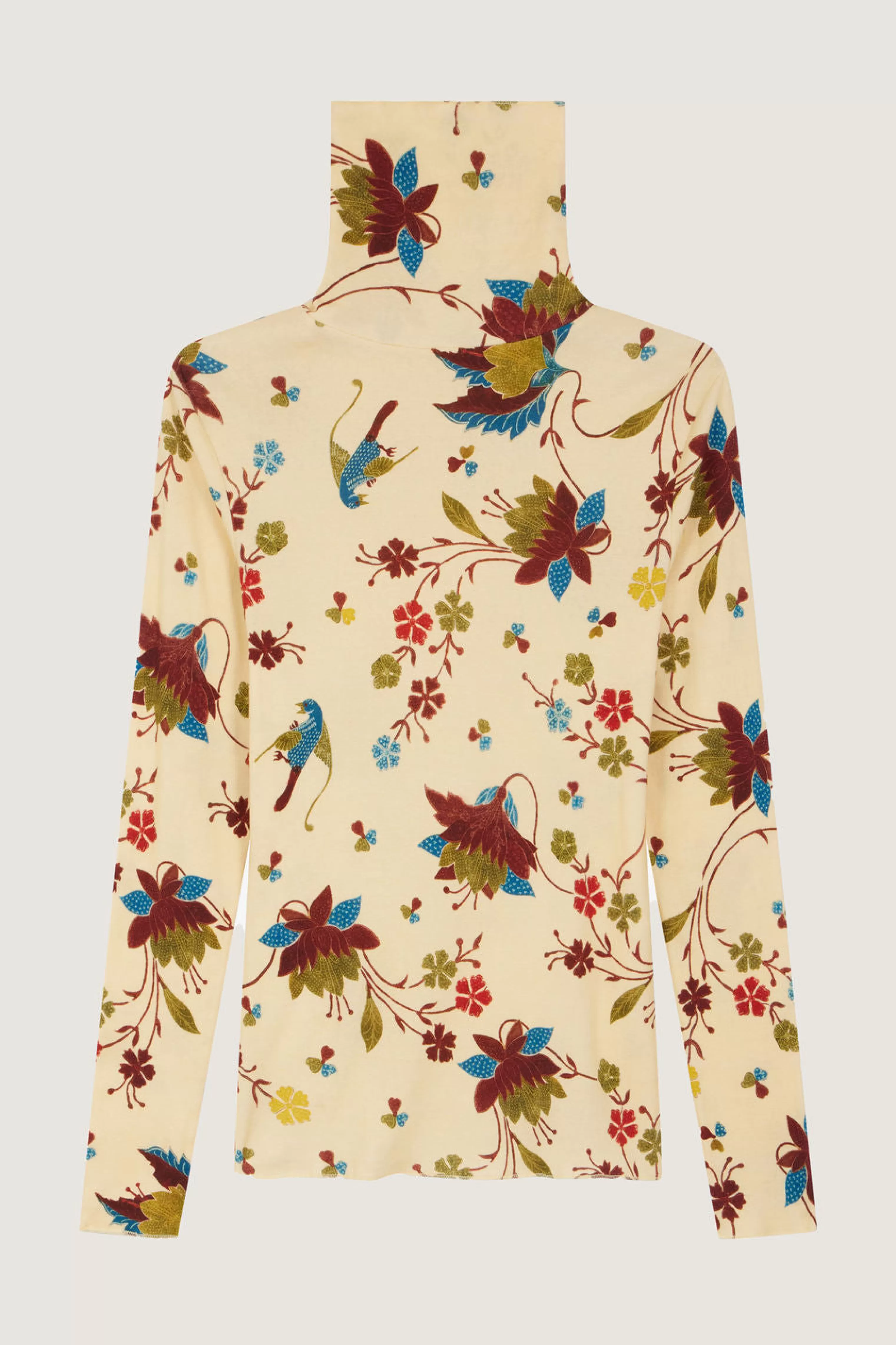 Haut à col montant, à côtes imprimé – Coupe droite près du corps– Côtes fines et stretch– Col montant à roulotter– Manches longues– Finitions en surjet au bas de manches, bas de corps et col