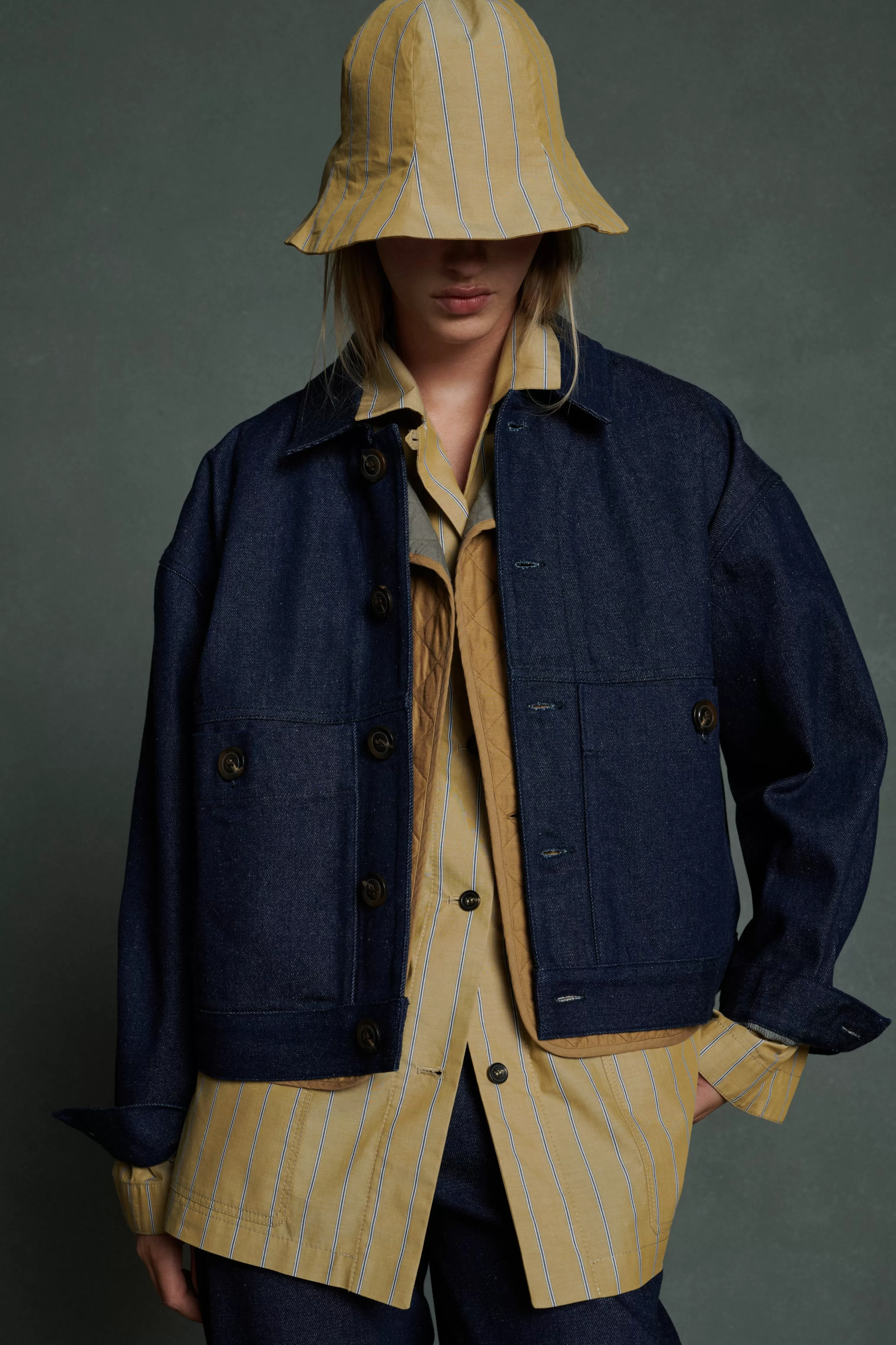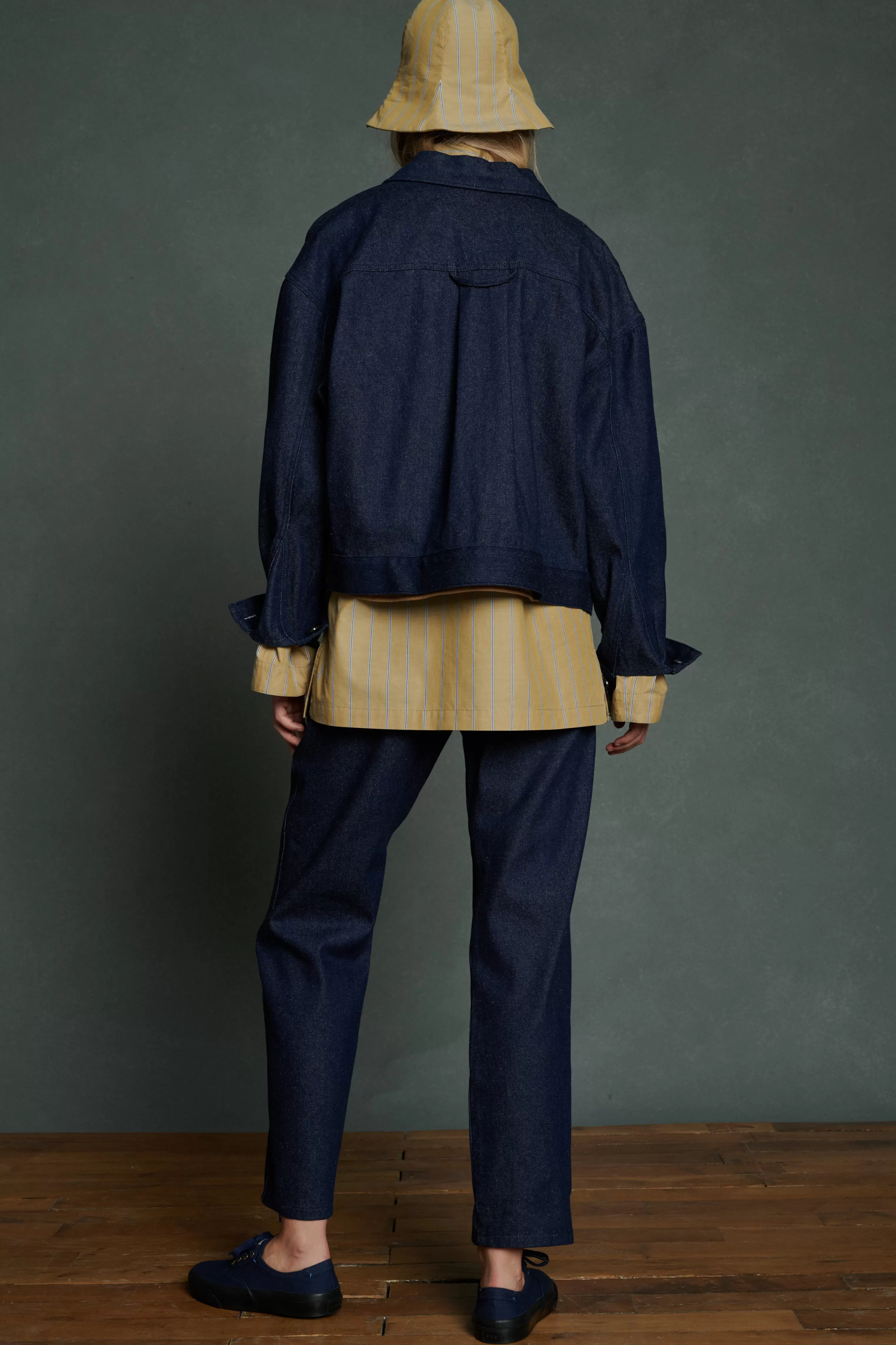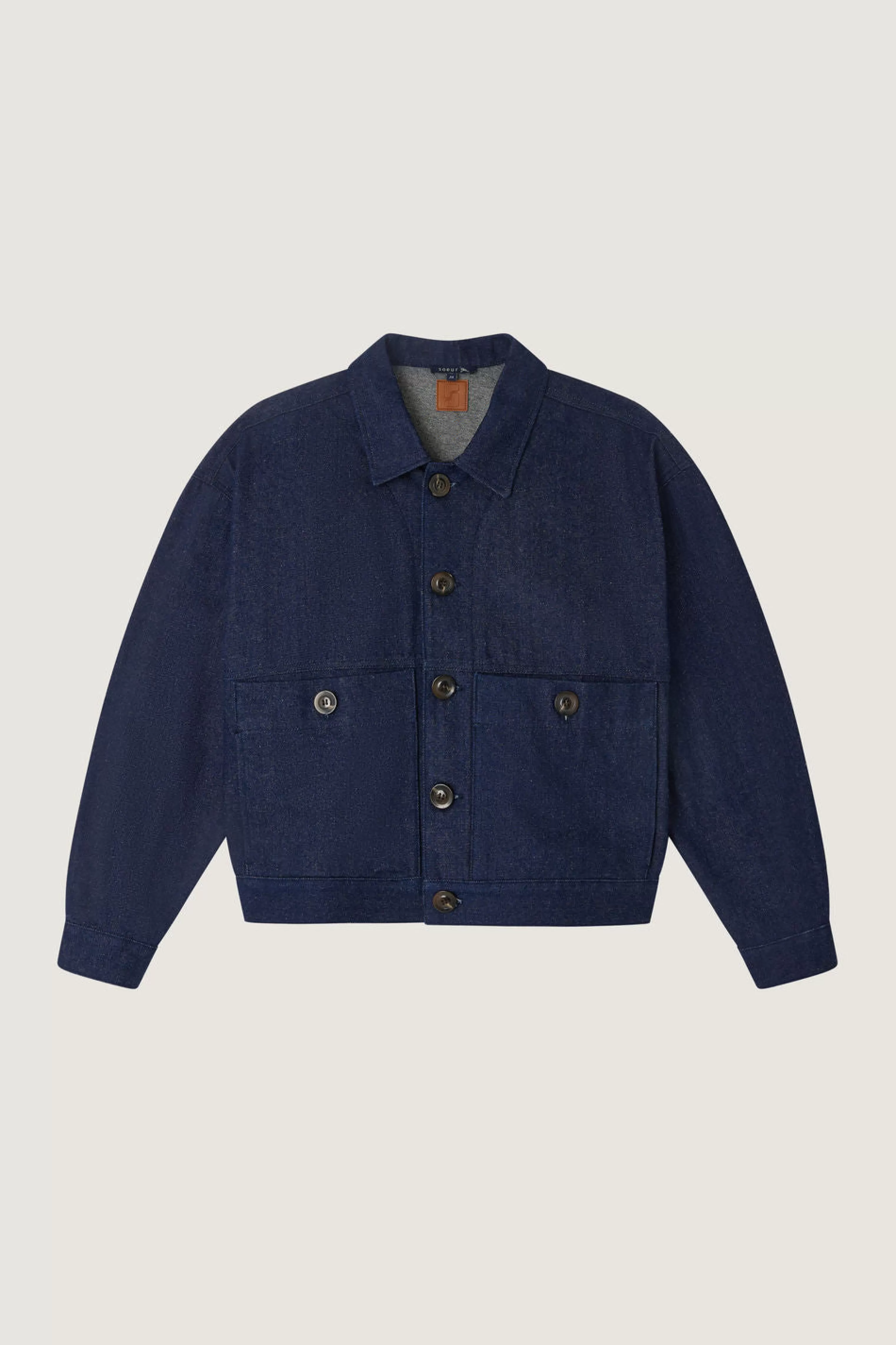 Veste courte boutonnée en denim marine