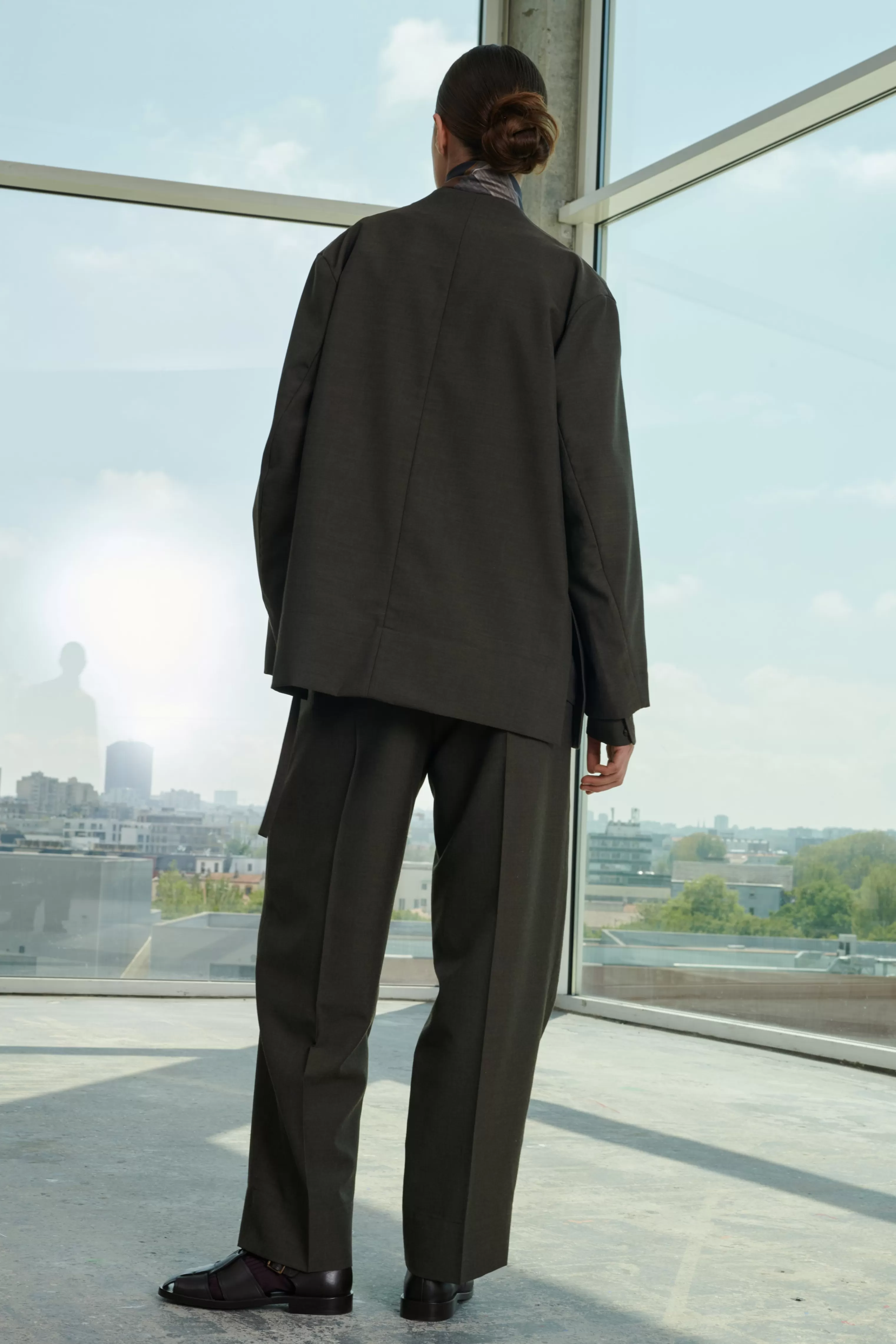 Notre toile de laine est iconique du vestiaire S艙ur. C’est un lainage souple, dense et parfait pour maintenir les volumes tout en étant confortable. Le polyester permet d’éviter le froissage, sa tenue est impeccable et le tissu facile d’entretien. Elle est ici tissée avec des fils de laine de couleurs différentes qui lui donnent un aspect chiné.